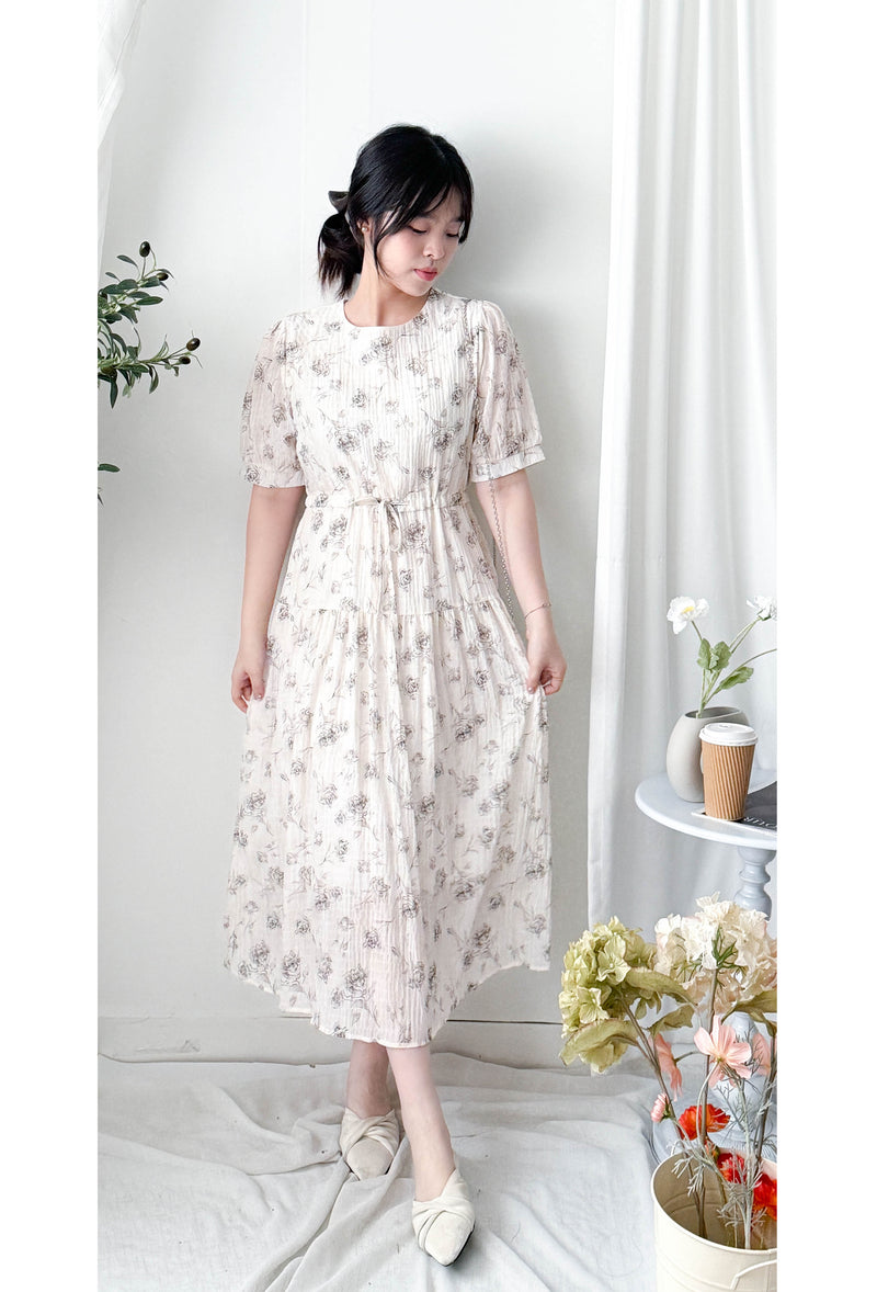 Korea Rhombus Floral Dress 腰下百褶左右修腰印花連身裙/ DS9802 (Pre-order 3月5截單)