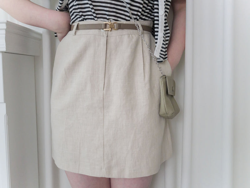 Korea A-Line 杏色顯長腿麻棉微A形半裙, Skirt/ SK8824