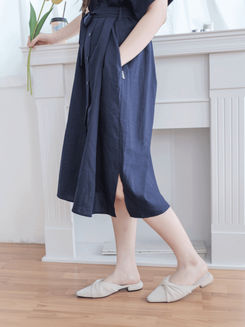Korea (售完即止) Navy Dress 深藍修腰側開叉連身裙/ DS9977