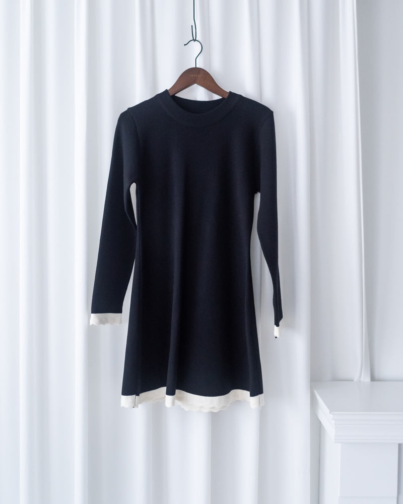 Korea Black & White Knit Dress 黑白拼色針織連身裙/ DS1068