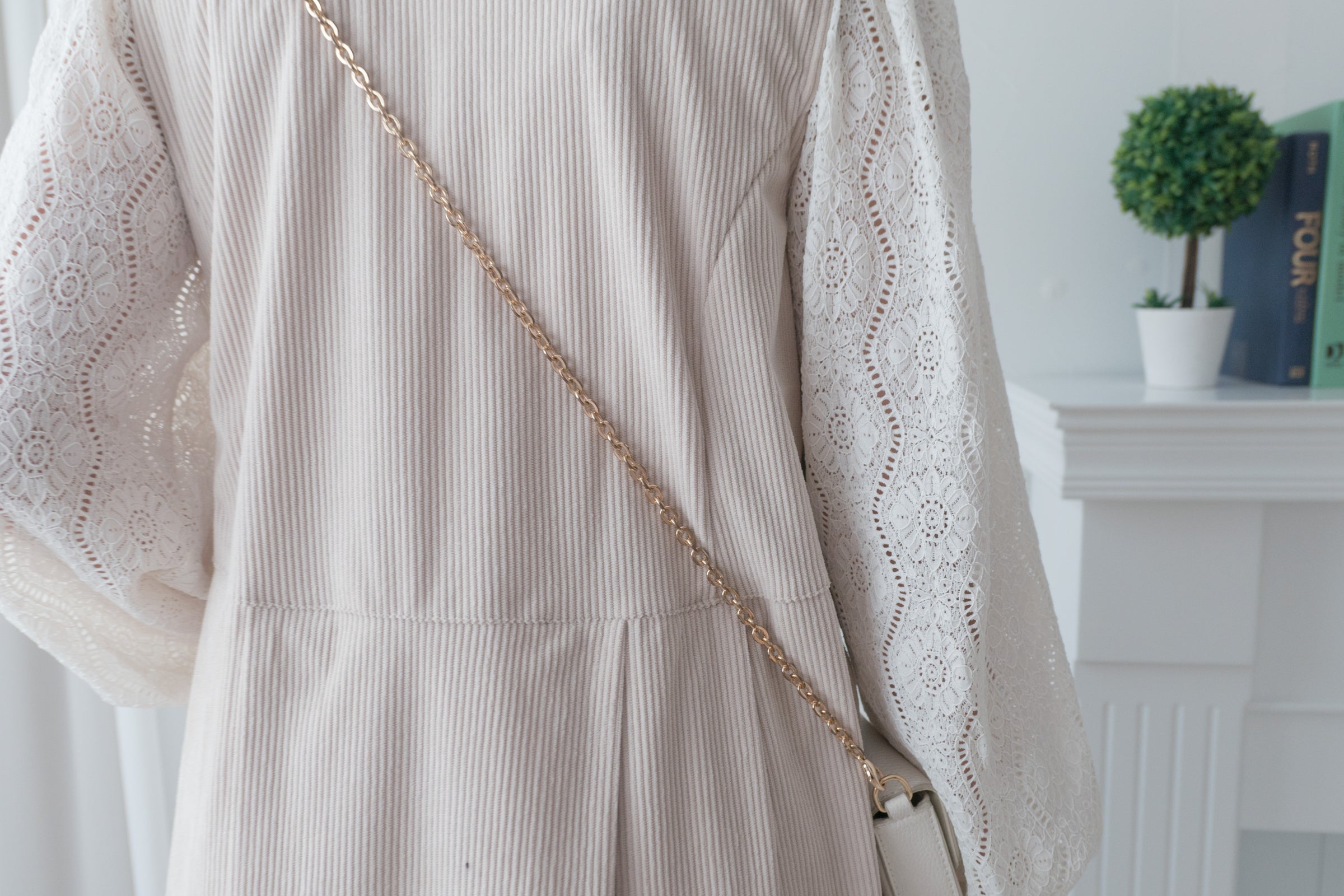 Beige Vest 淺杏暗紋微絨口袋腰間大百褶, Dress/ DS9369 $299