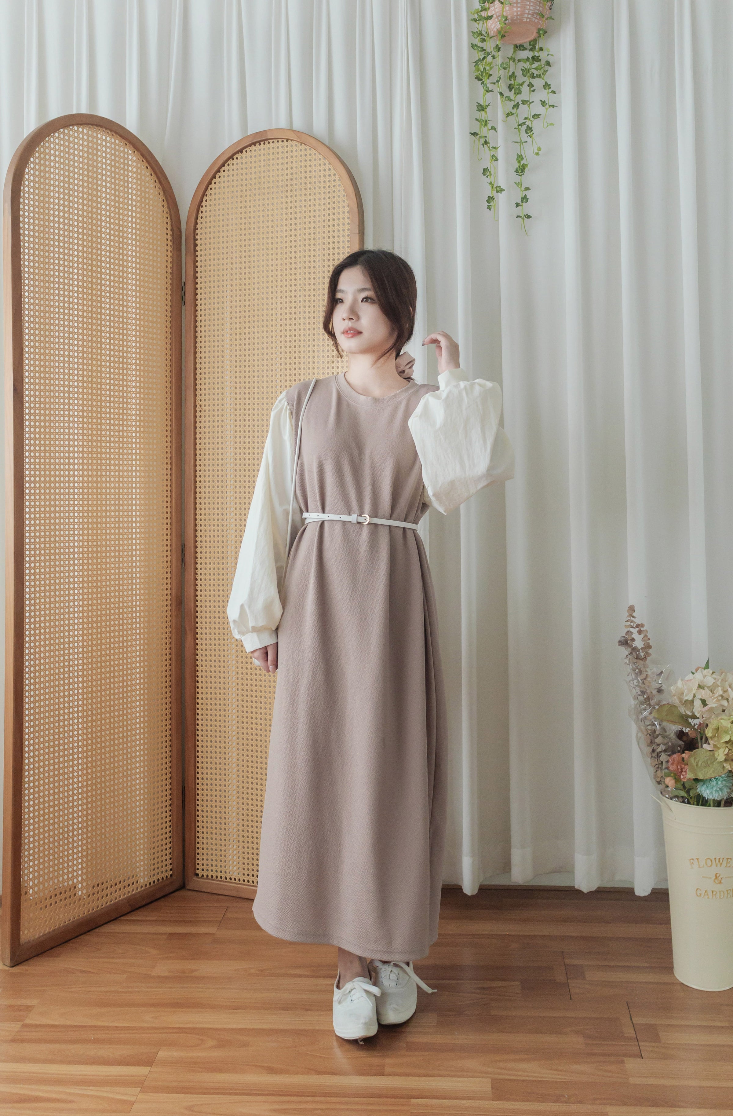 【現貨限量回歸 】Spliced Dress 拼接側開叉無領仿背心裙外穿連身裙/ DS9696