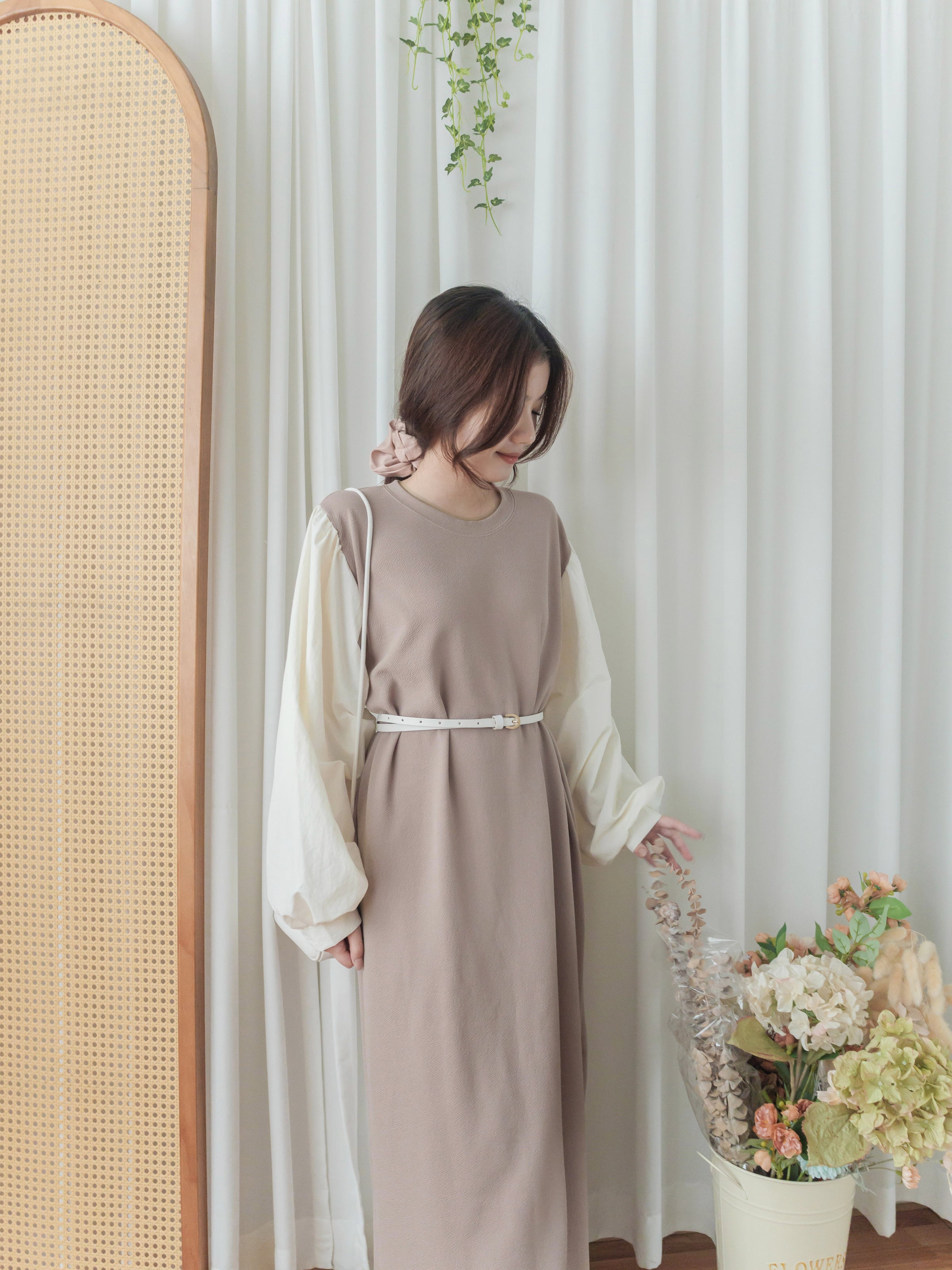 Spliced Dress 拼接側開叉無領仿背心裙外穿連身裙/ DS9696 $199