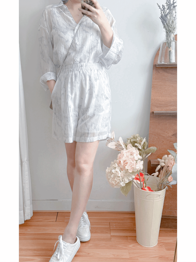 Korea Textured Floral Shirring Top 輕柔印花壓紋荷葉邊上衣/ TP9179