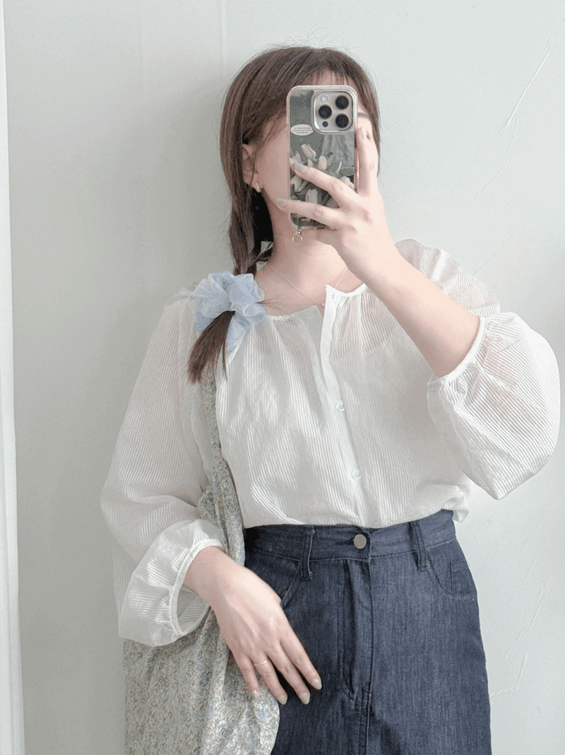 Korea Bubble Sleeve Shirt 仿恤衫直條紋泡泡袖上衣/ BU9118