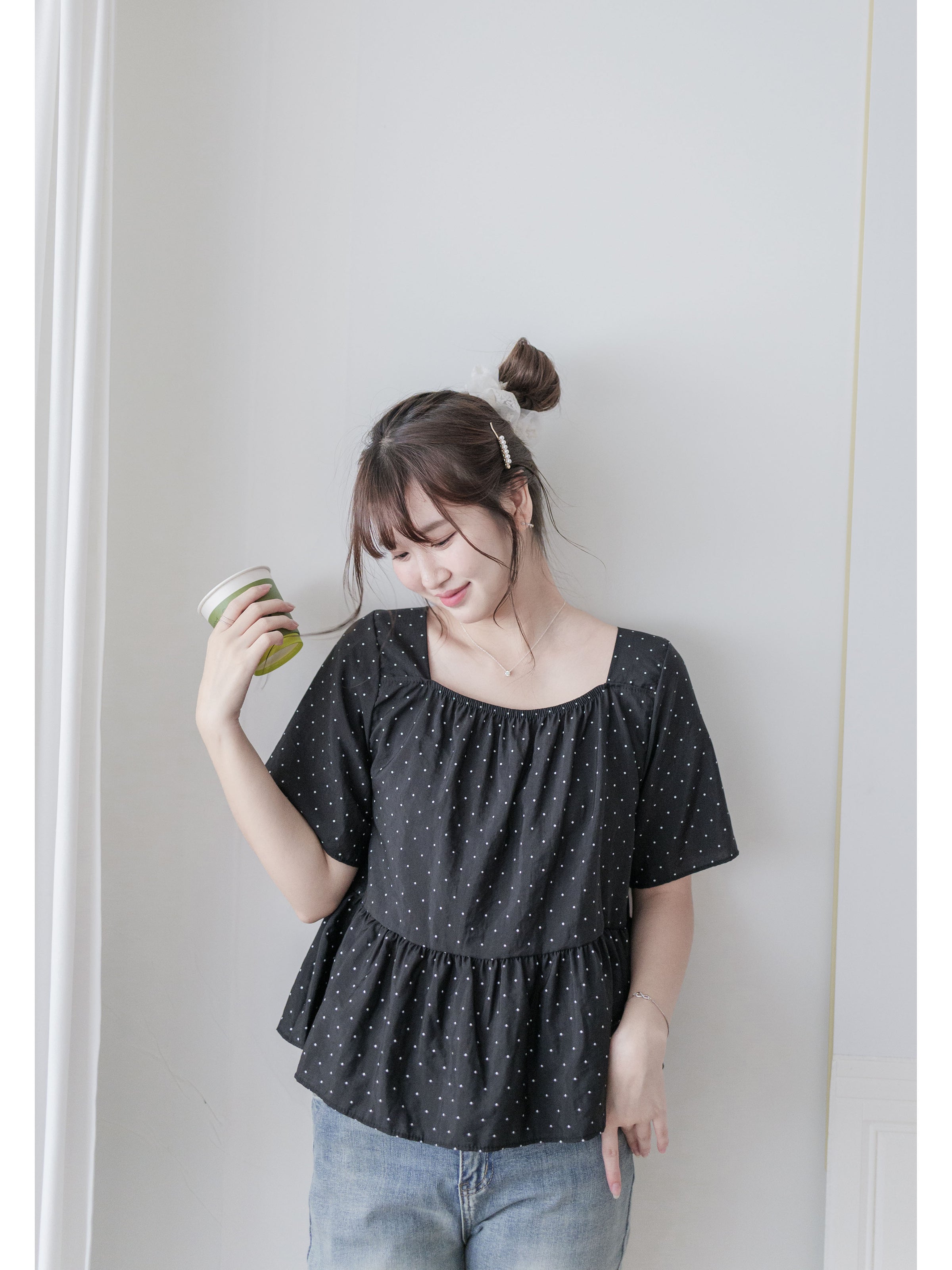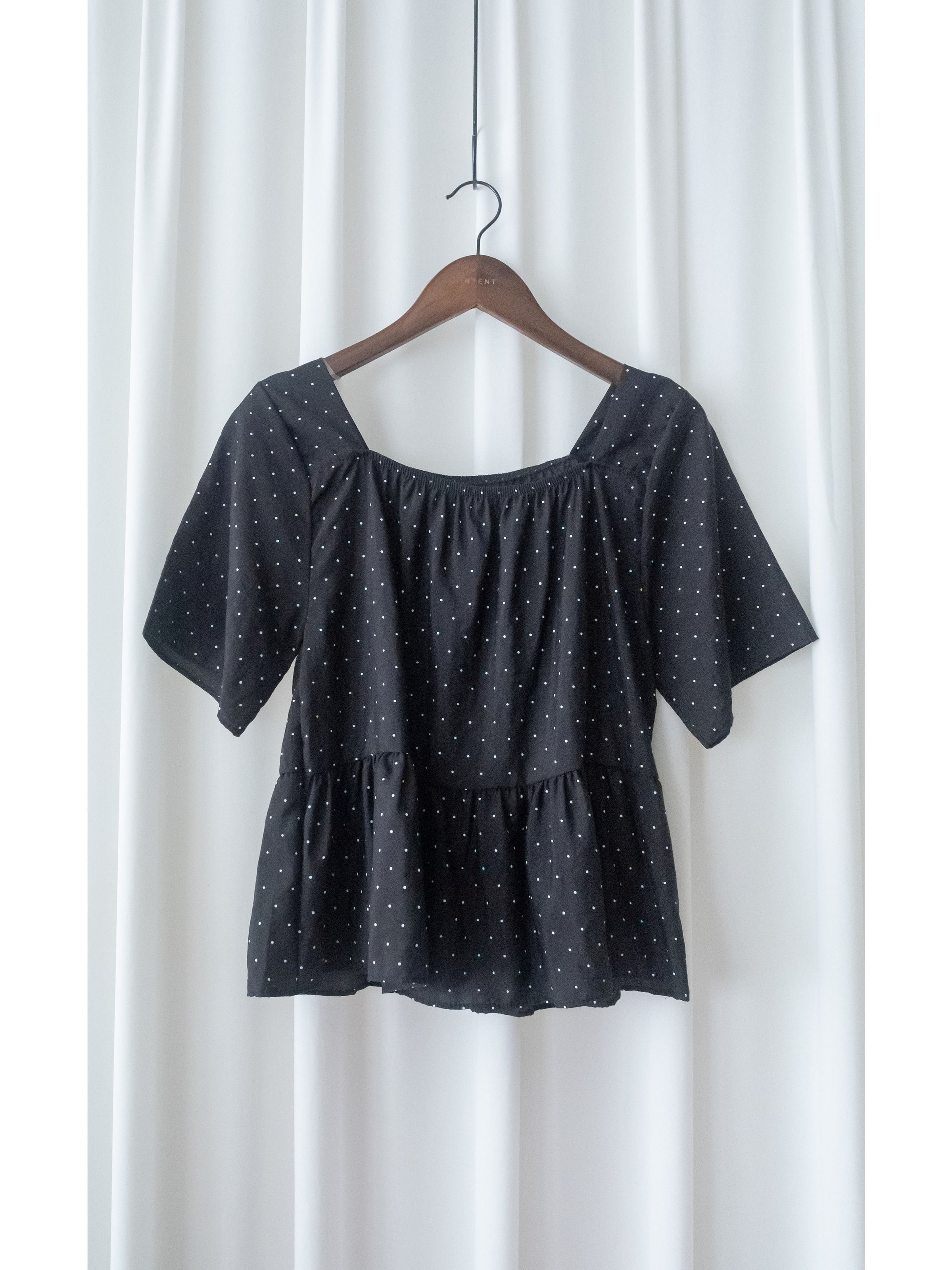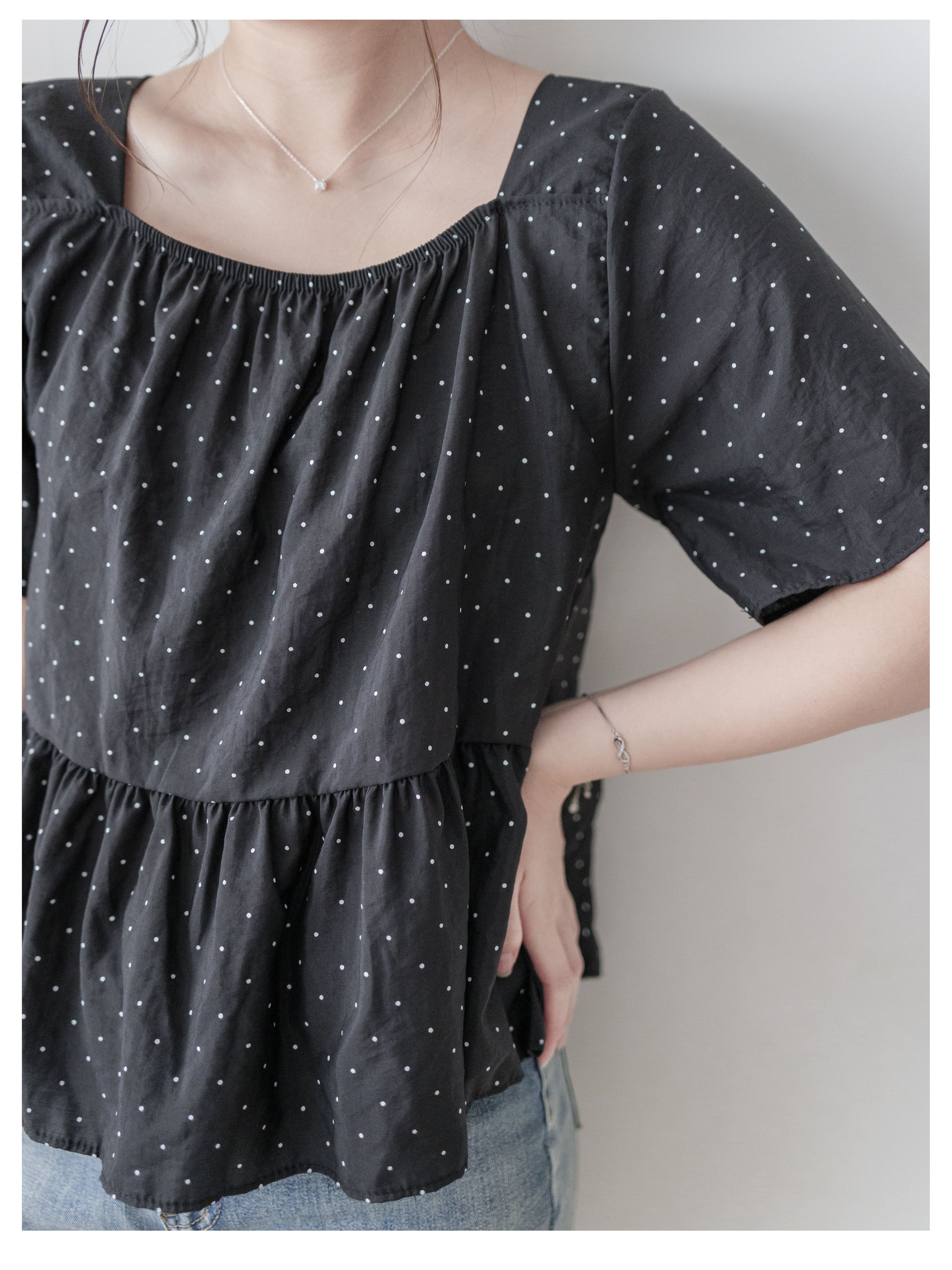 Polka Dot Blouse 黑色橡筋方領點點上衣/ BU9119
