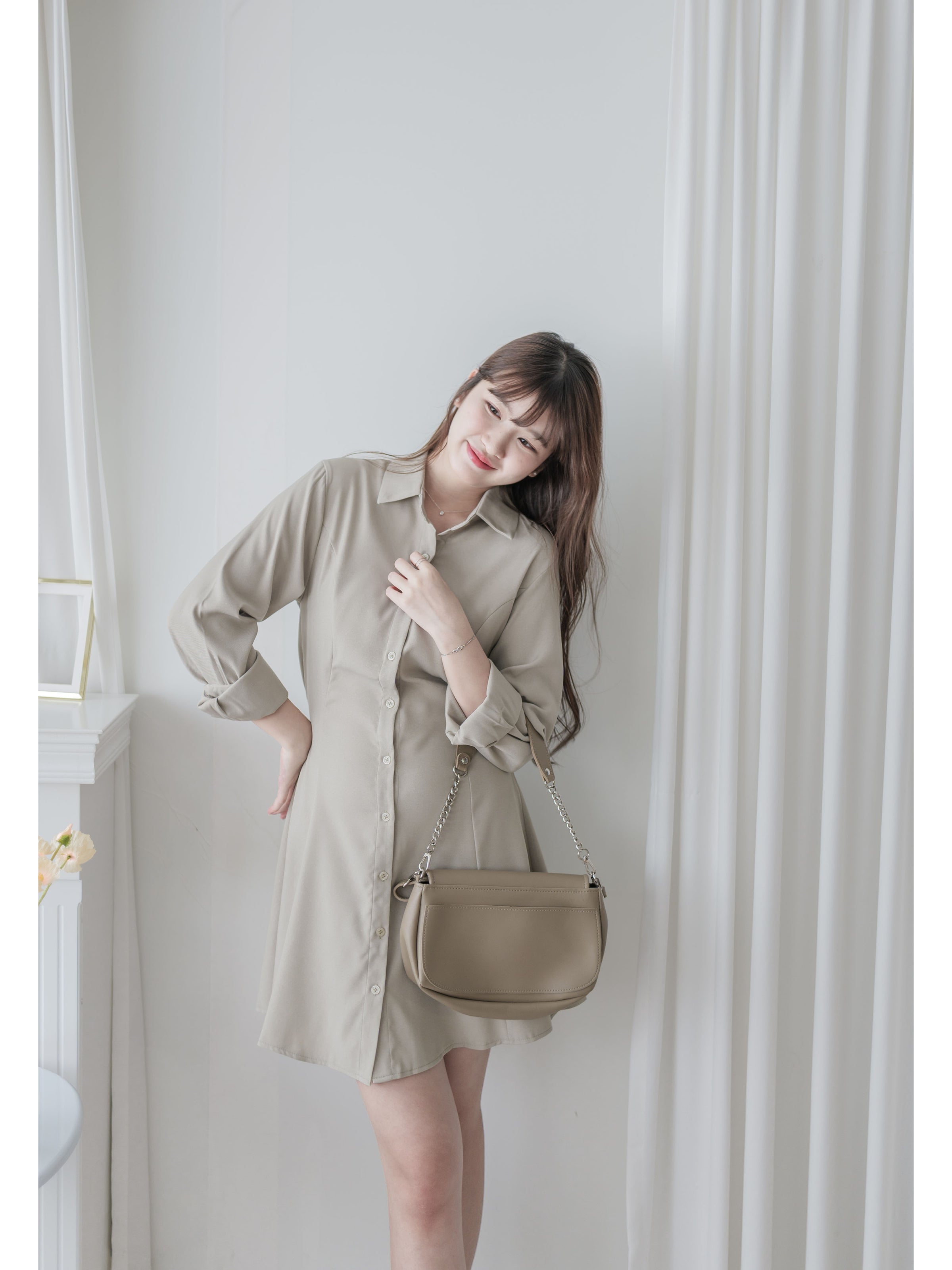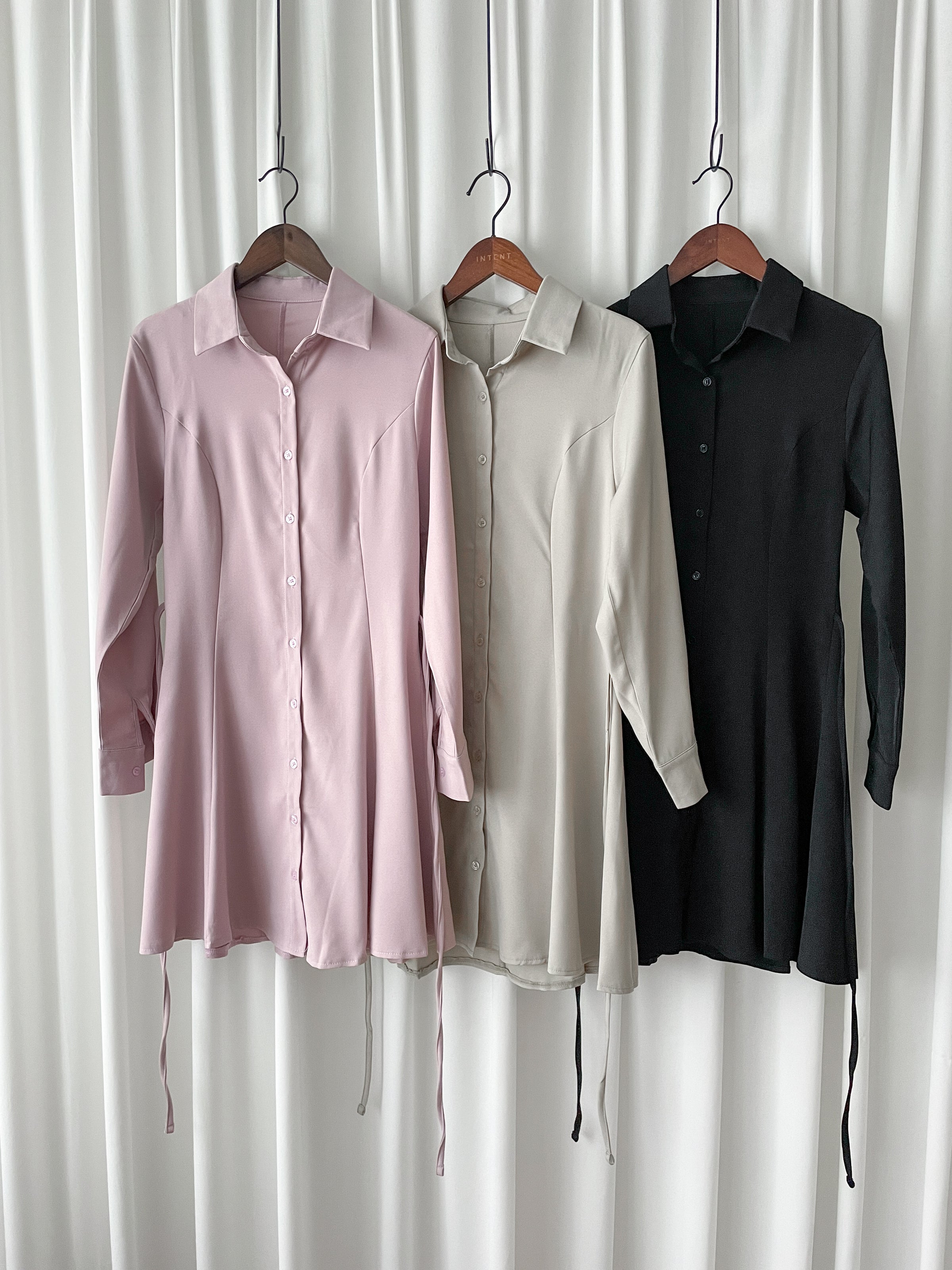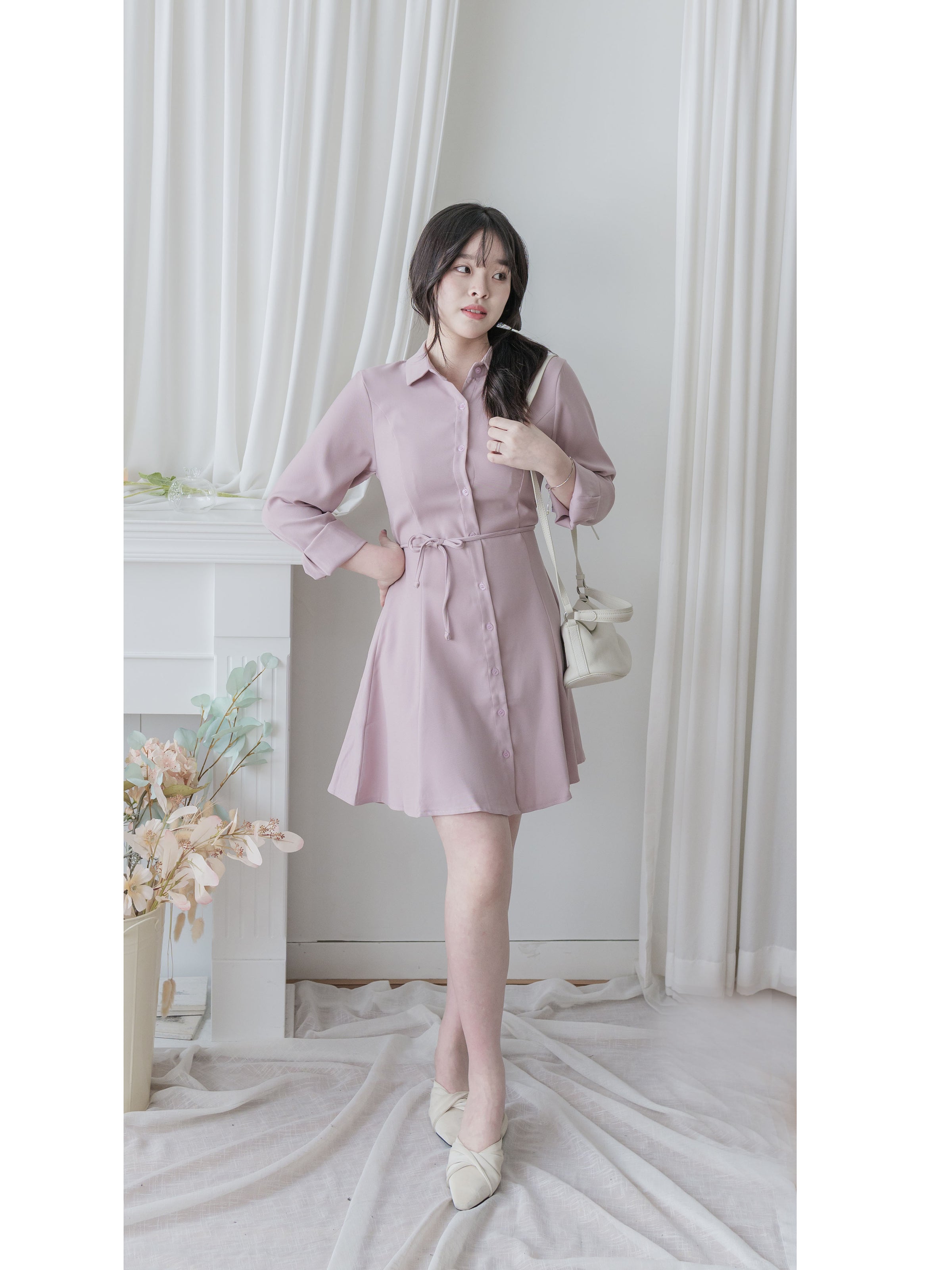 Shirt Dress 修飾線條剪裁修腰A形連身裙/ DS1003