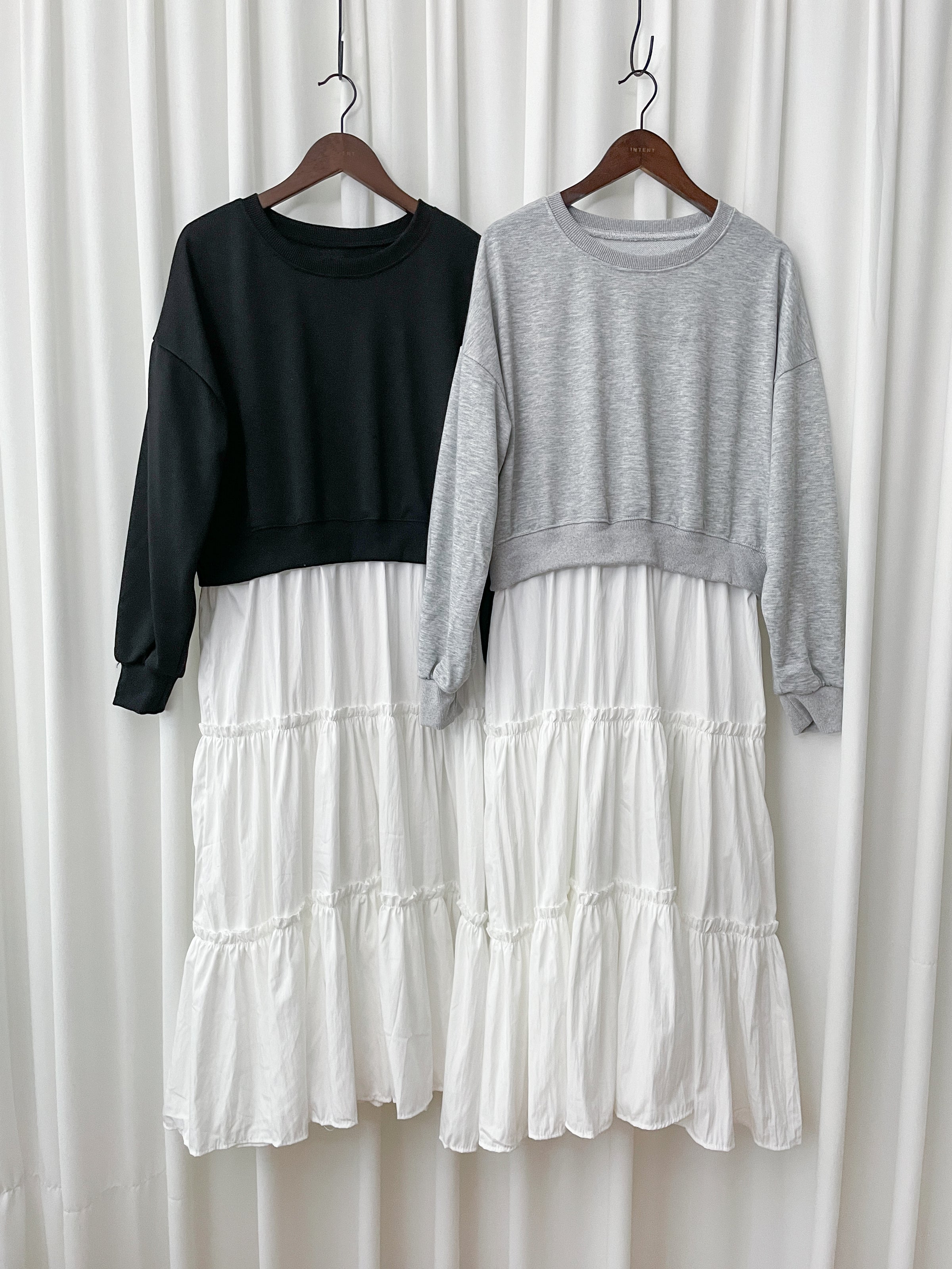 Sweater Elegant OPS 假兩件衛衣X傘裙設計連身裙/ DS1006