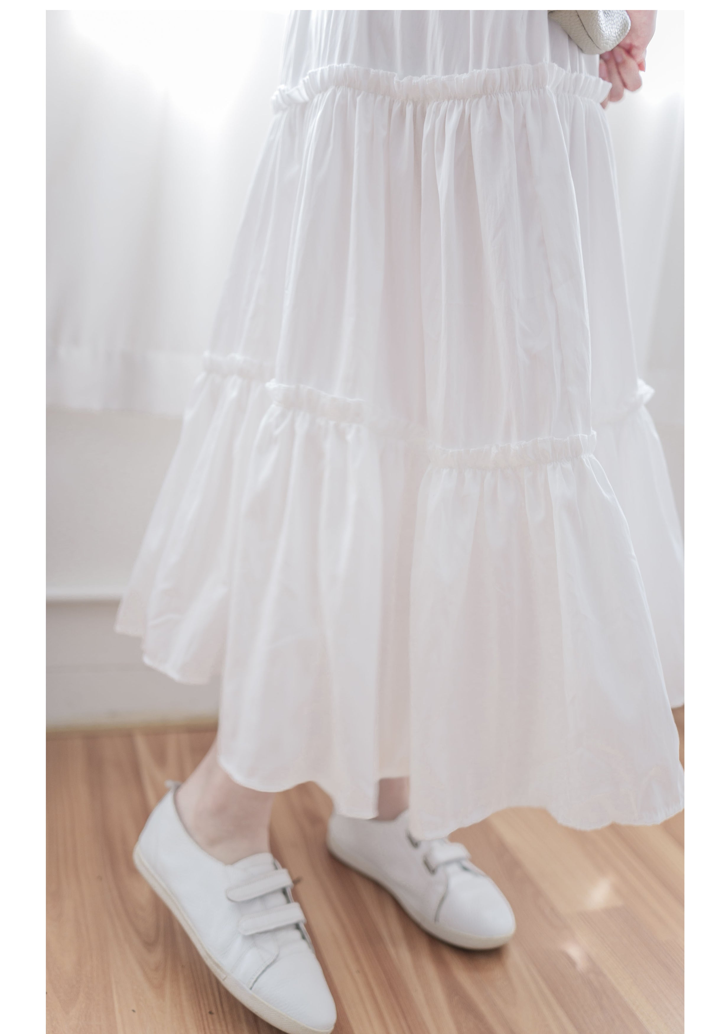 ✦橡筋頭手袖/層次裙擺/彈性腰身
