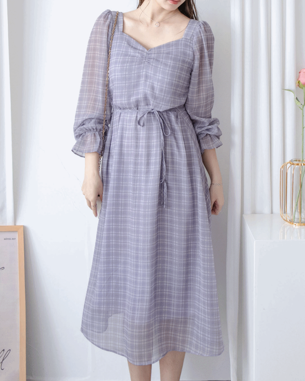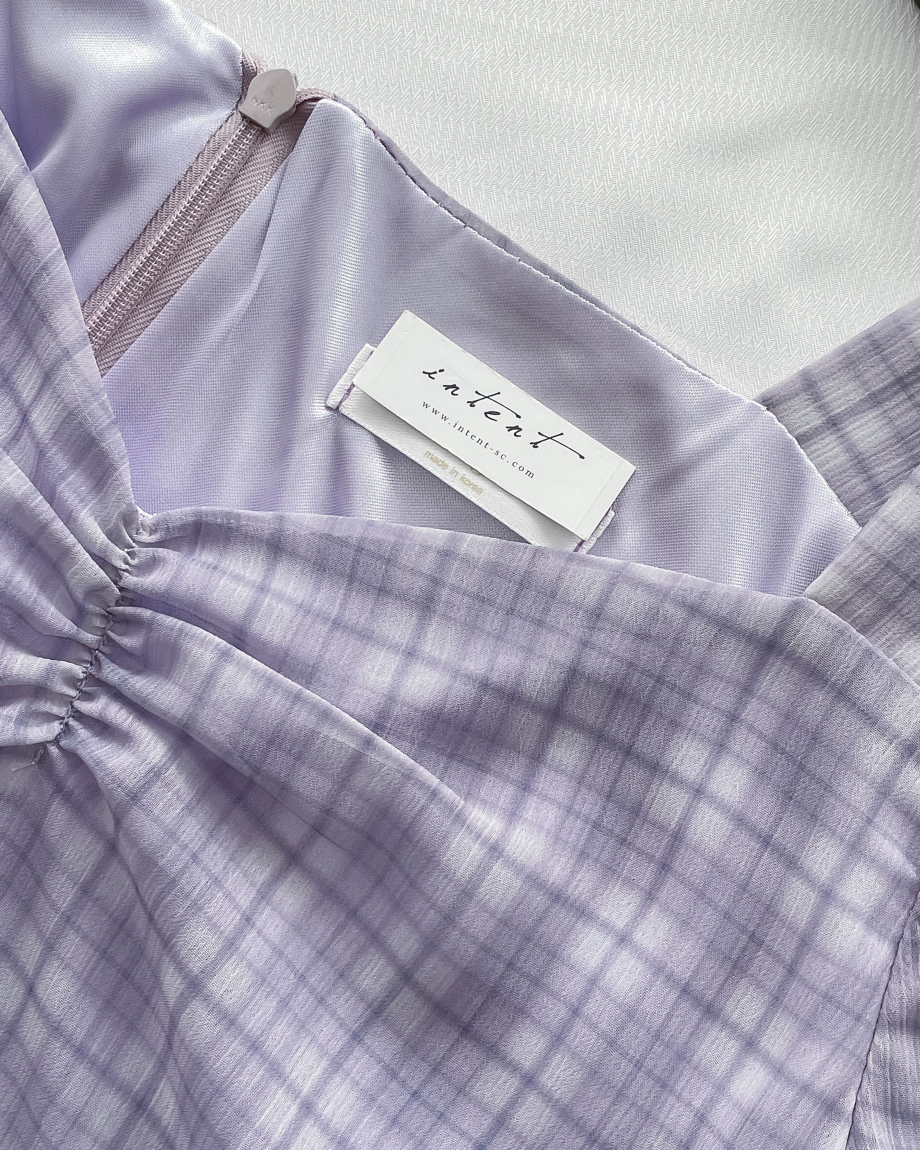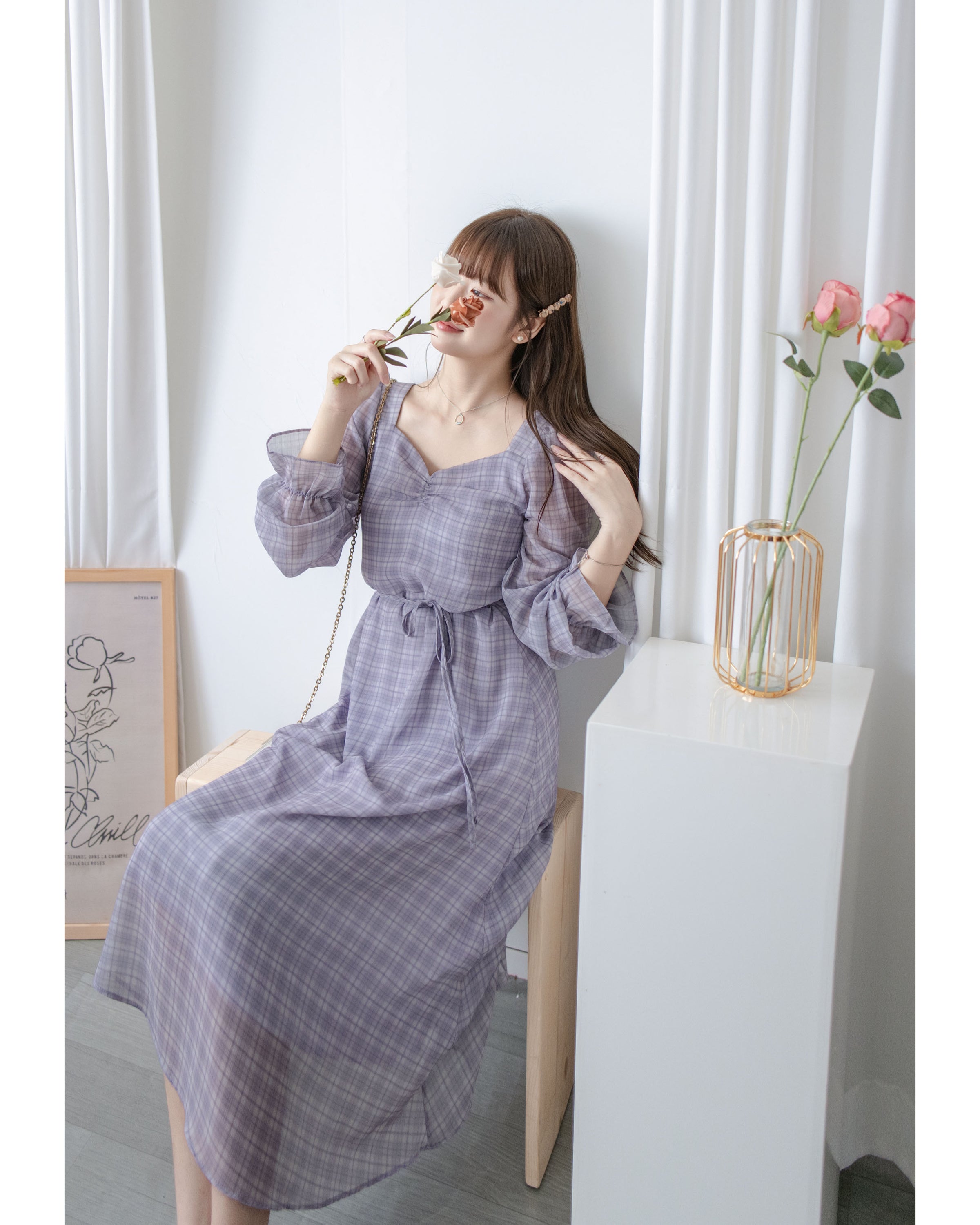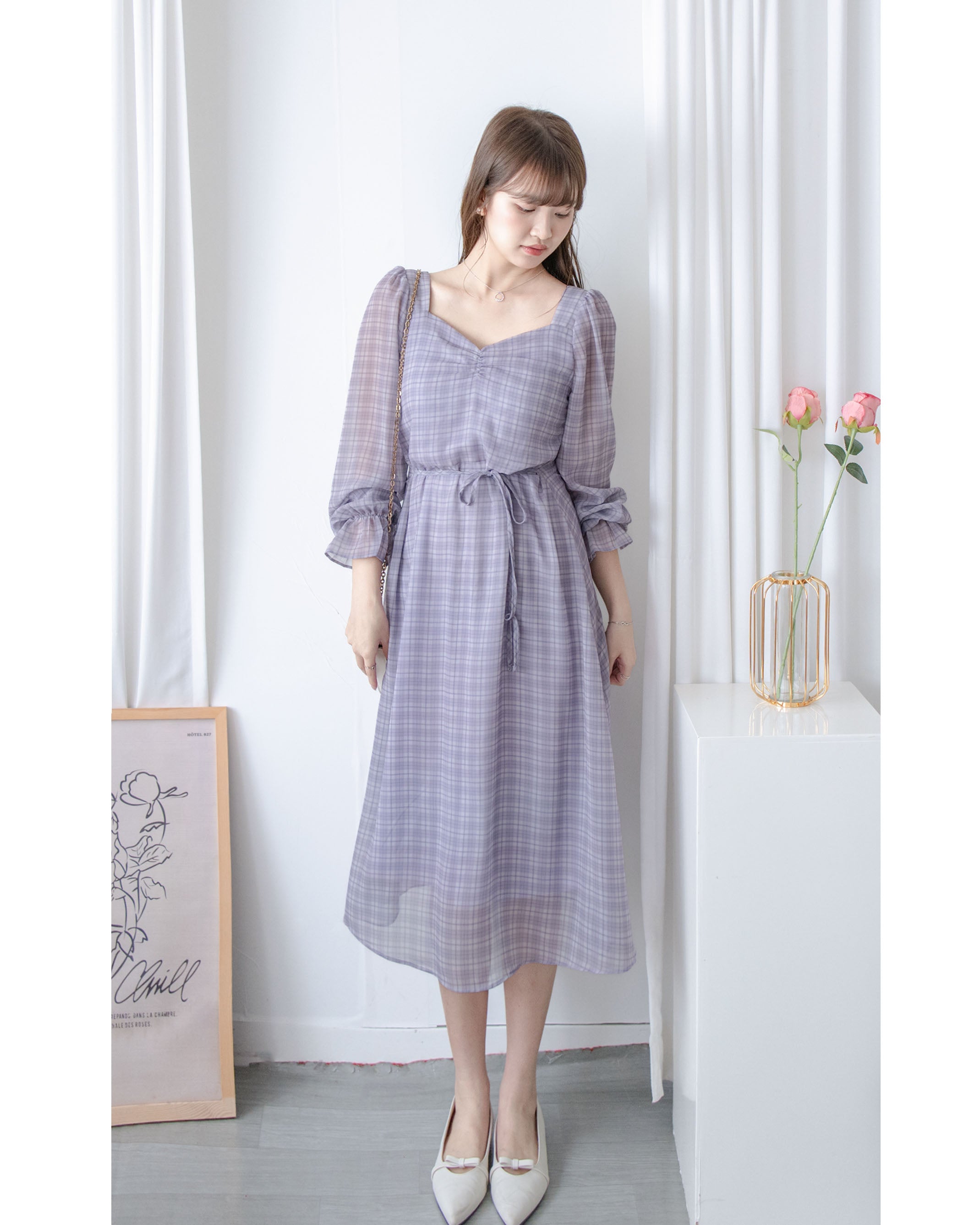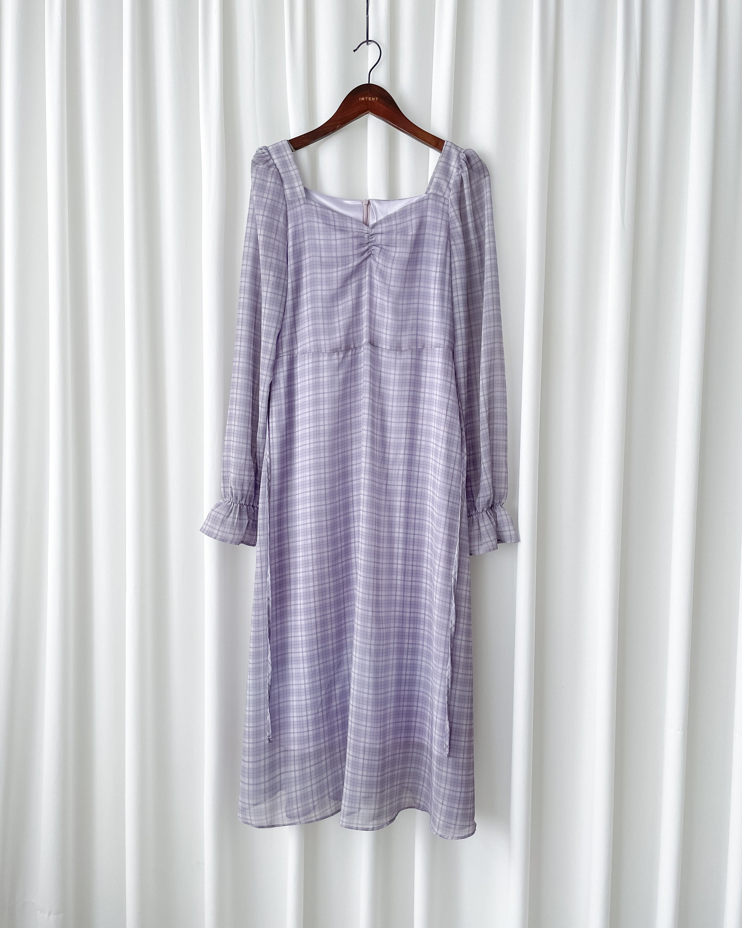 Lavender Check Dress 薰衣草方領格紋顯腰連身裙/ DS1020
