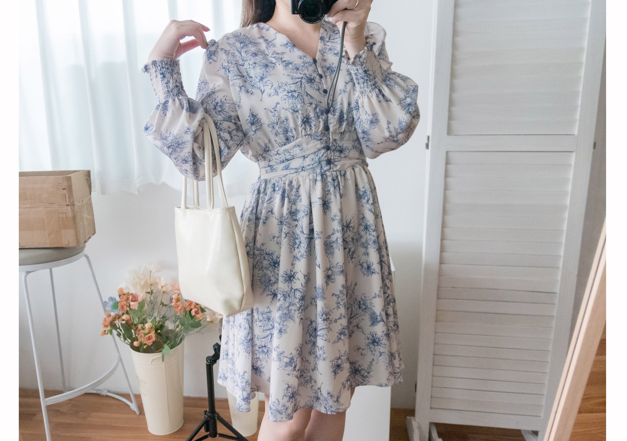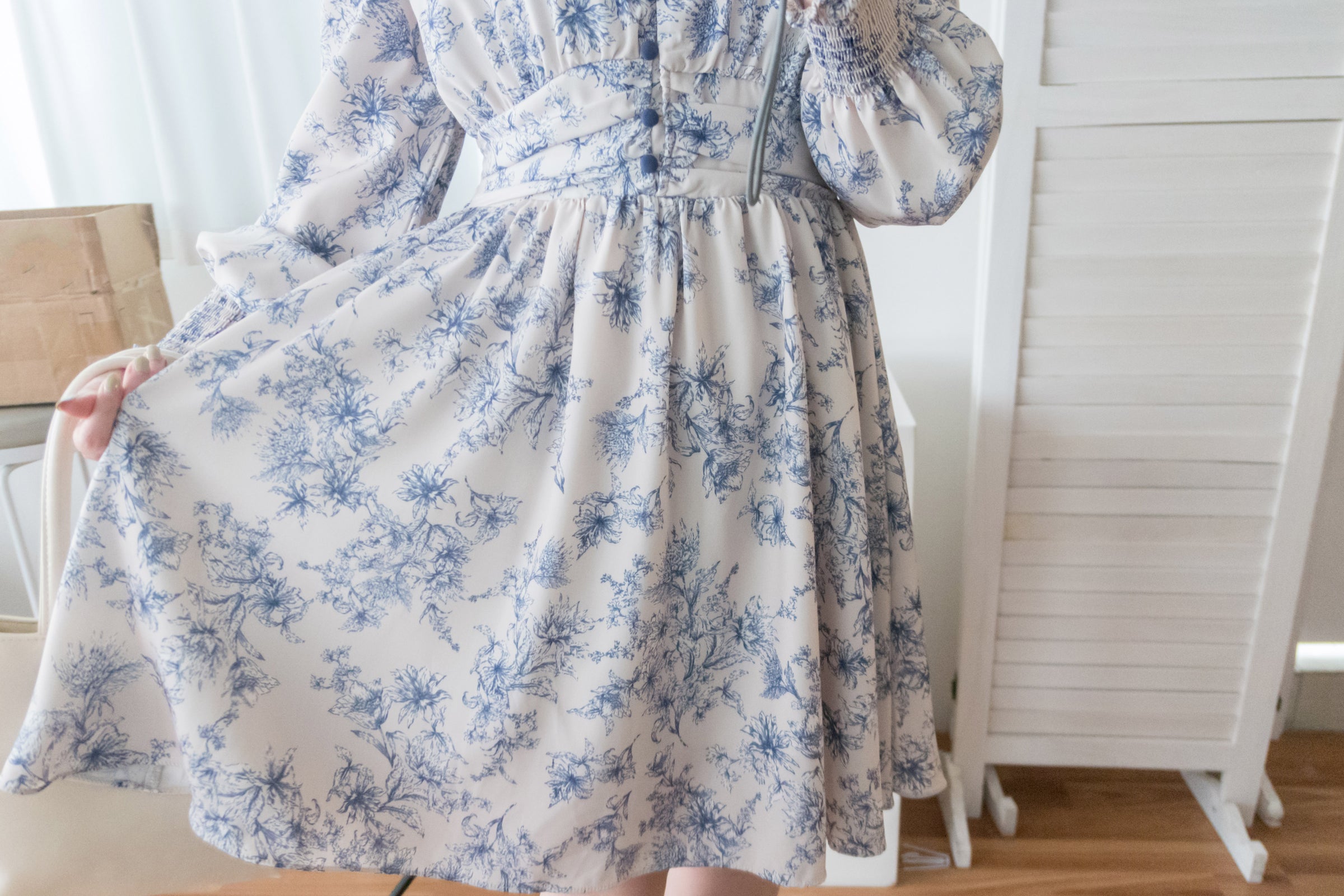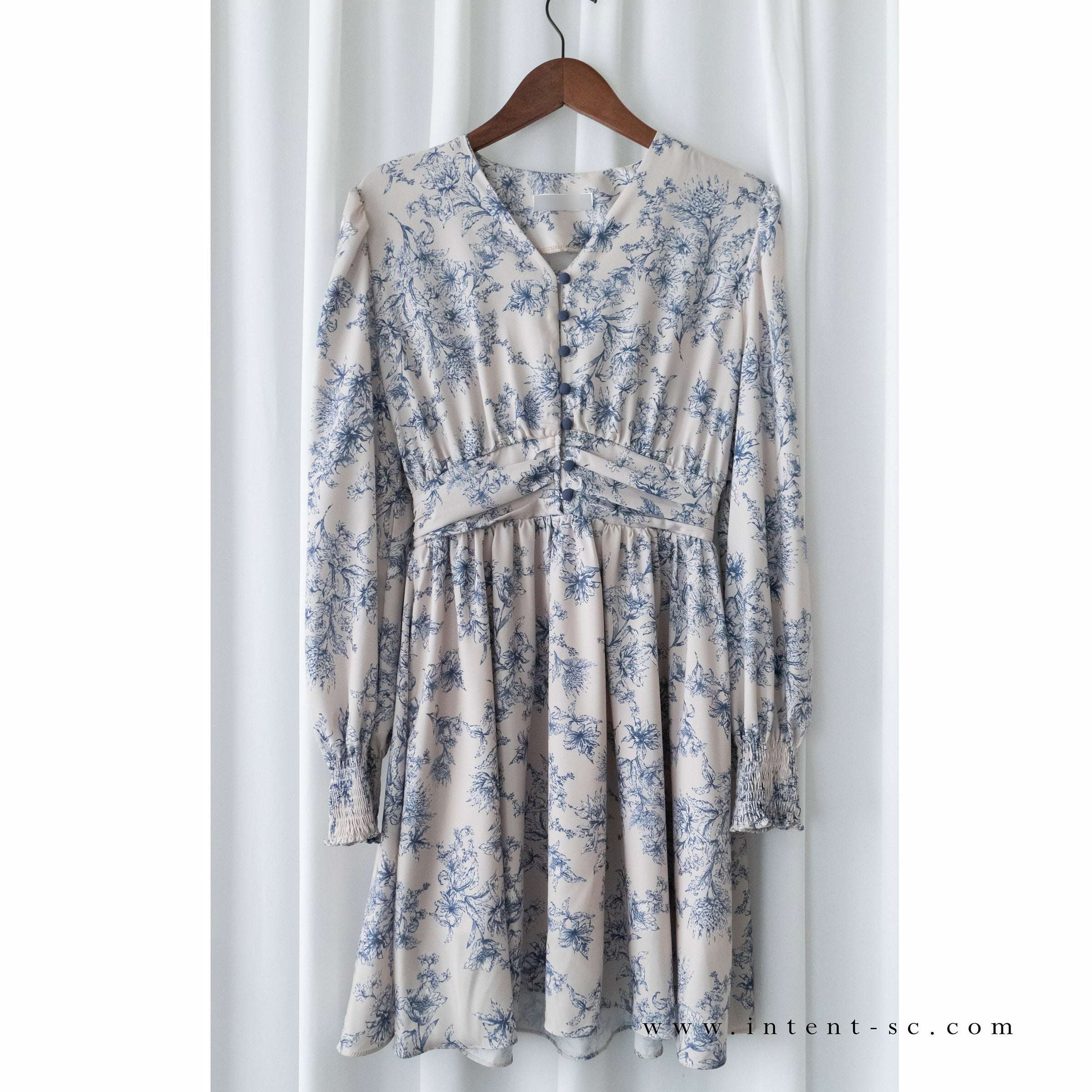 【早秋預訂優惠 -$15】(intent x Korea 獨家款) Porcelain 線條青花瓷顯瘦後橡筋, Dress/ DS9135 (Pre-order/優惠 9月14日完結)