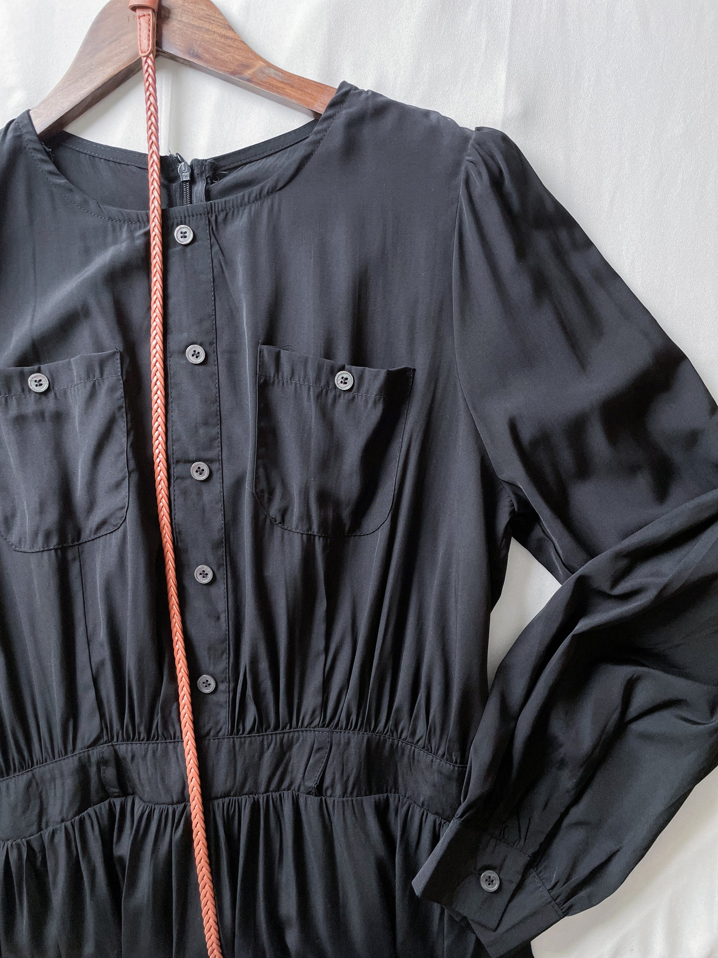 ✦後拉鍊過腰/ 29"自由修腰/ 裝飾鈕扣/ 半裡布