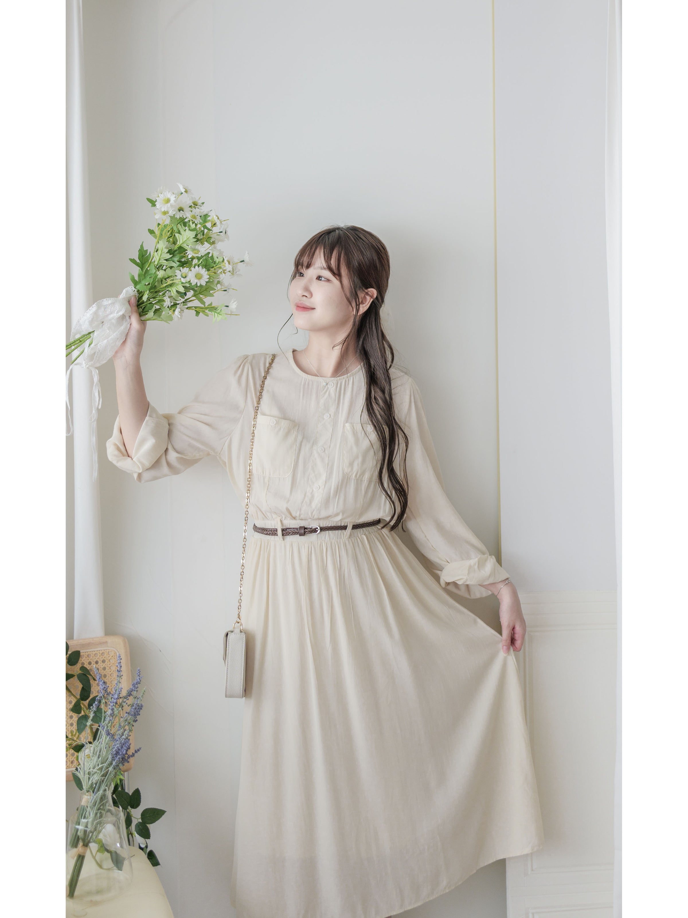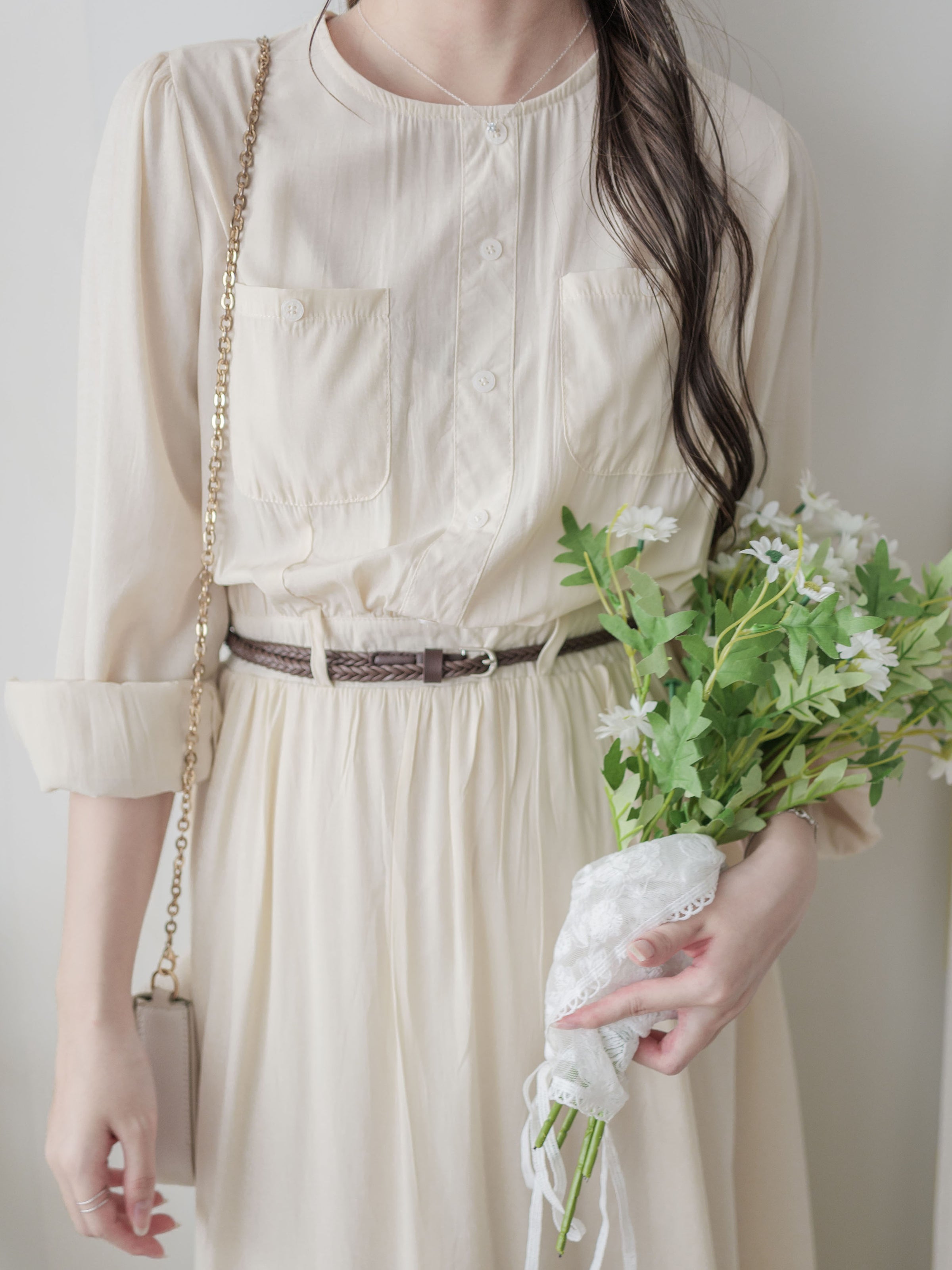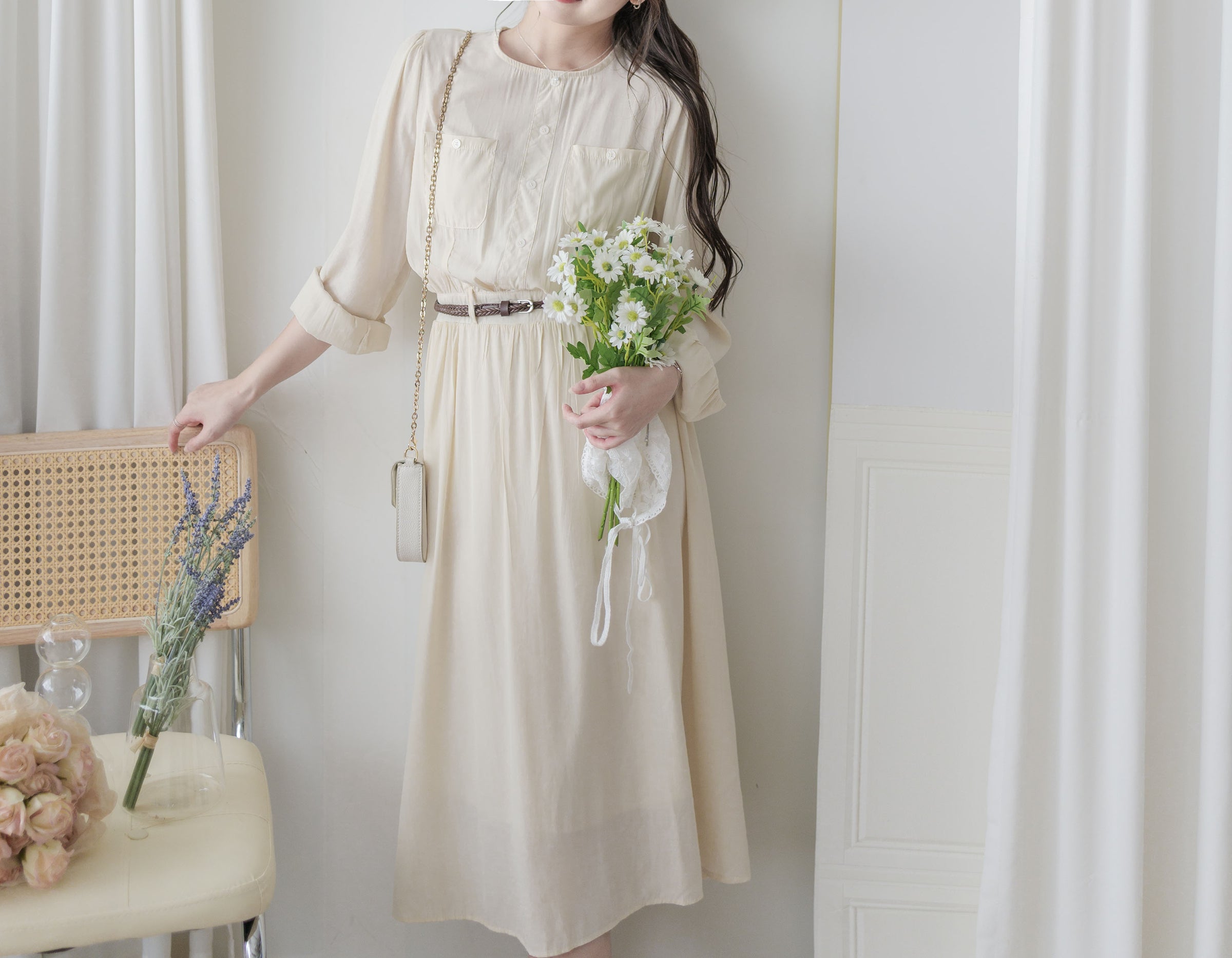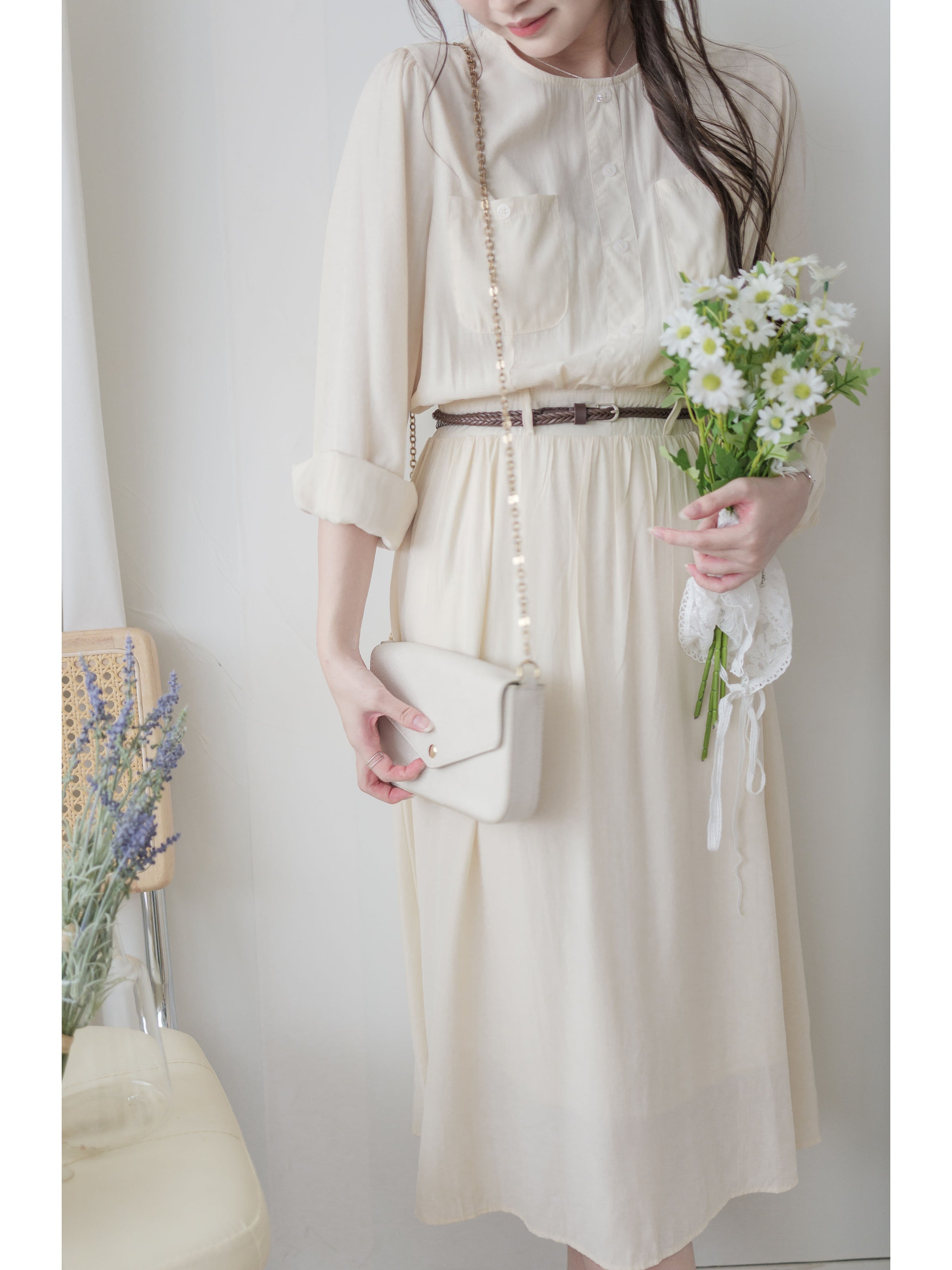 (附送編織腰帶) Sophie Dress 裝飾鈕扣輕優雅薄連身裙/ DS9993