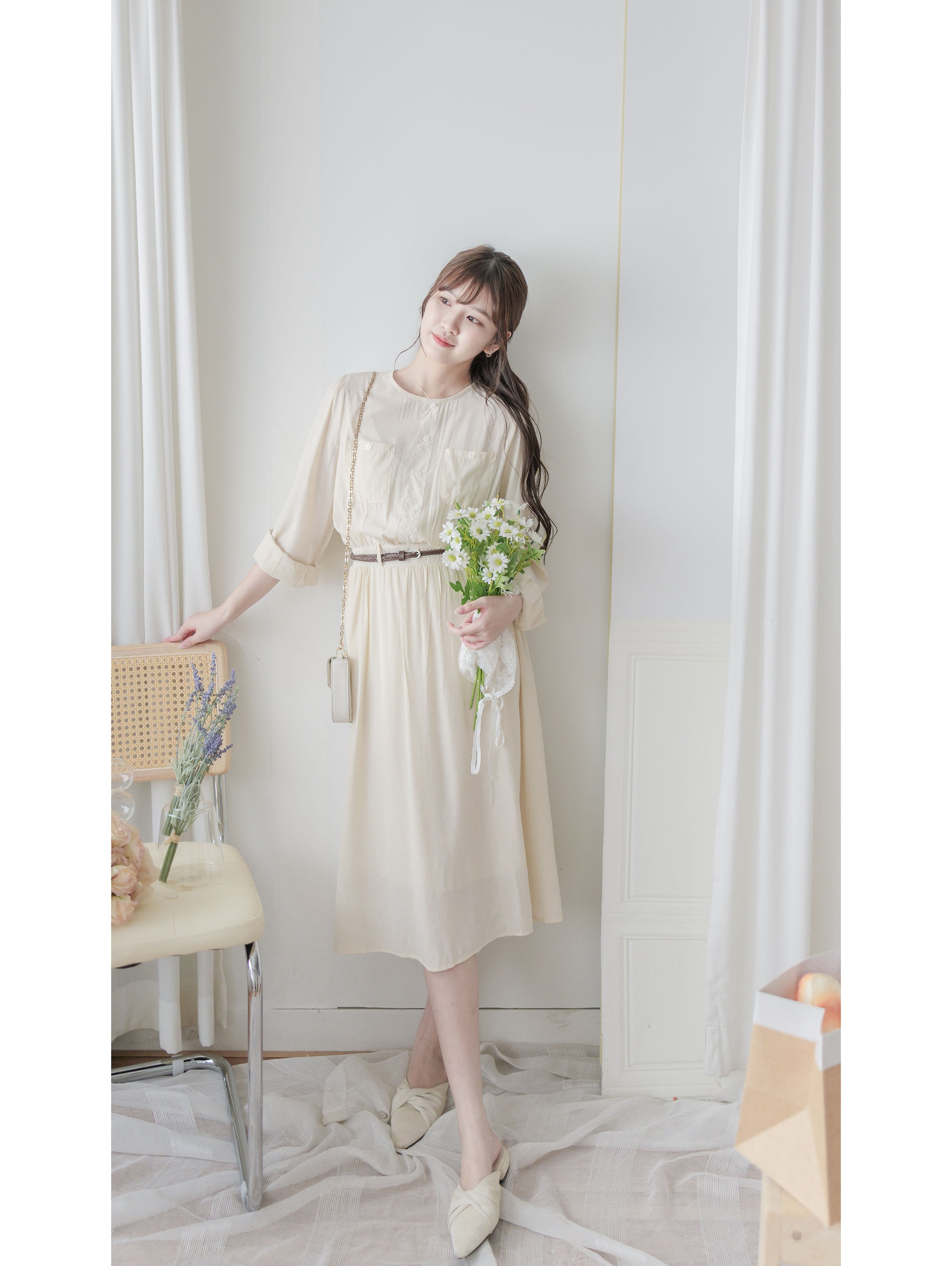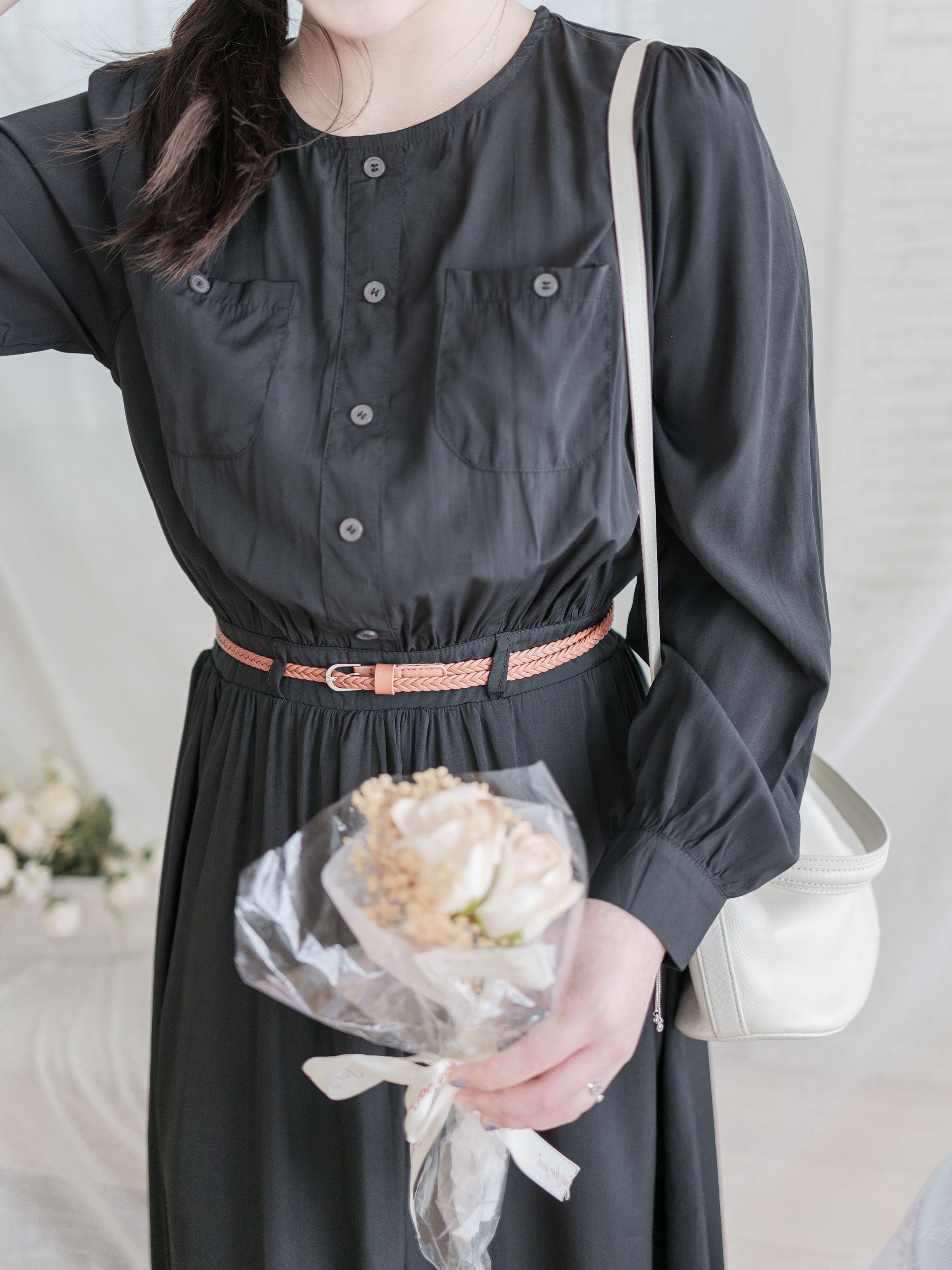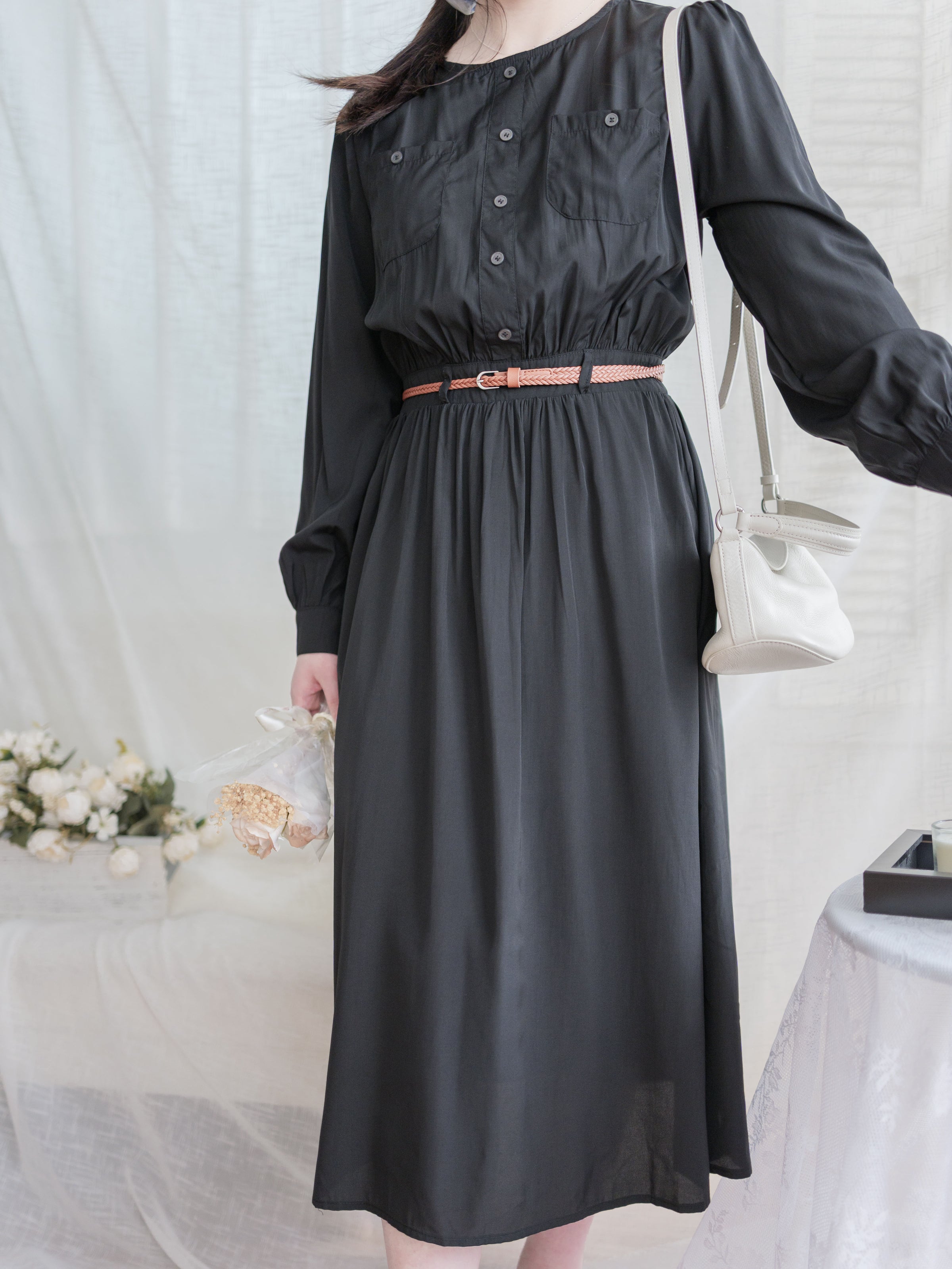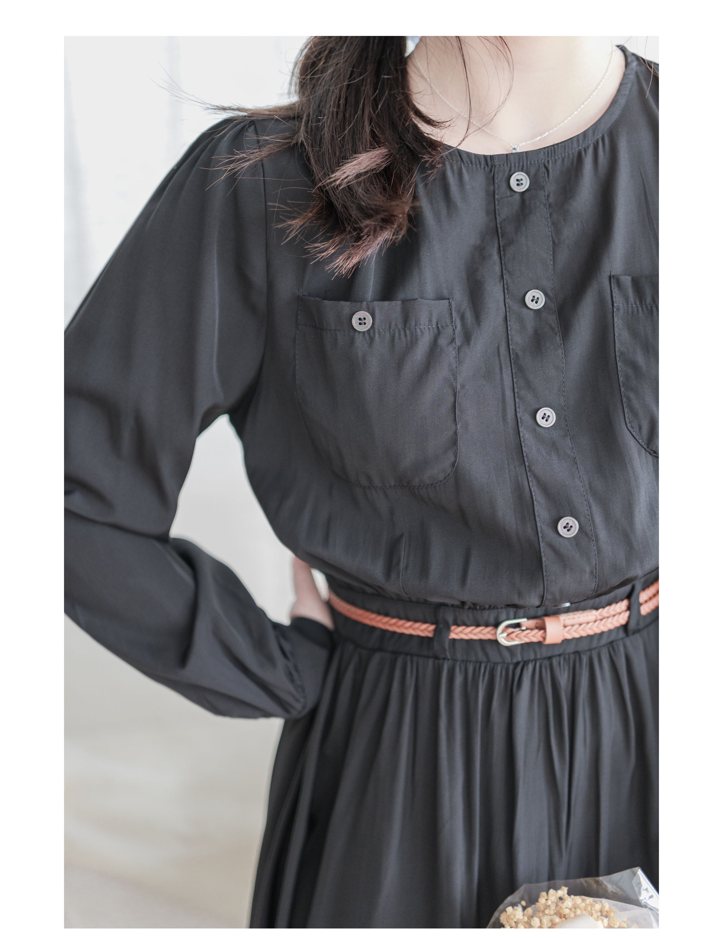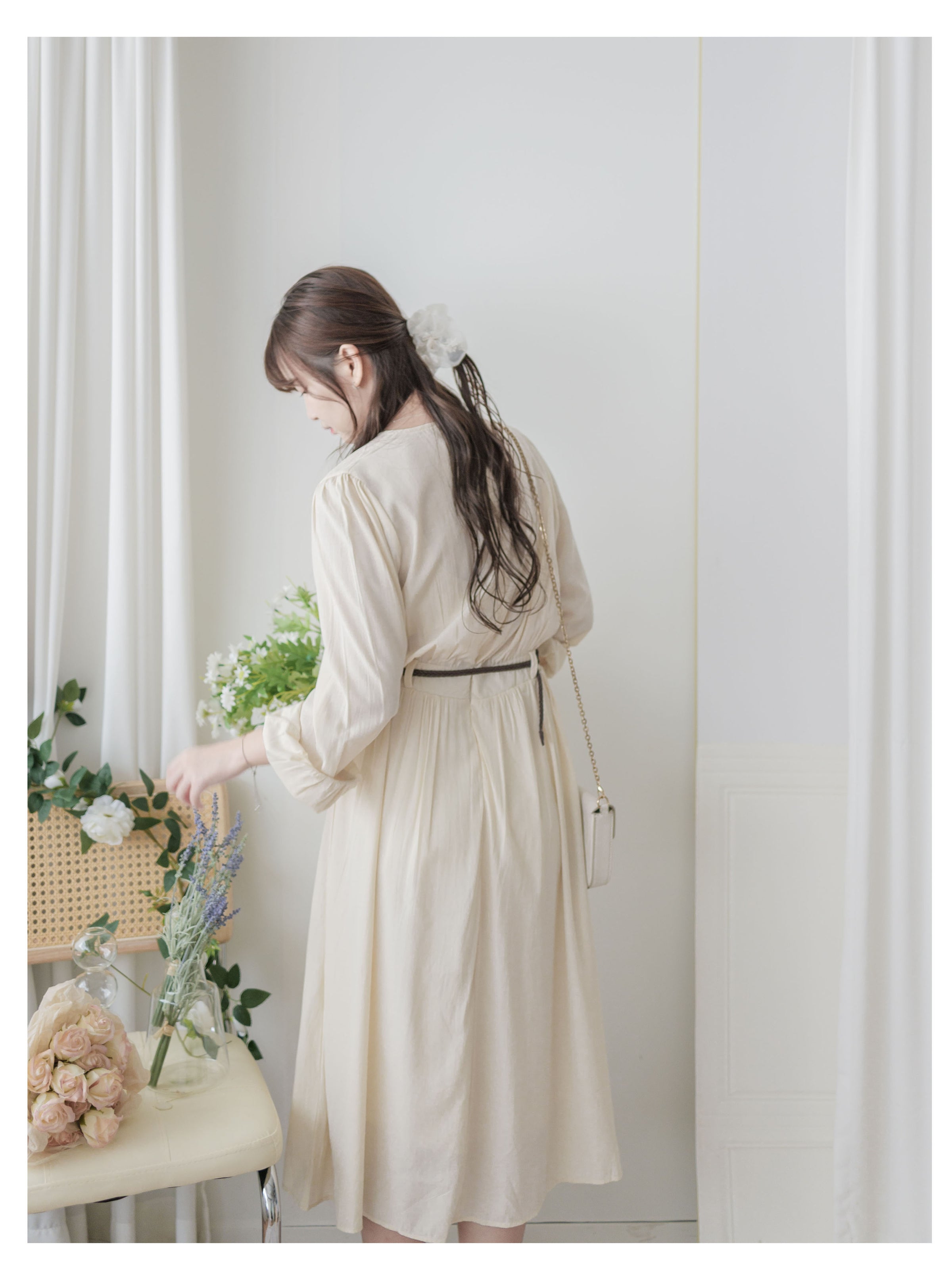 (附送編織腰帶) Sophie Dress 裝飾鈕扣輕優雅薄連身裙/ DS9993
