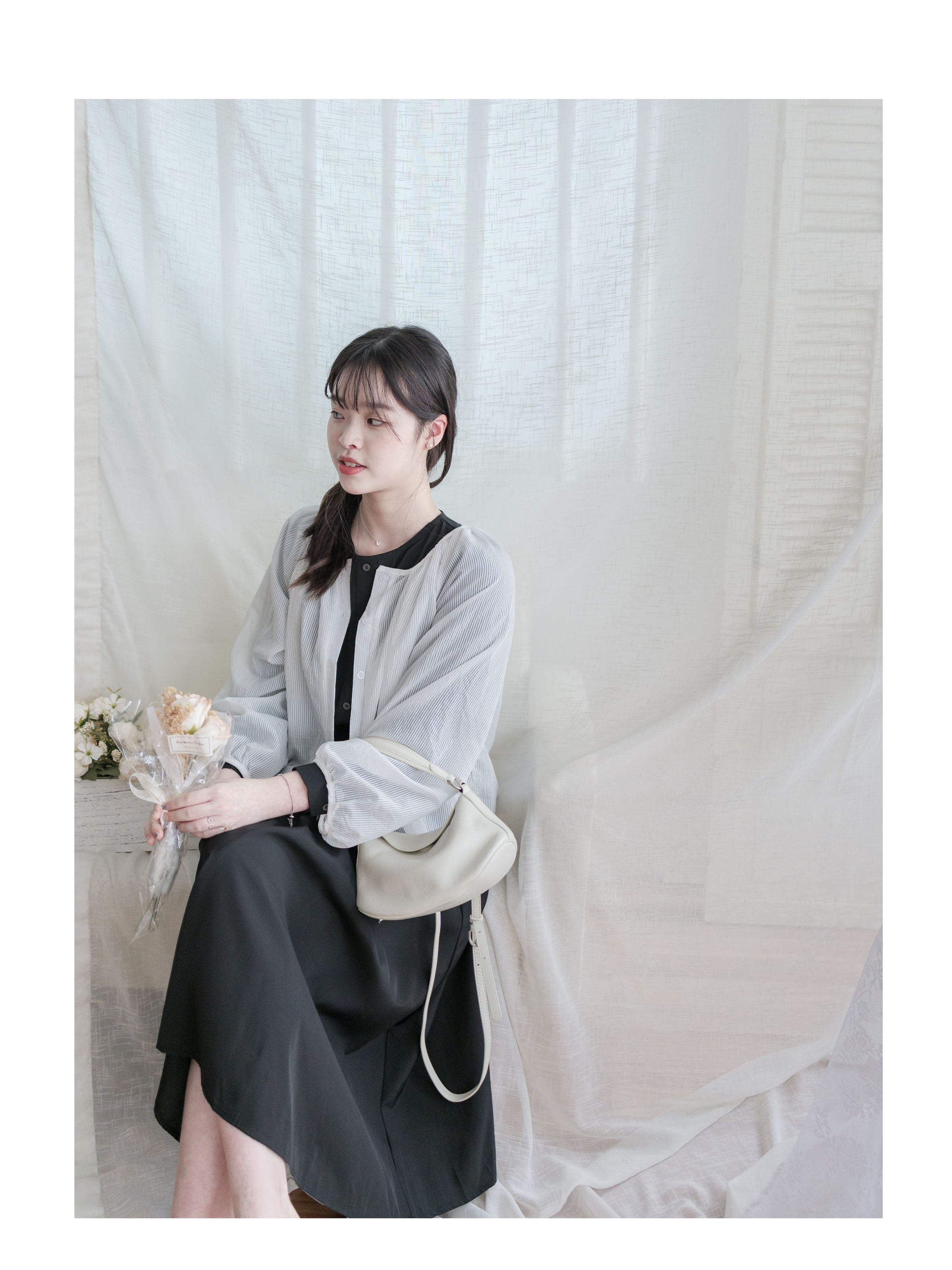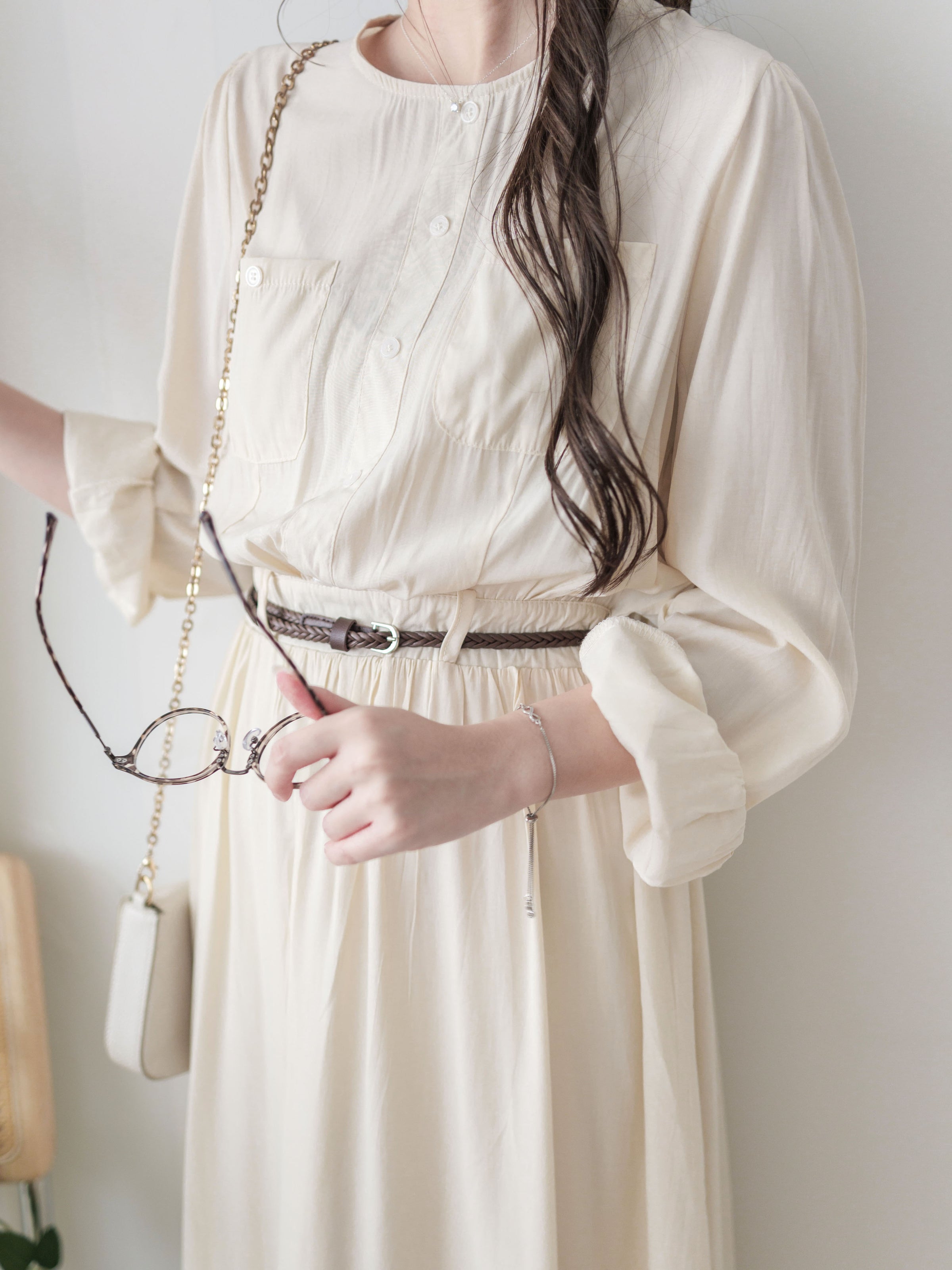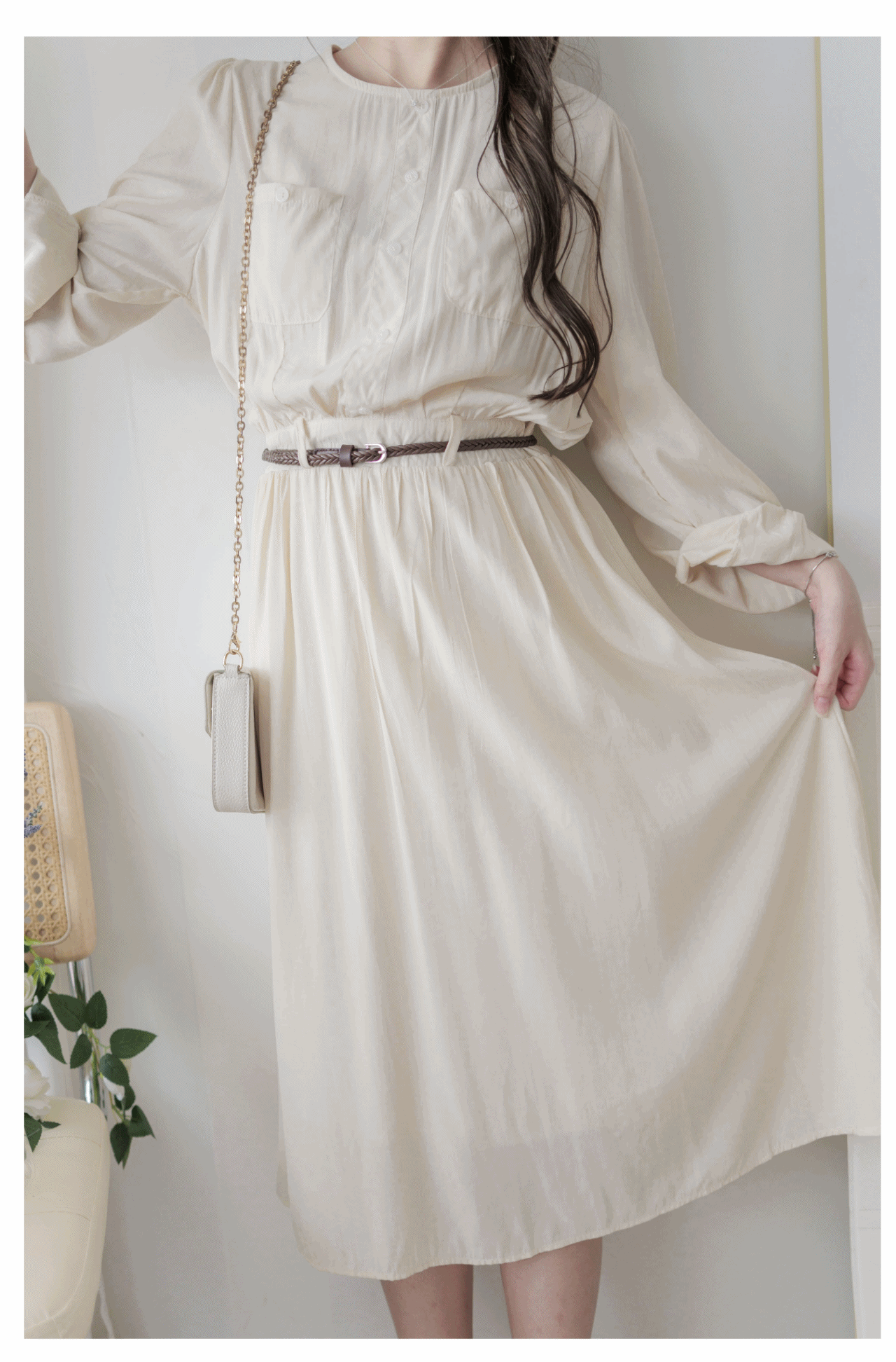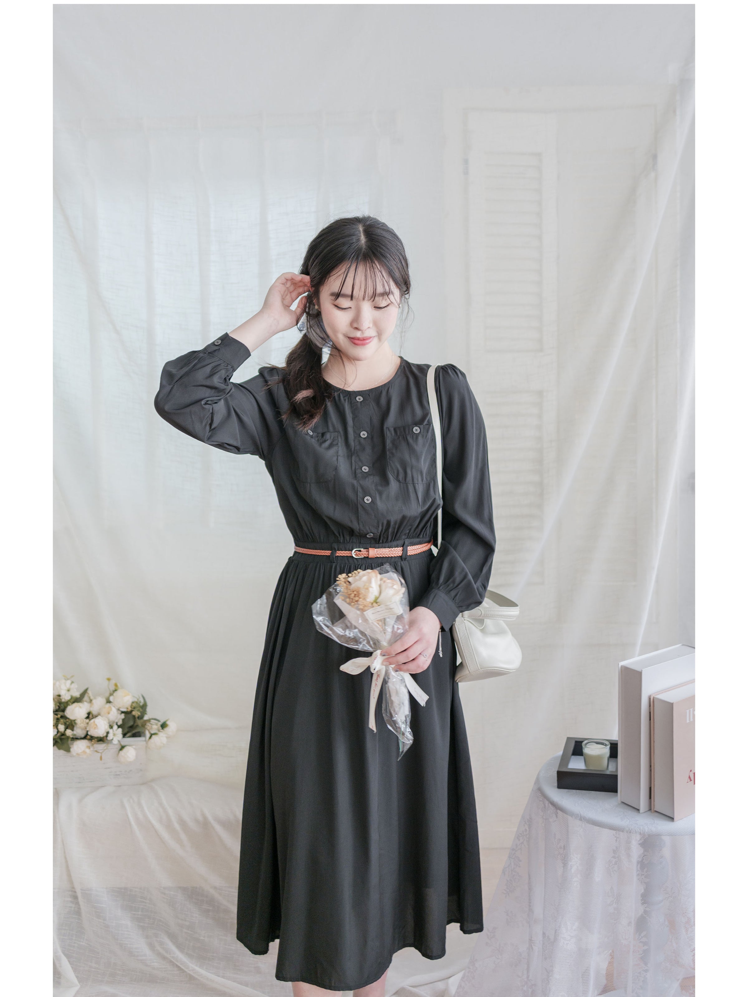 (附送編織腰帶) Sophie Dress 裝飾鈕扣輕優雅薄連身裙/ DS9993