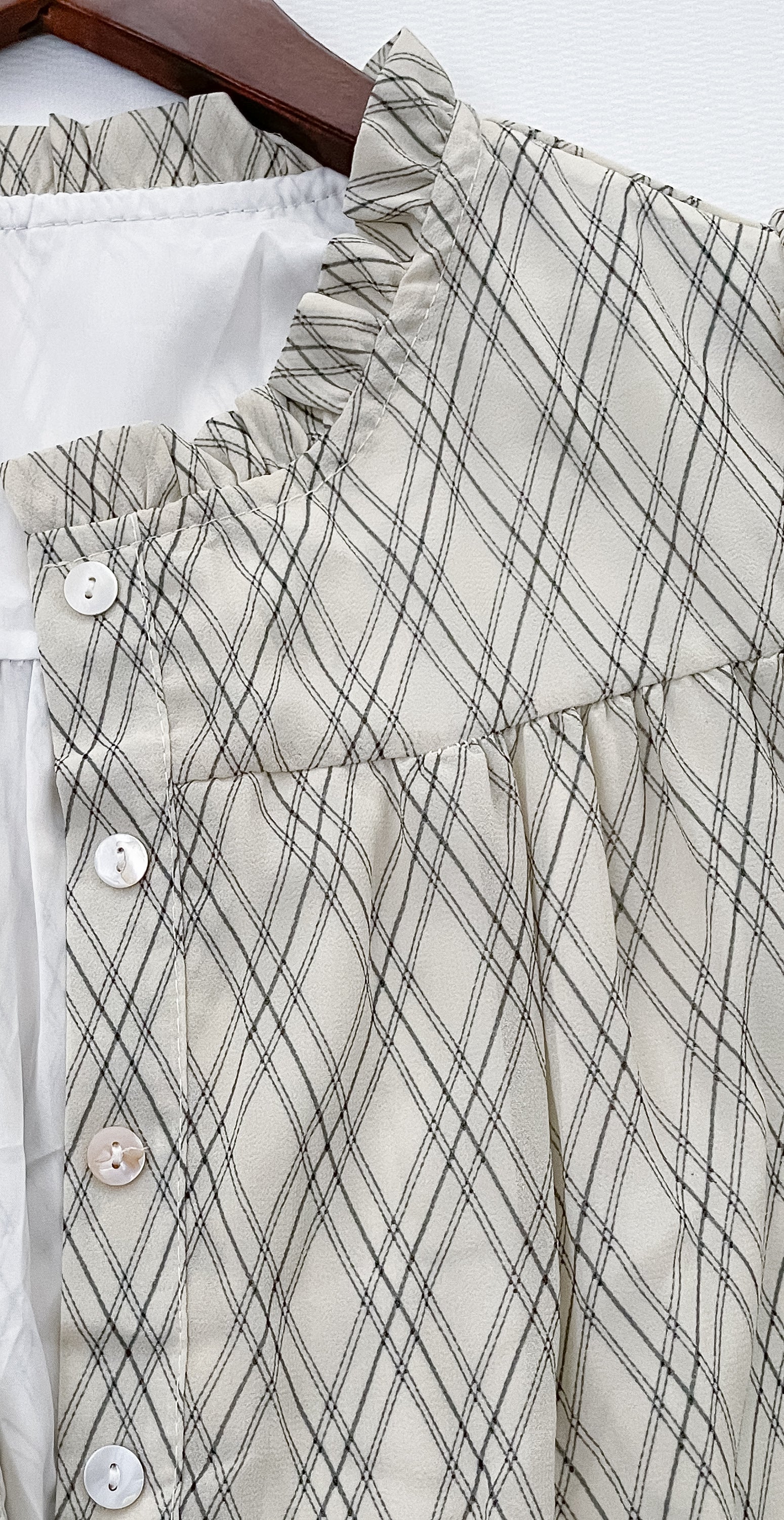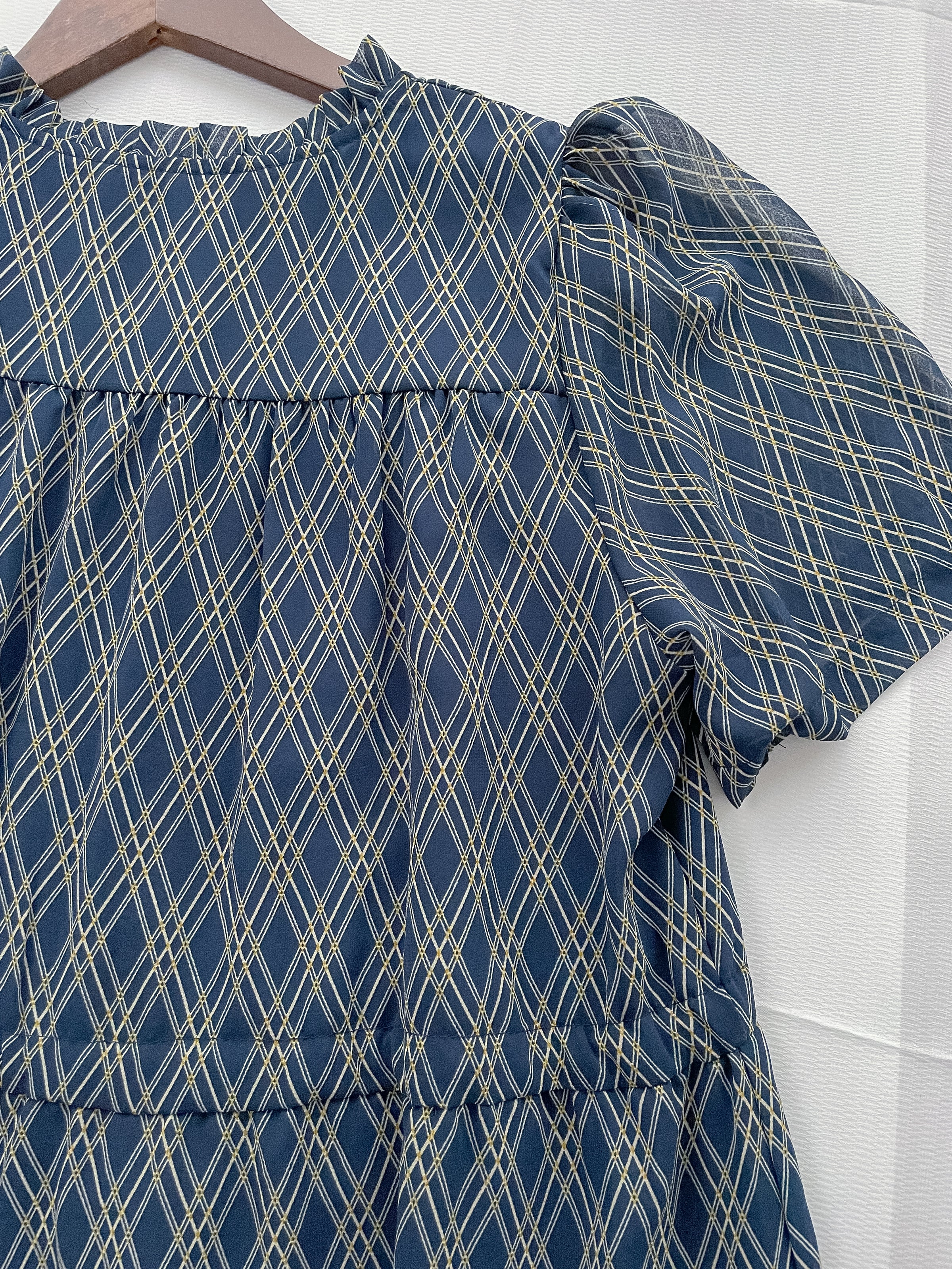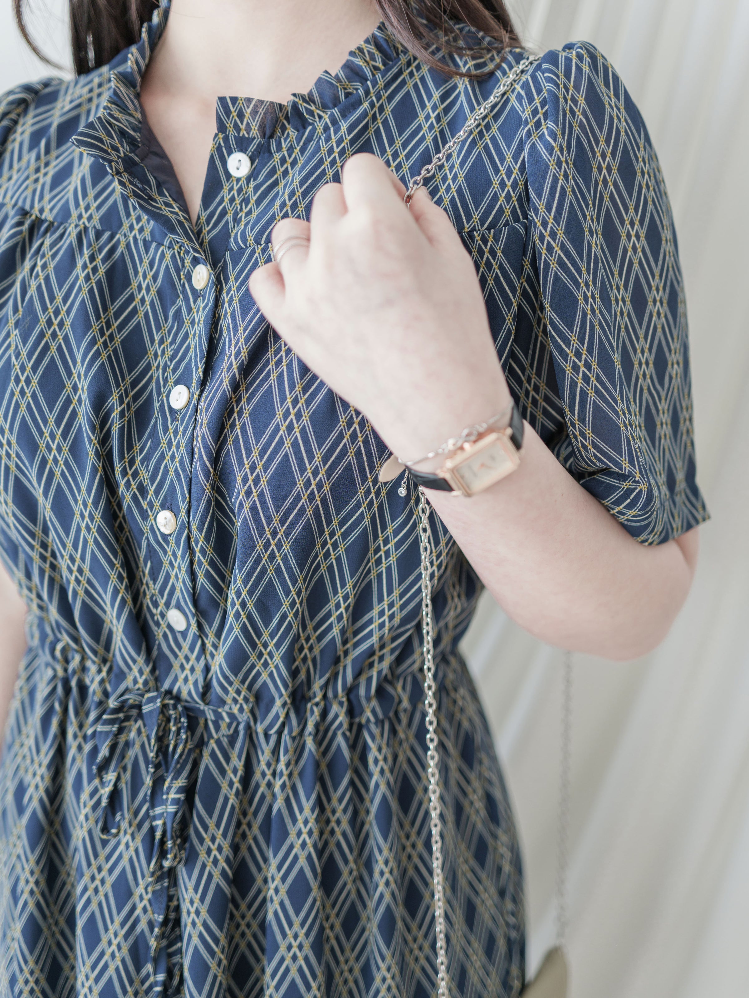 Ruffle Collar Rhombus Dress 花邊領口菱格紋雪紡連身裙/ DS9994