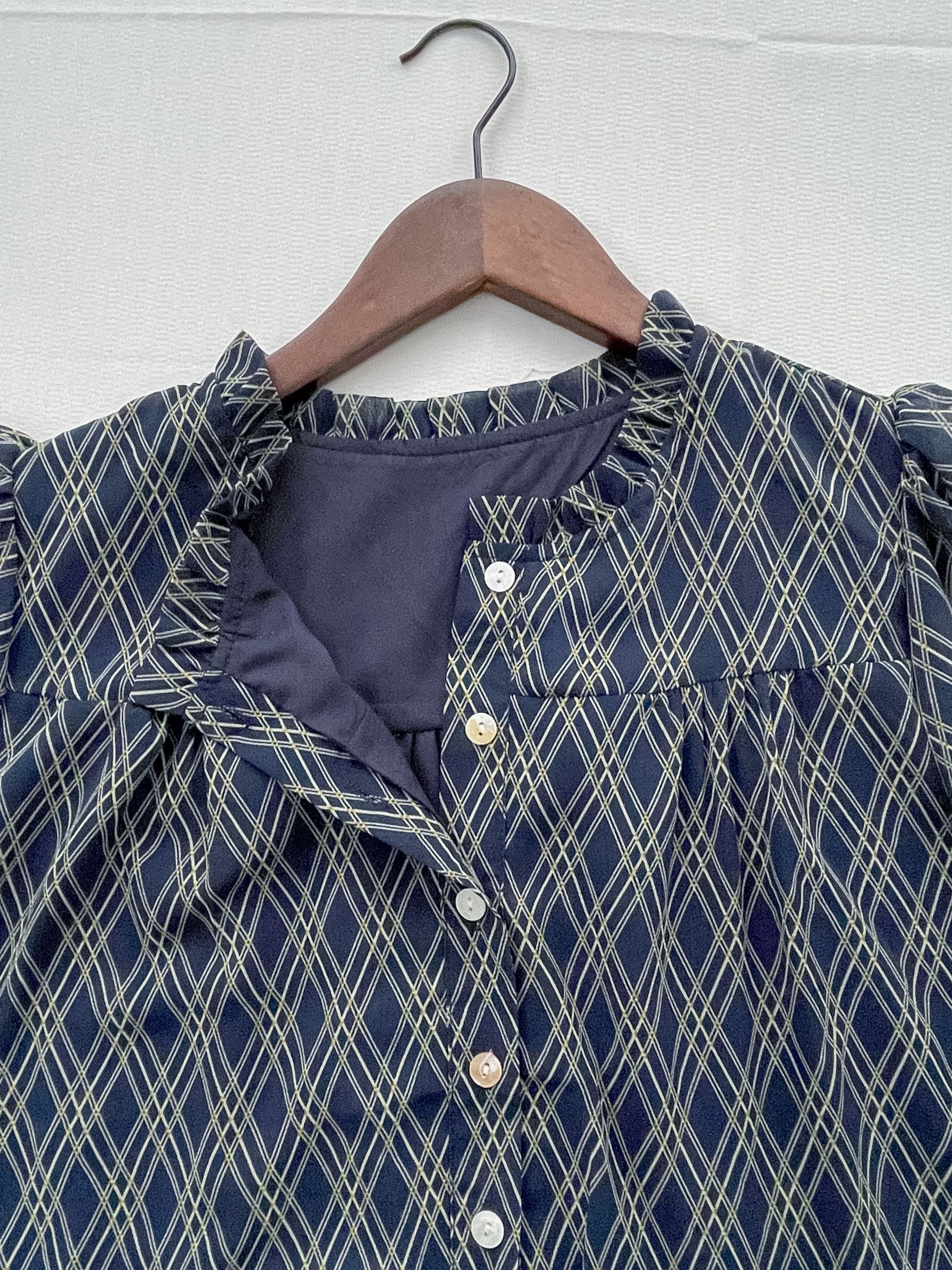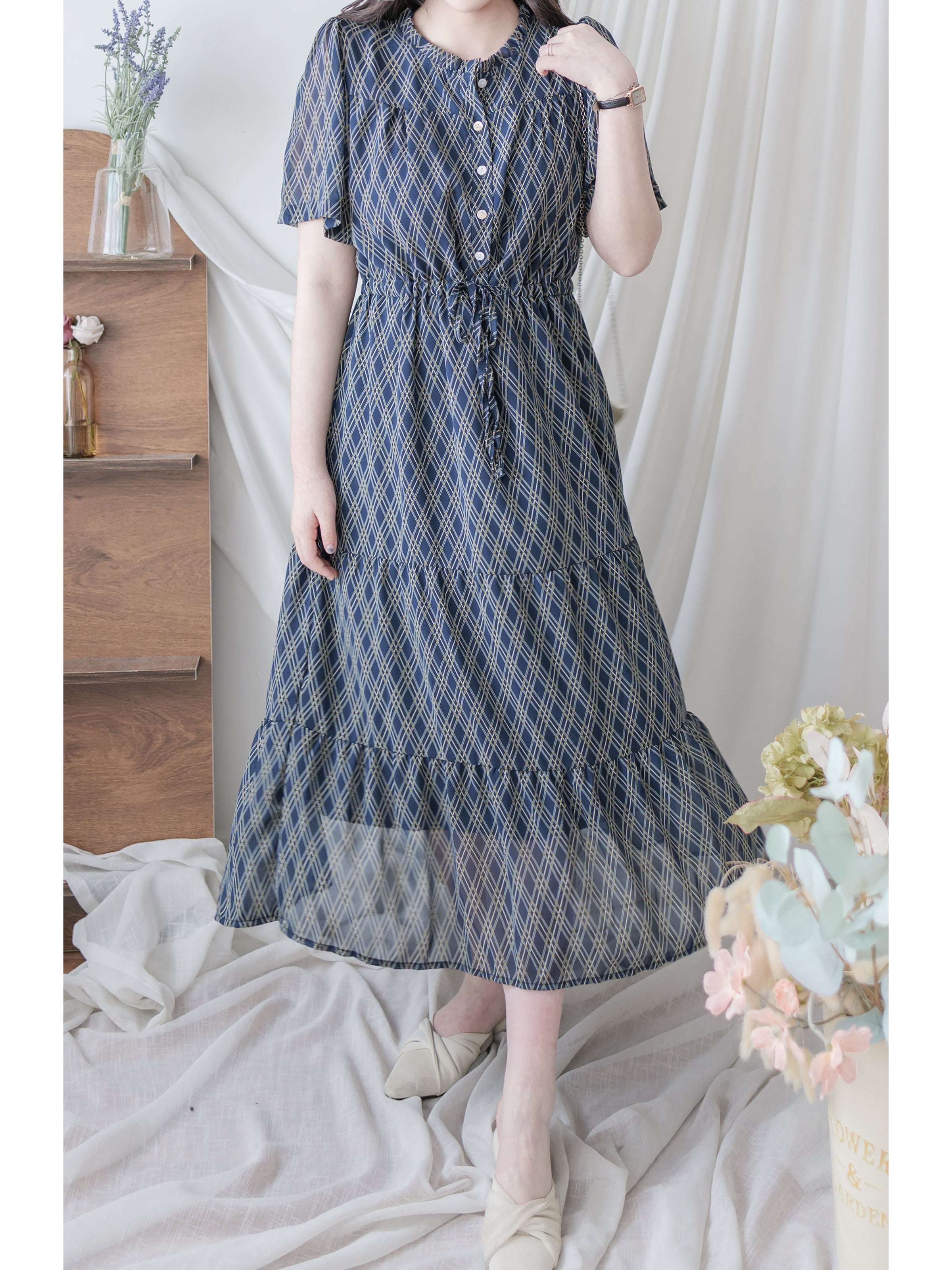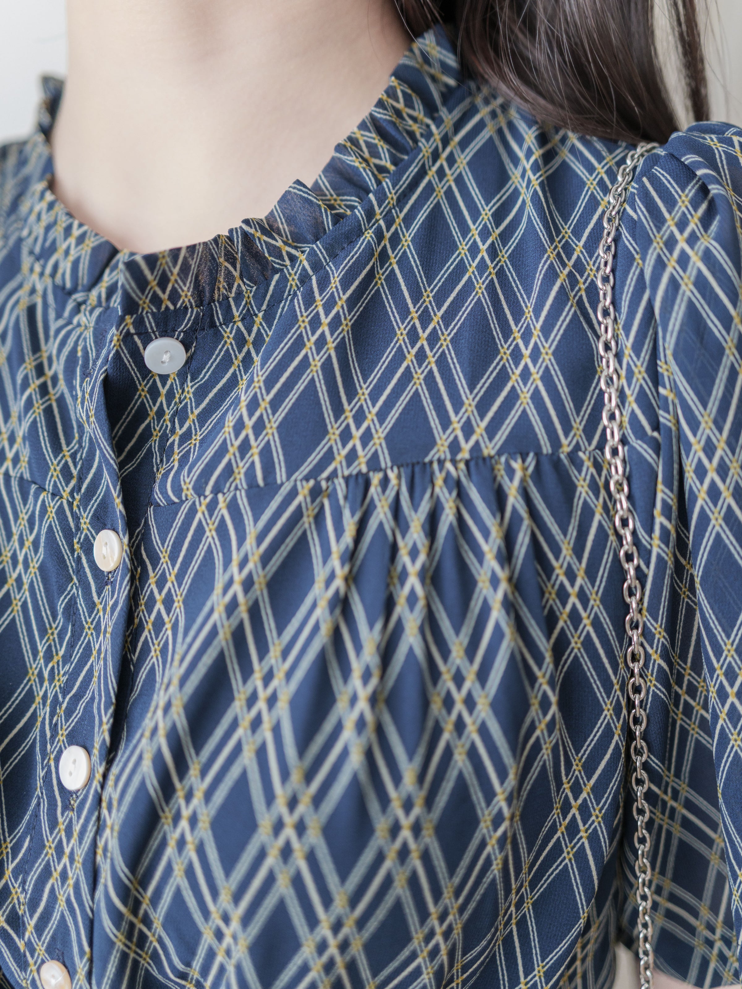 Ruffle Collar Rhombus Dress 花邊領口菱格紋雪紡連身裙/ DS9994