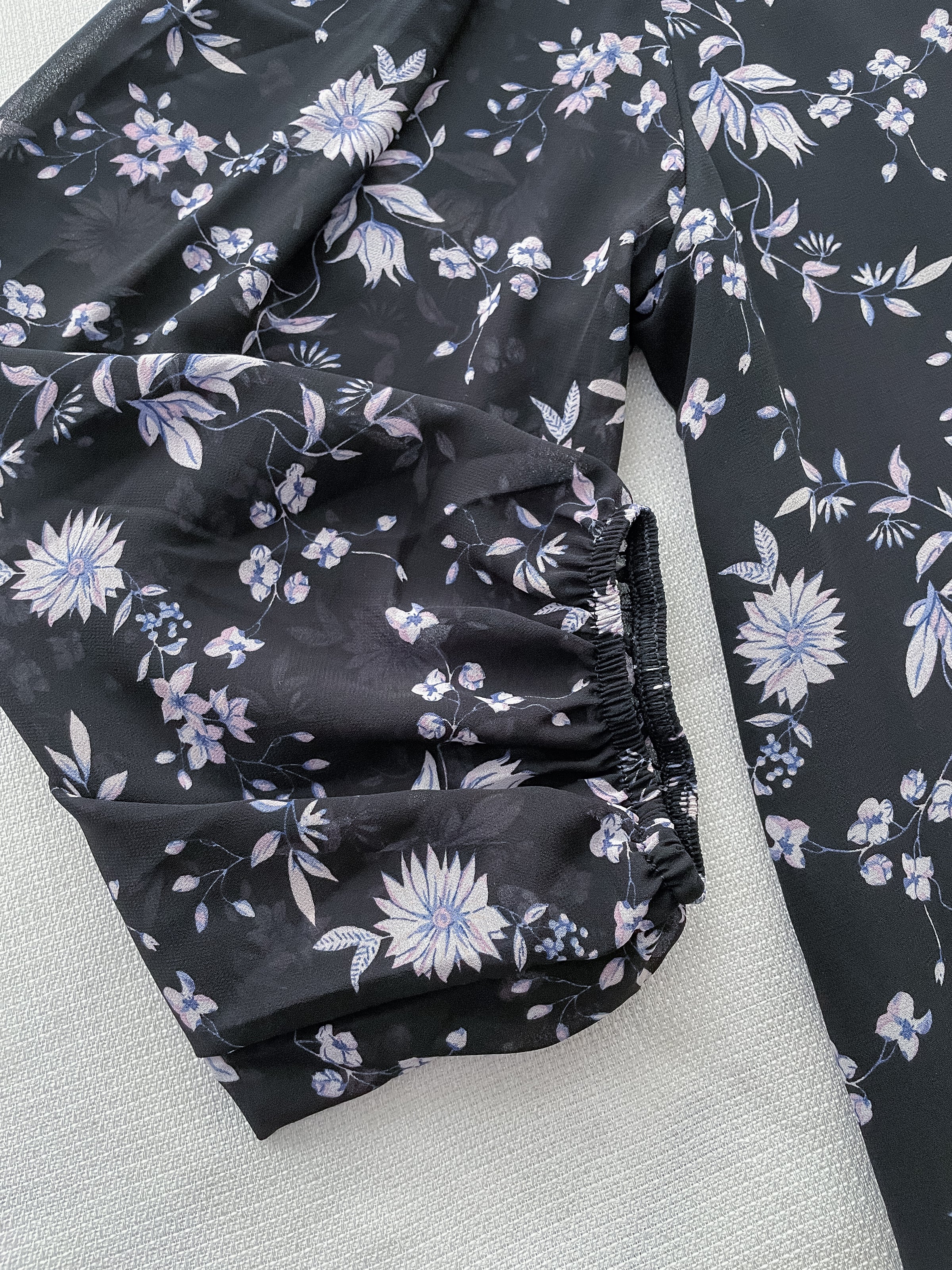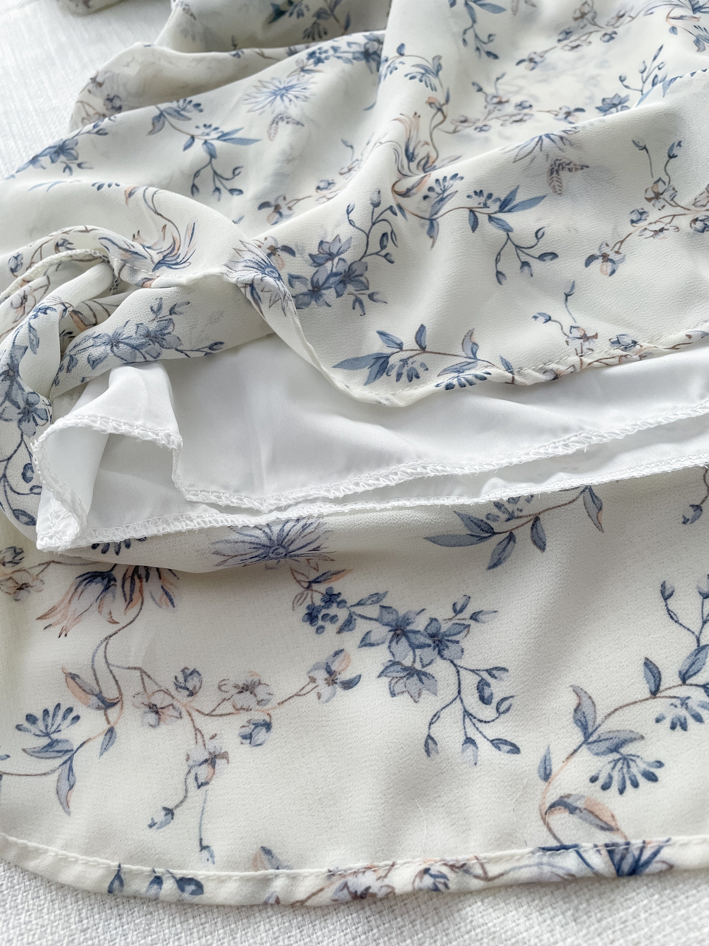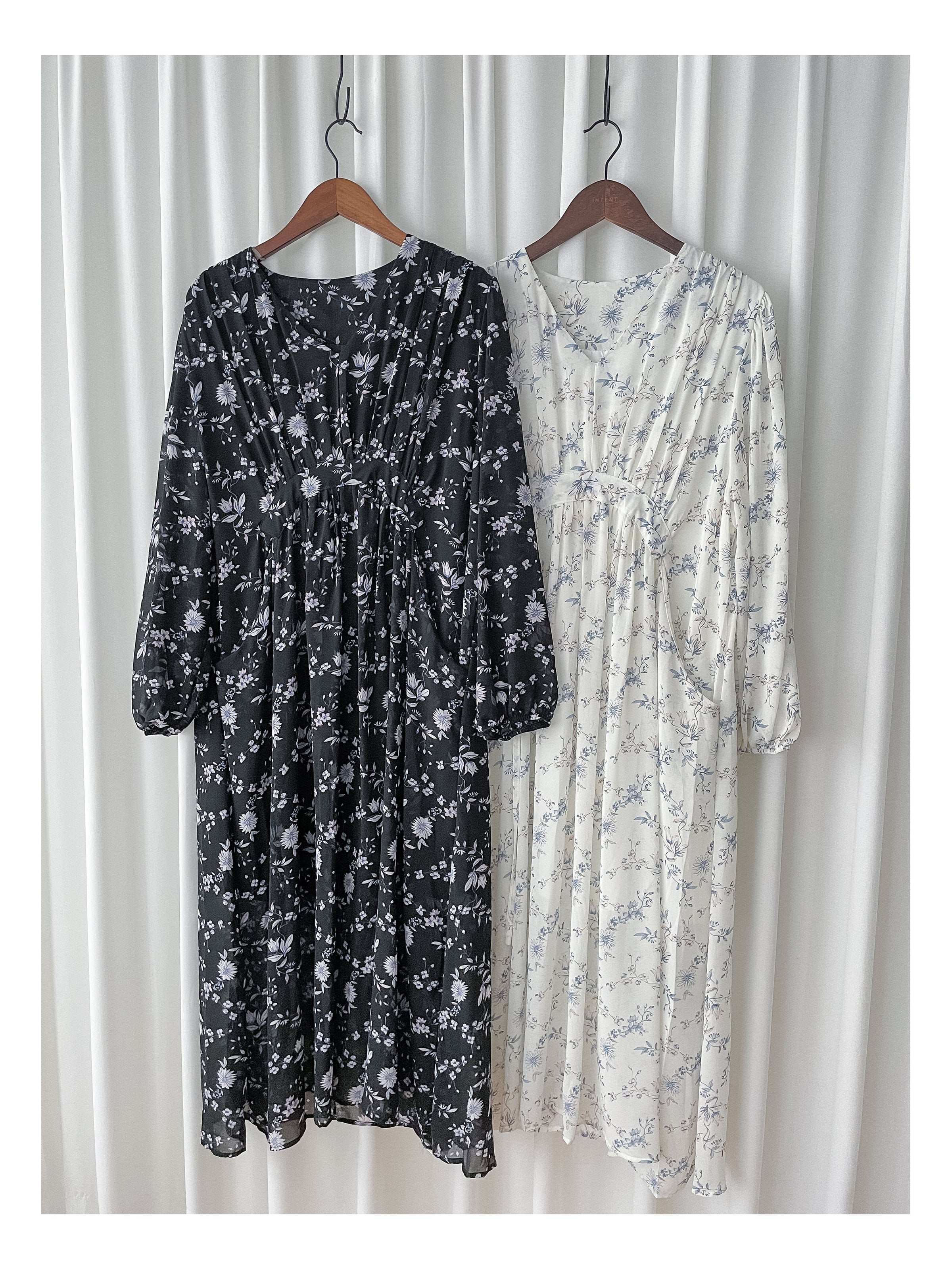 Lavender Daisy Dress 紫藍線條花顯腿長弧腰身口袋連身裙/ DS9997 (pre-order 10月9截單)