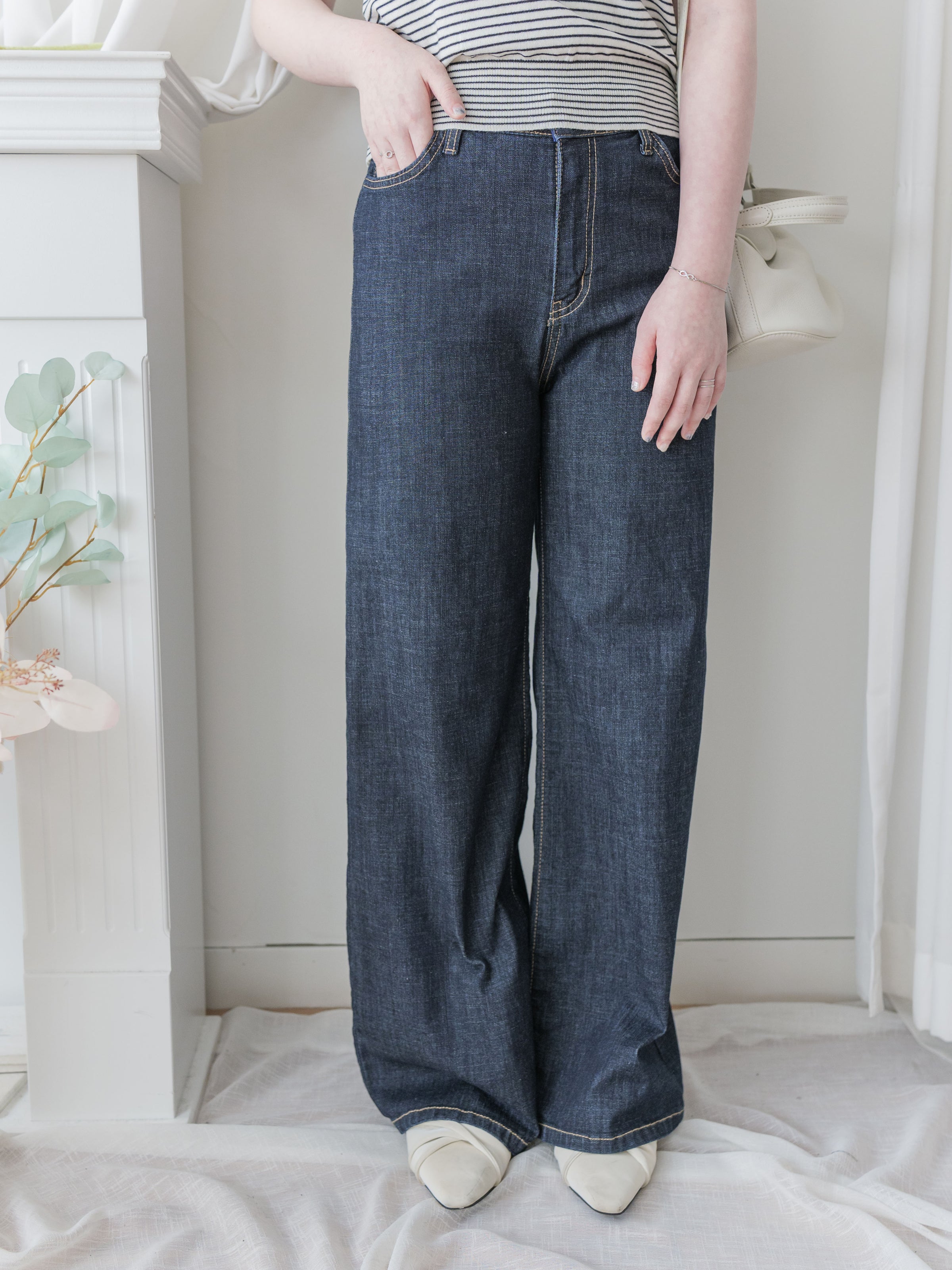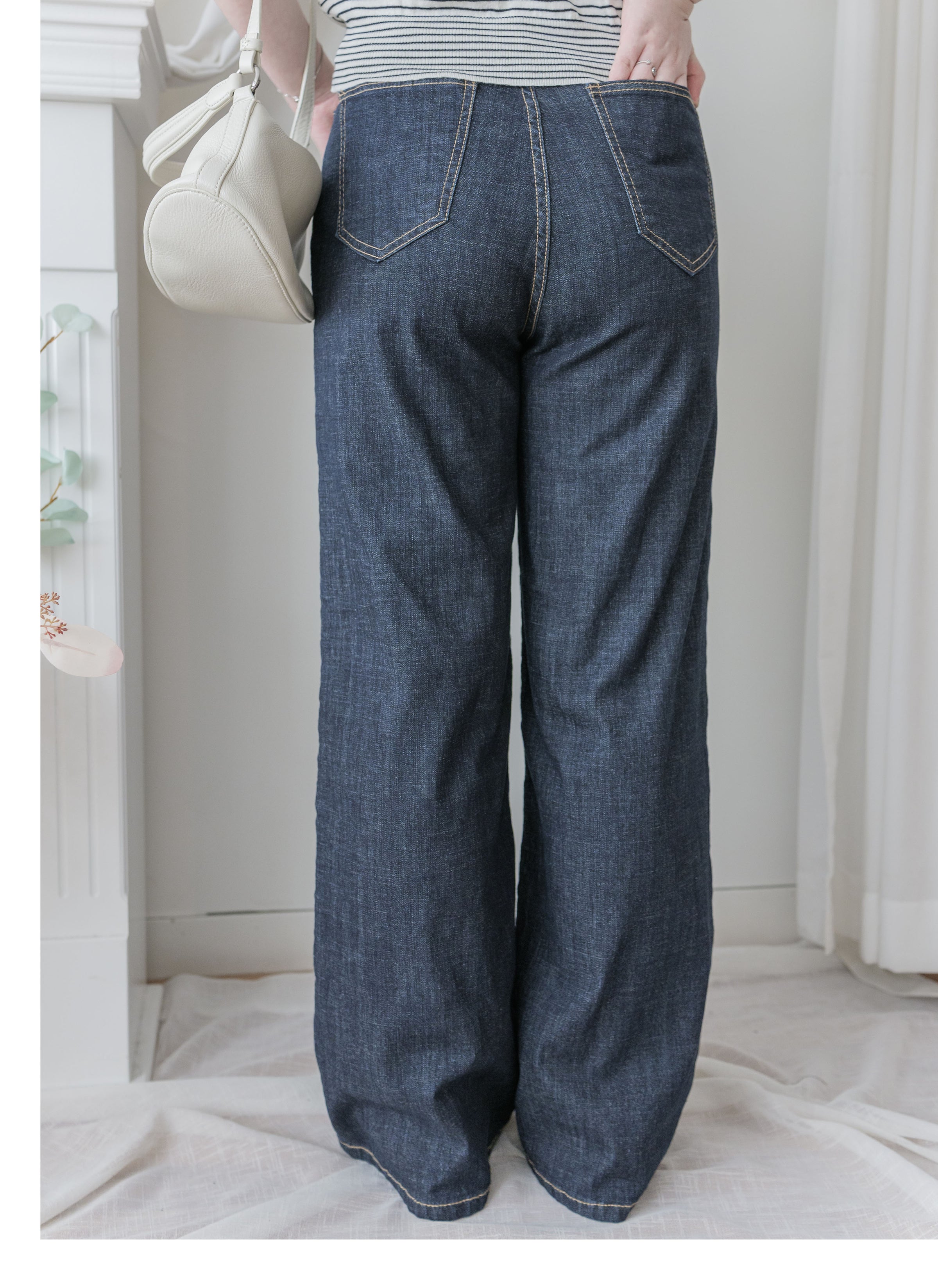 ✦高腰/隱形全彈性橡筋腰身/直筒褲管: 修飾腿型、隨性又顯瘦/方便左右口袋