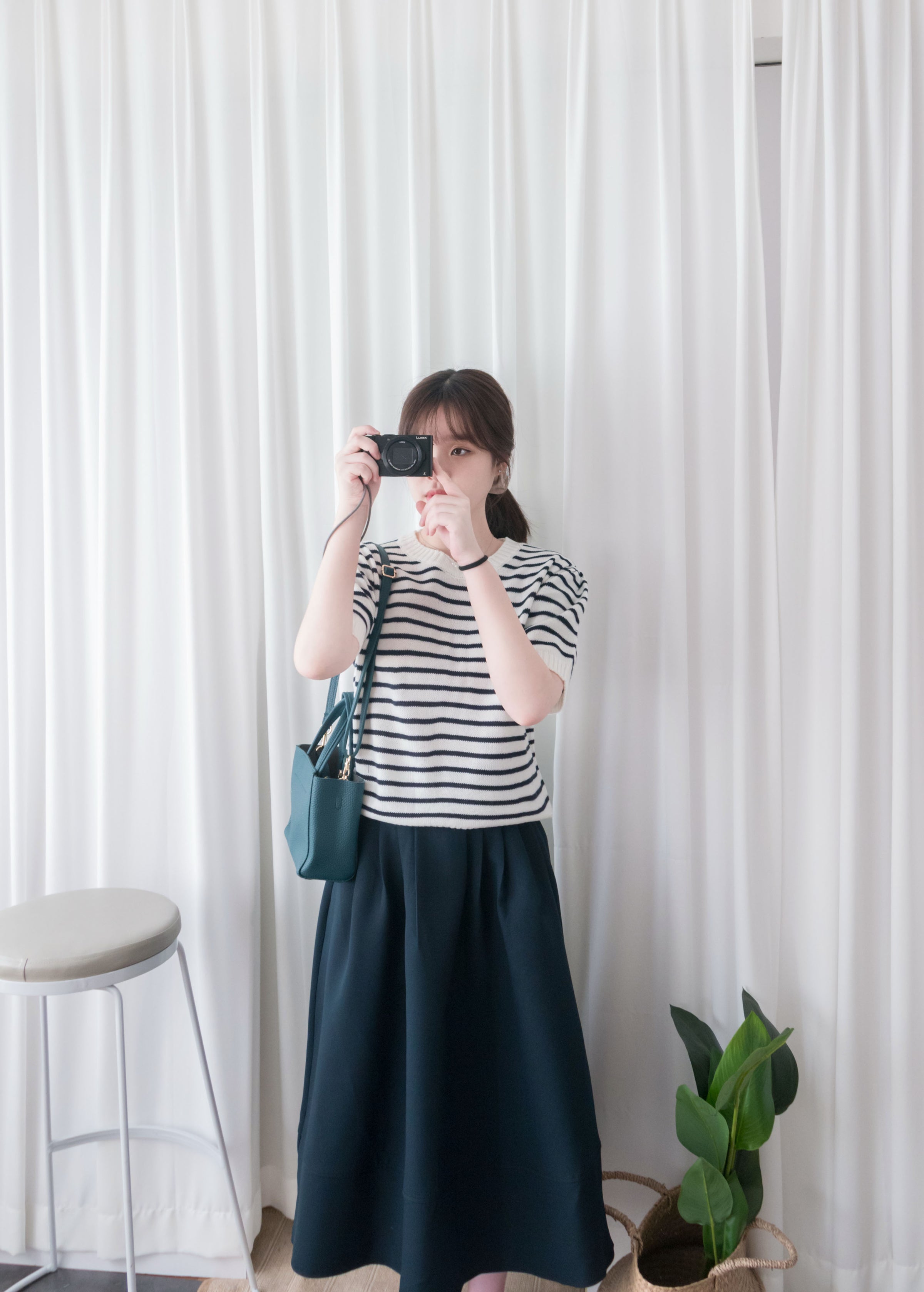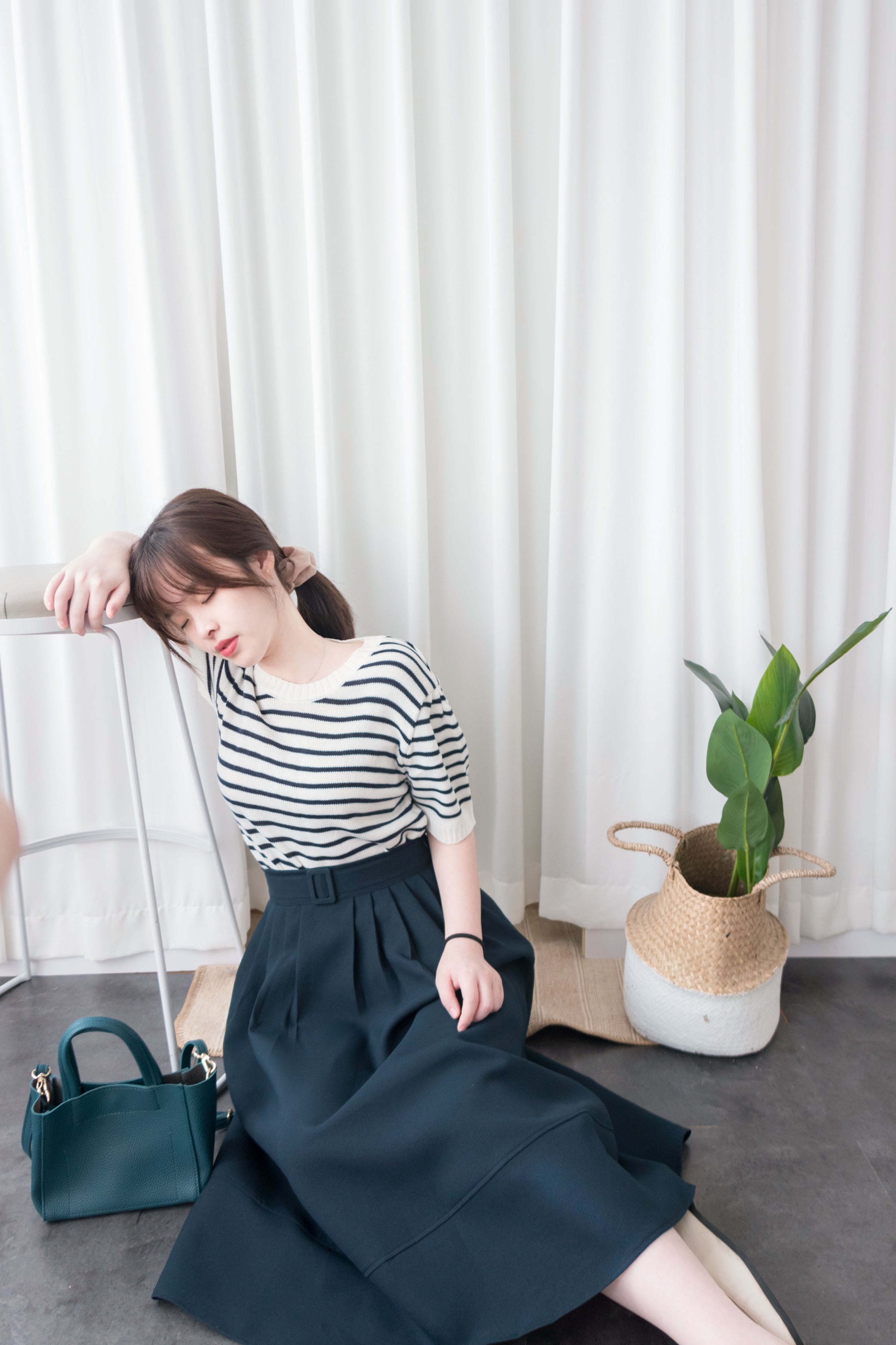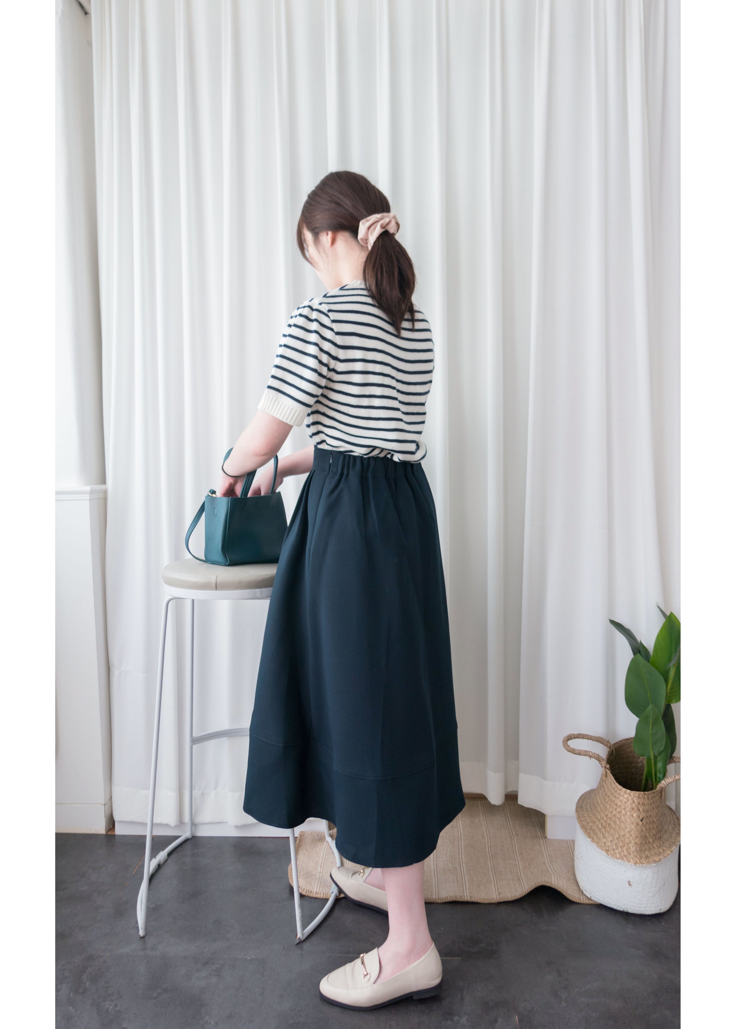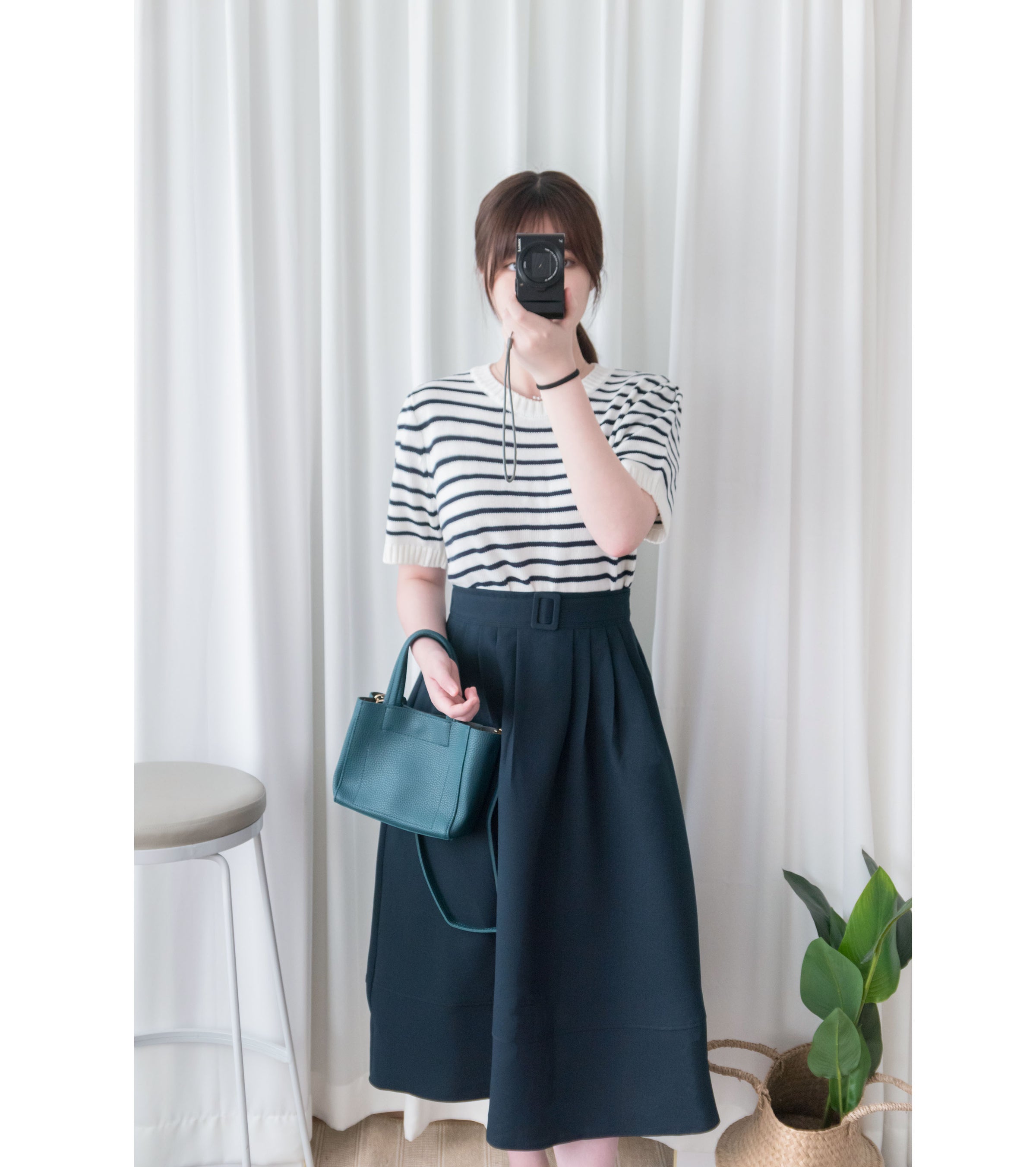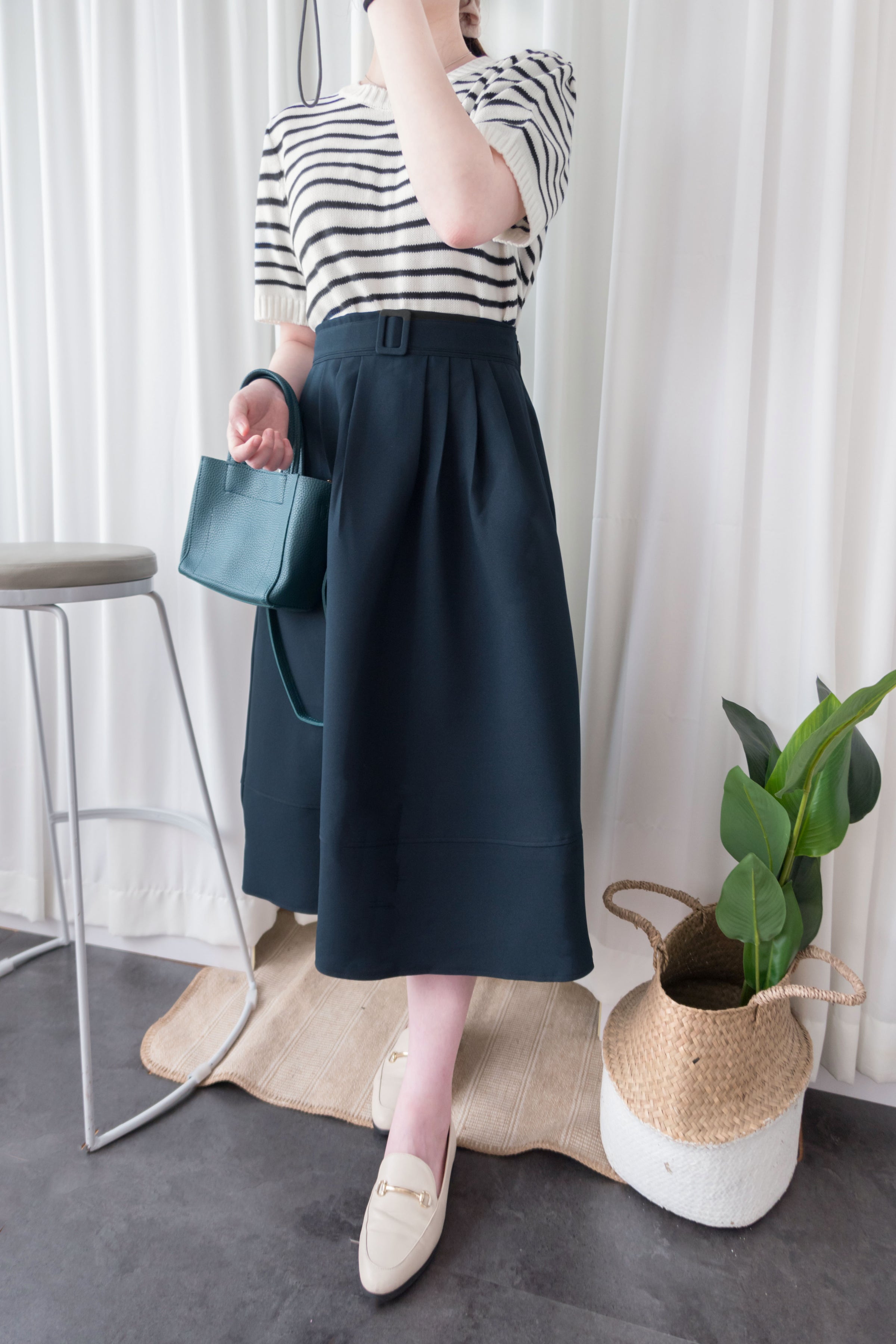 Navy Belt 方釦腰帶後橡筋傘形半身裙, Skirt/ SK8636 $299