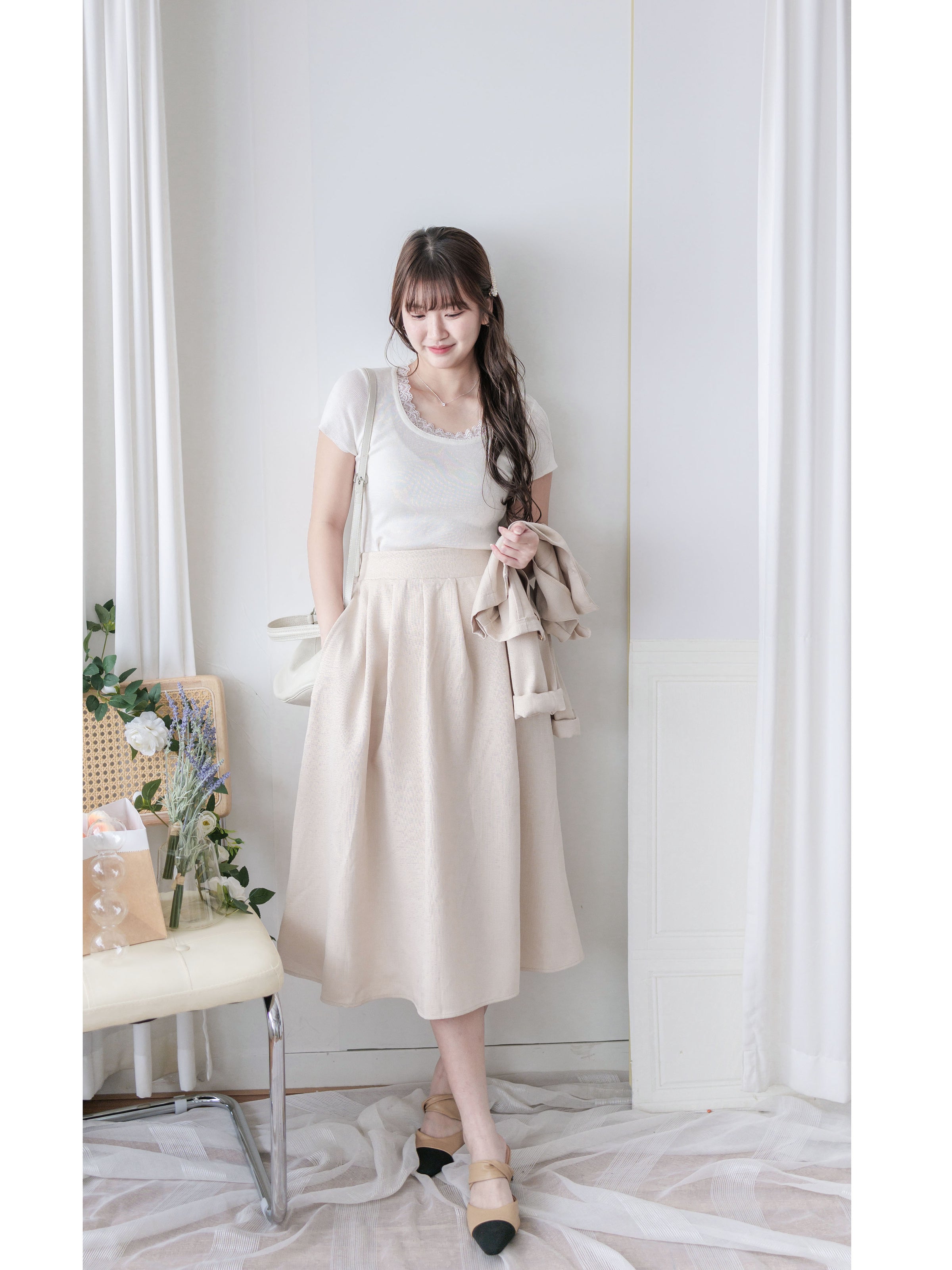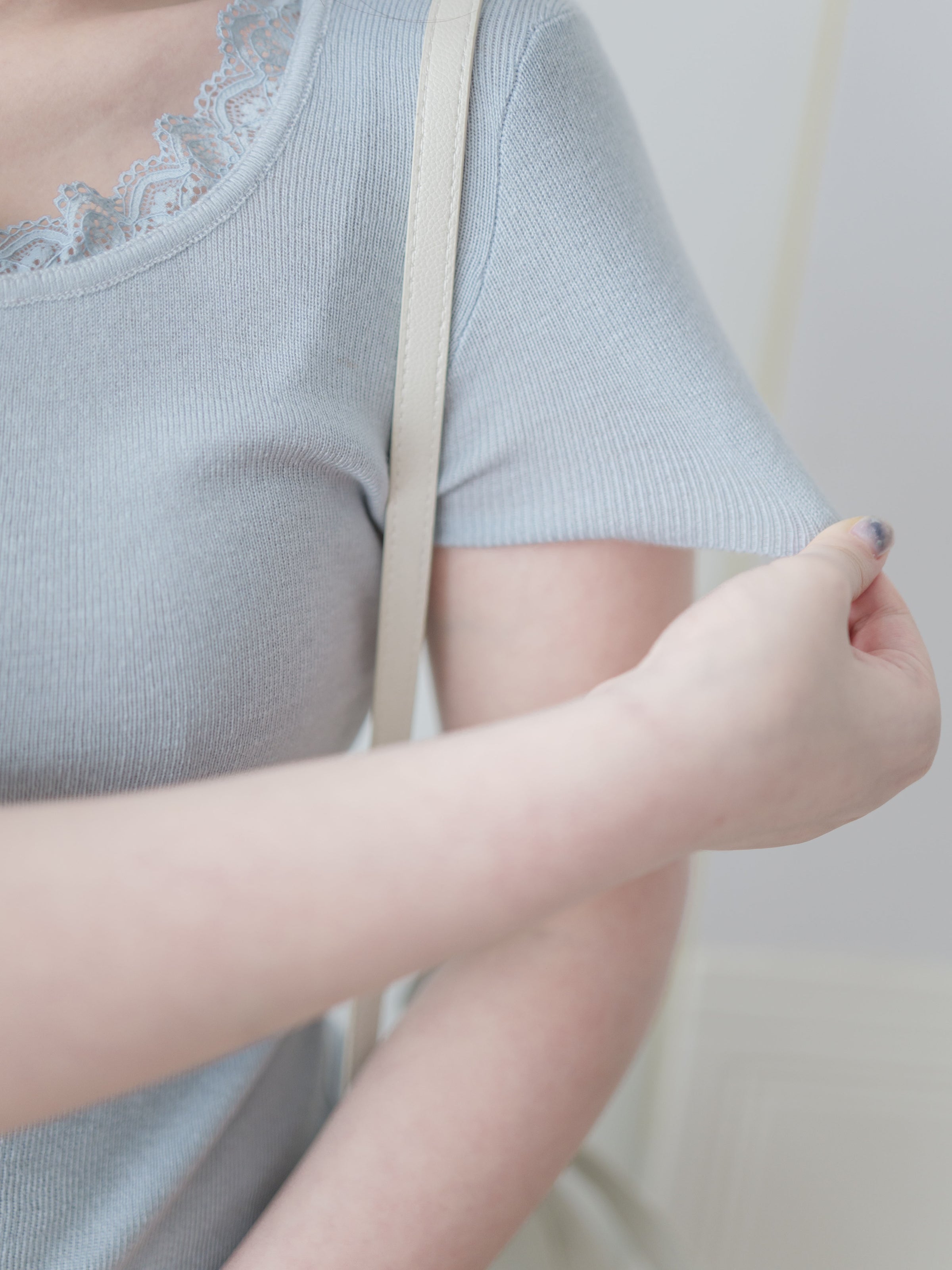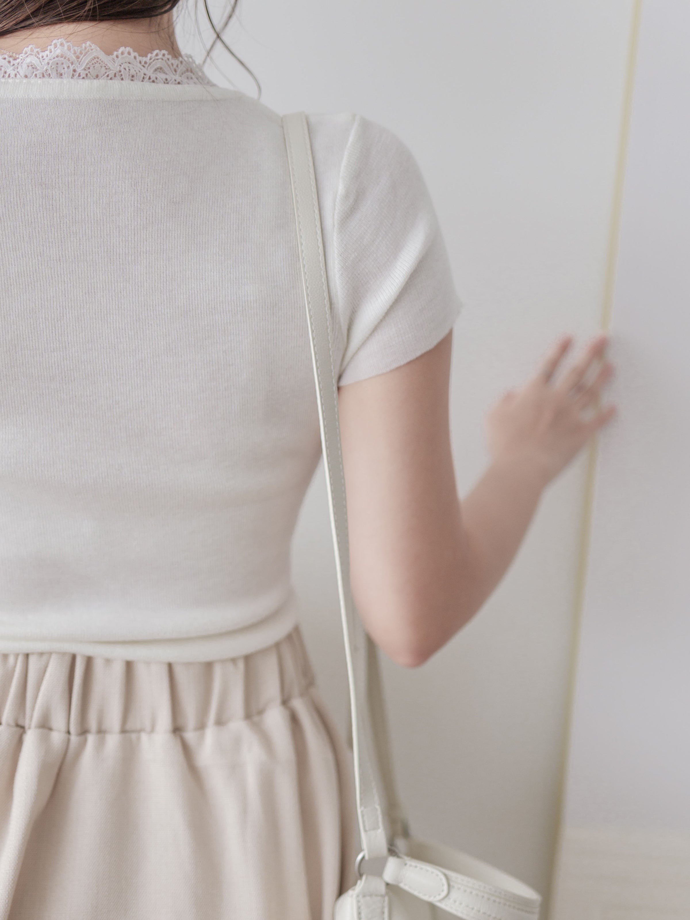 ✦溫柔針織感/ 蕾絲圓方領/ 超彈性舒適