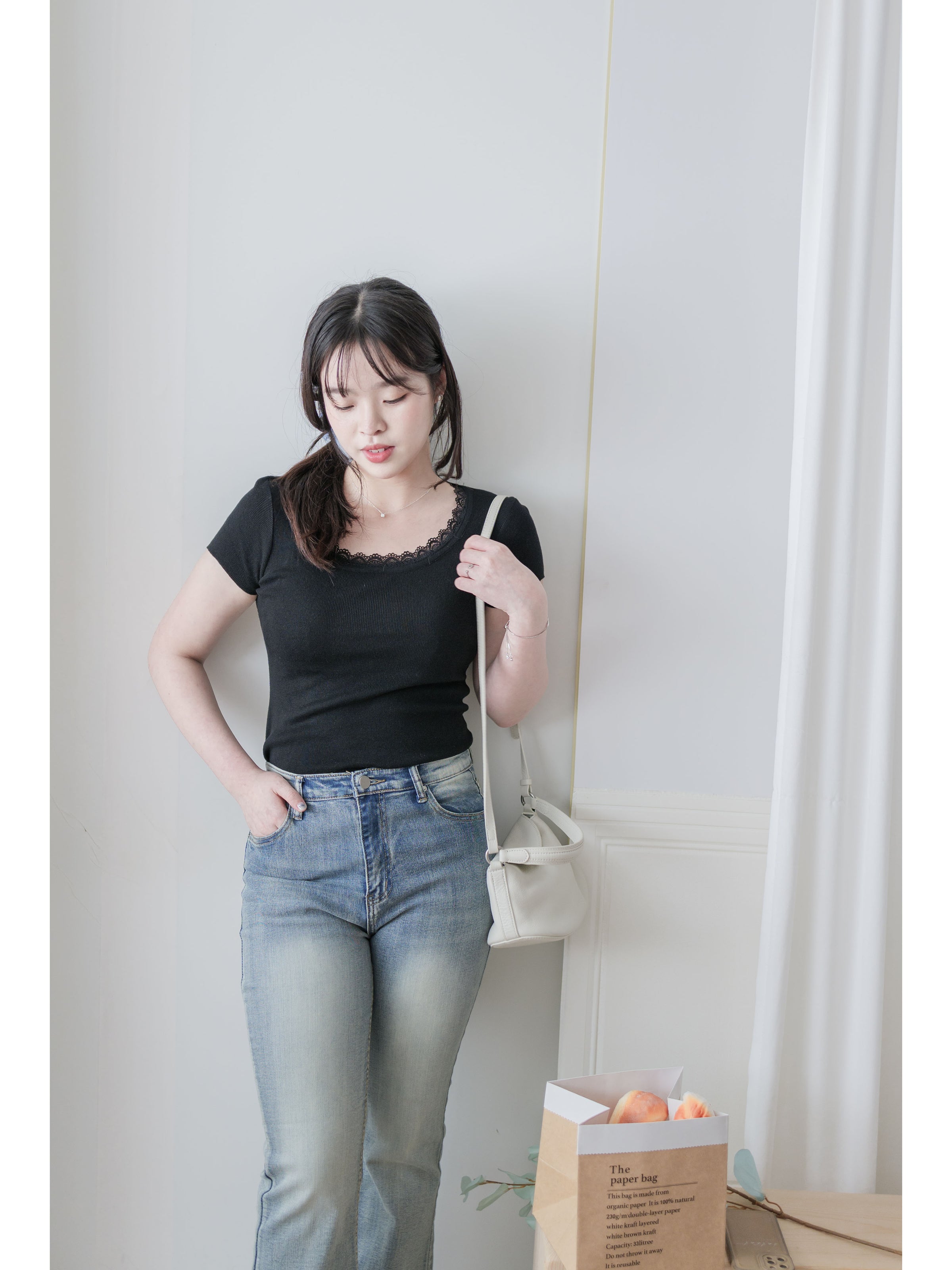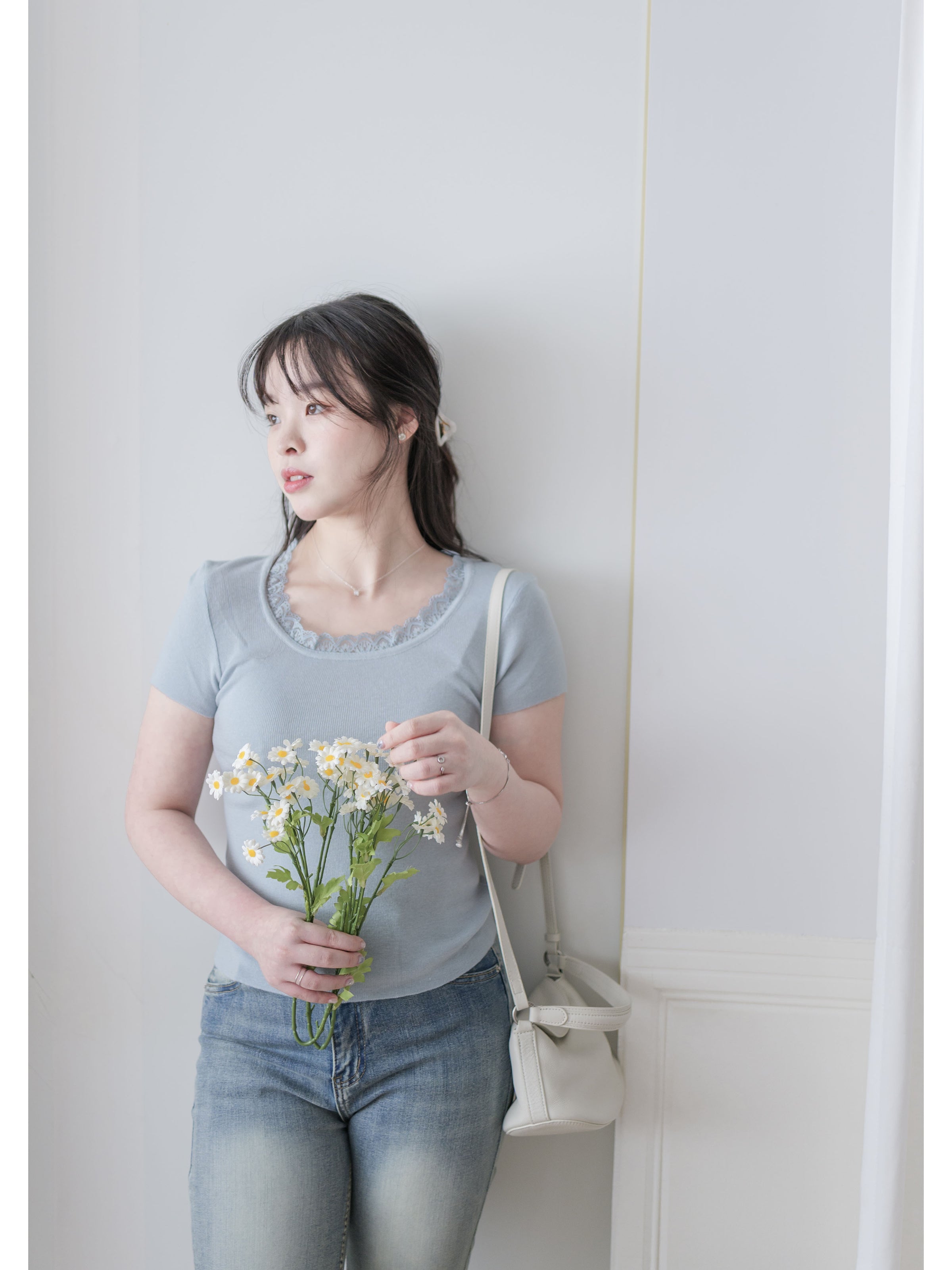 Lace Collar Top 顯瘦修身彈性蕾絲圓方領上衣/ TP9183