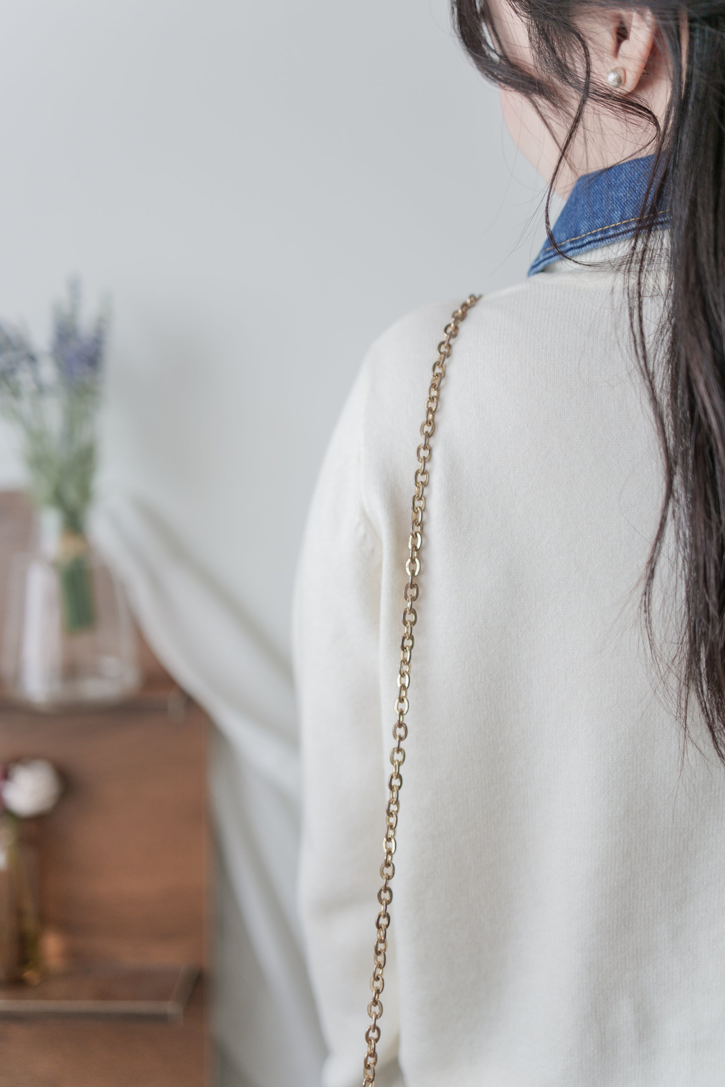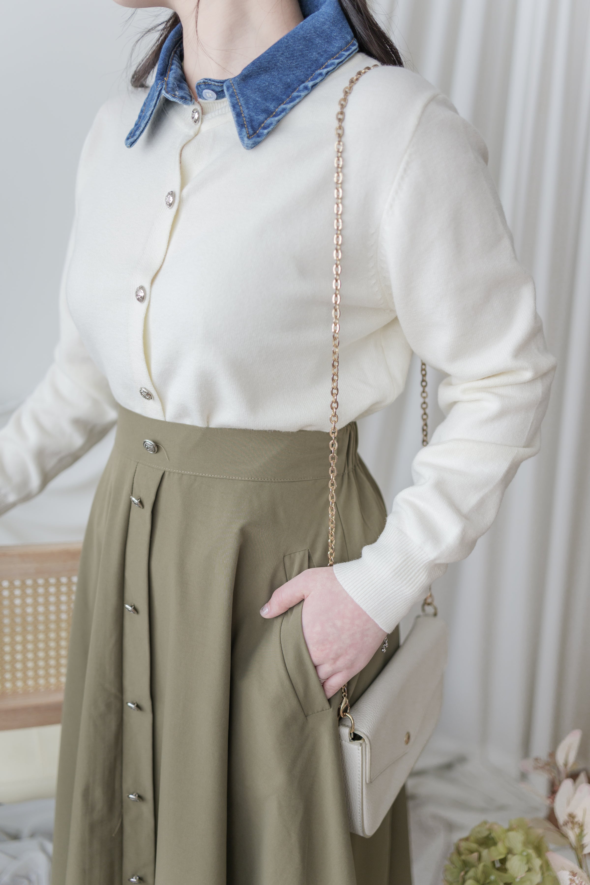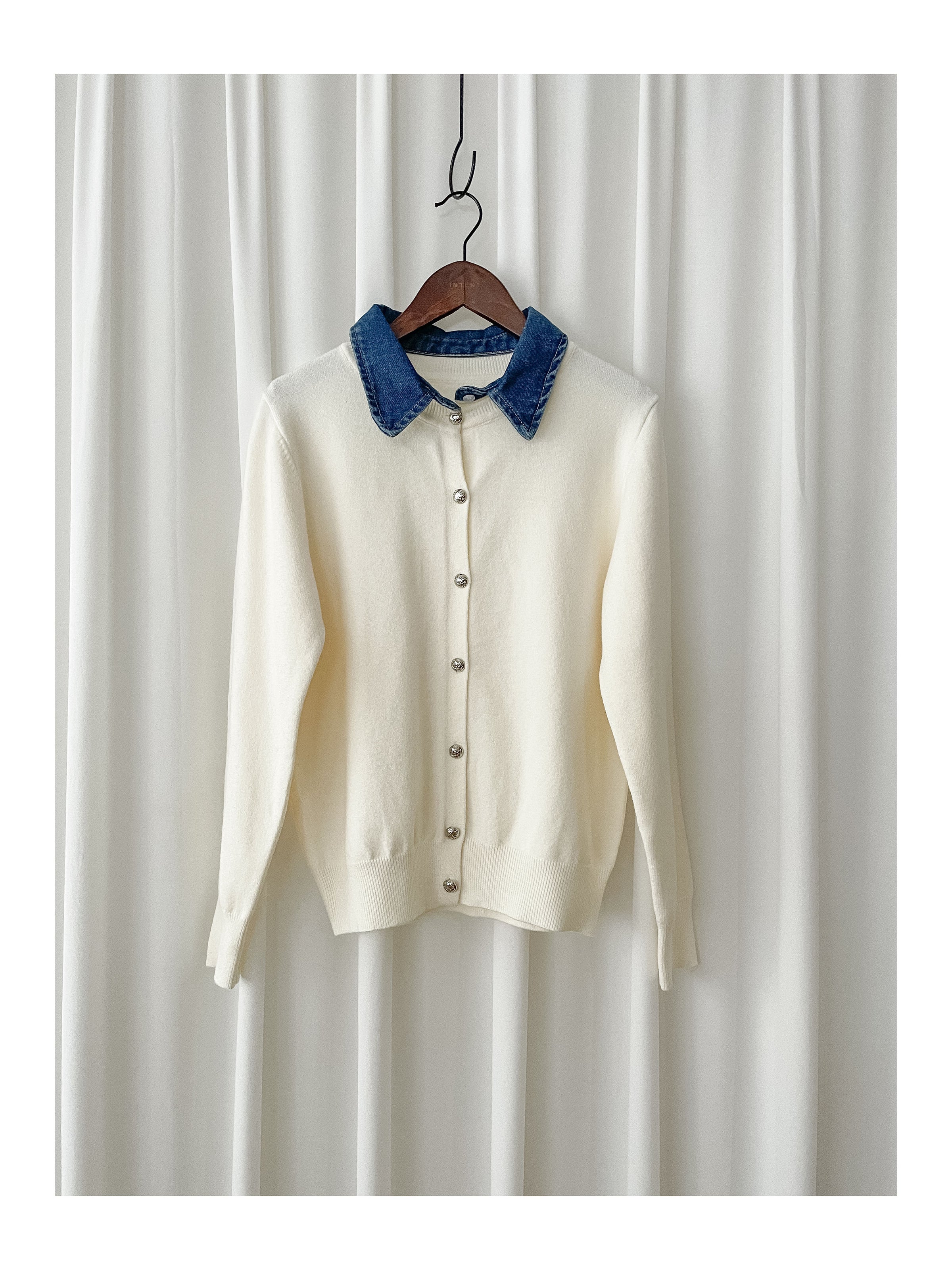 Denim Knit Caridigan 假兩件設計牛仔套頭舒適彈性針織/ TP9187
