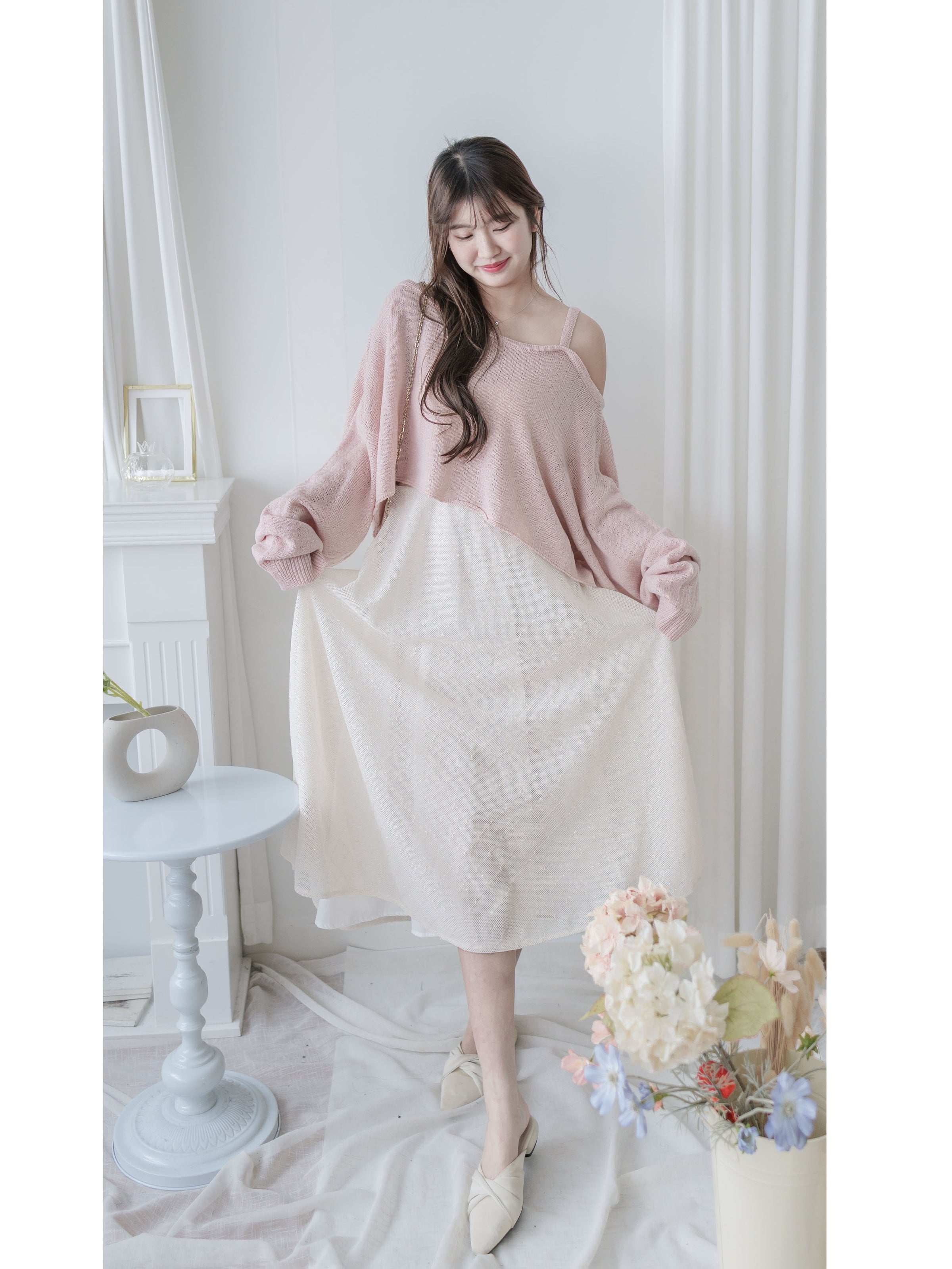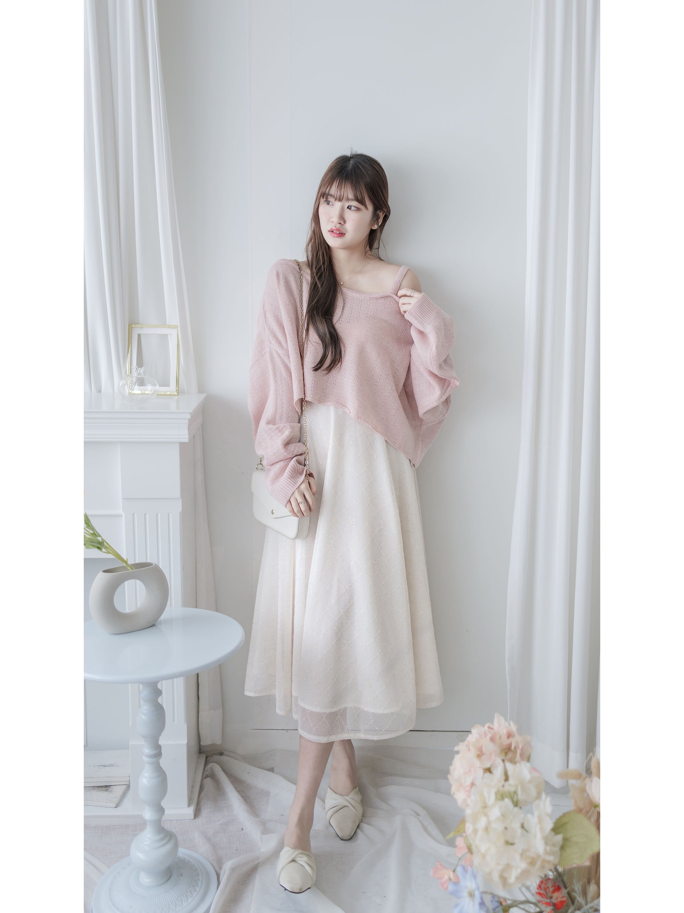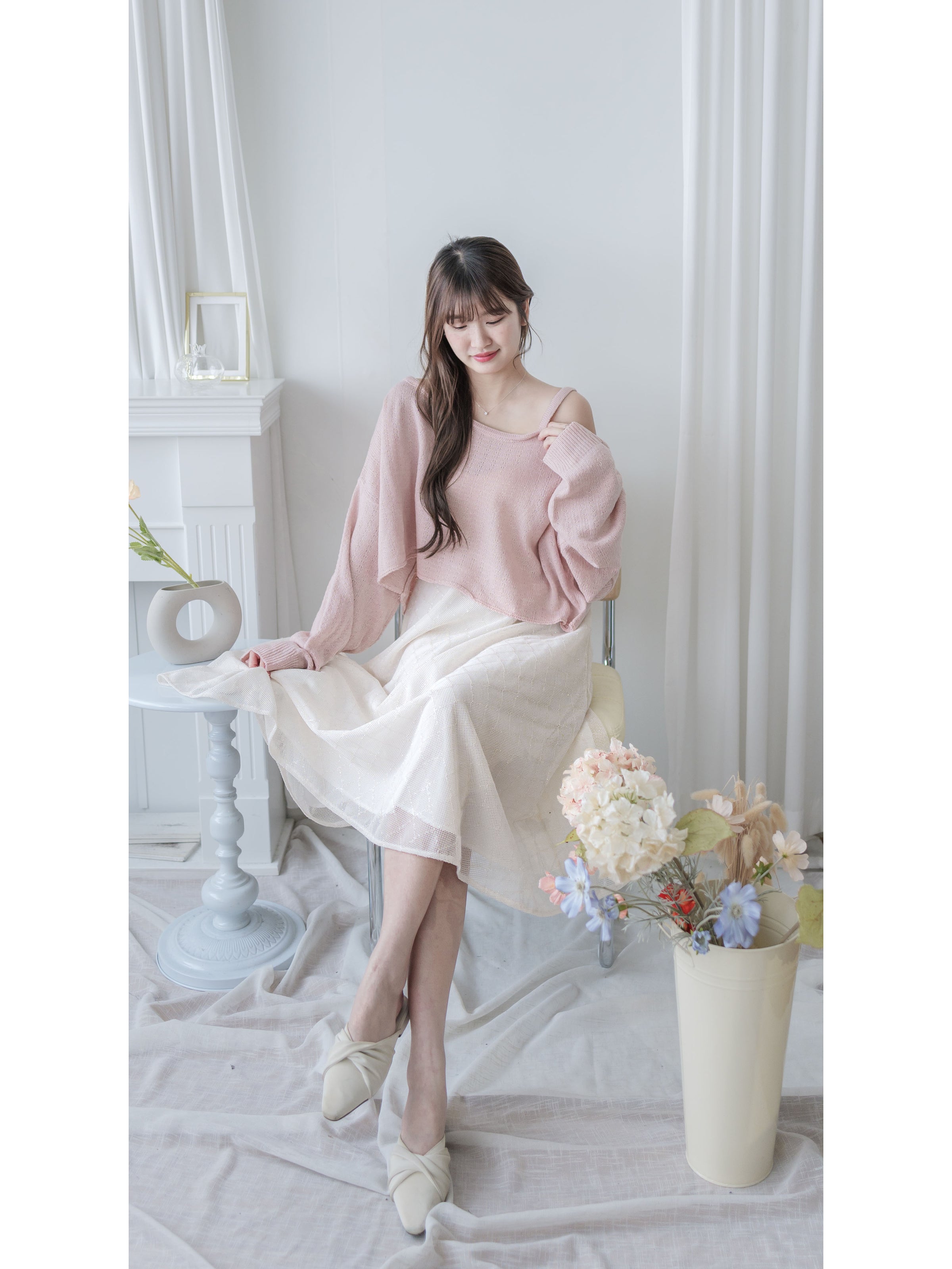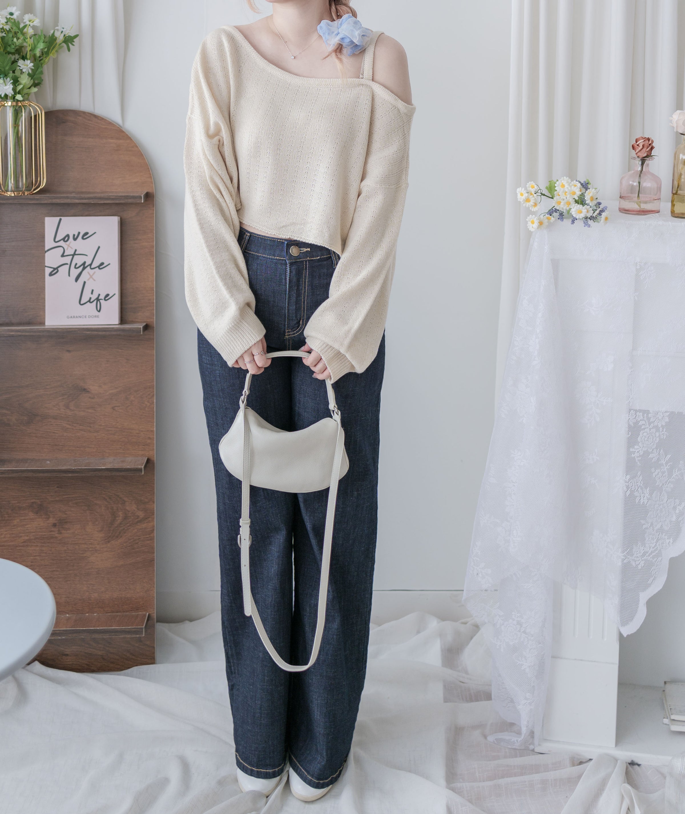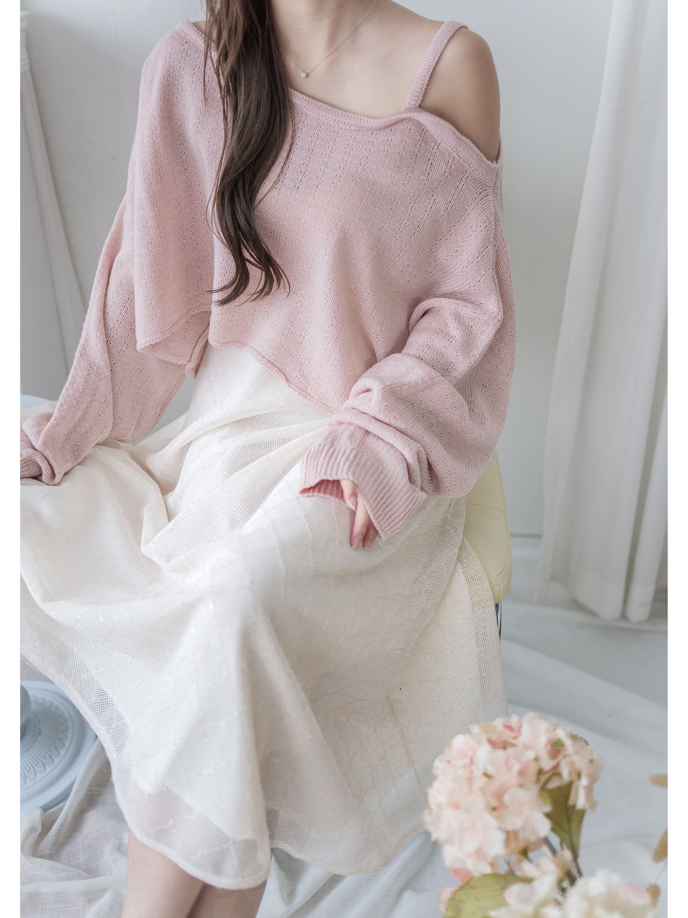 Crop Knit Top 短版斜肩設計吊帶針織/ TP9194