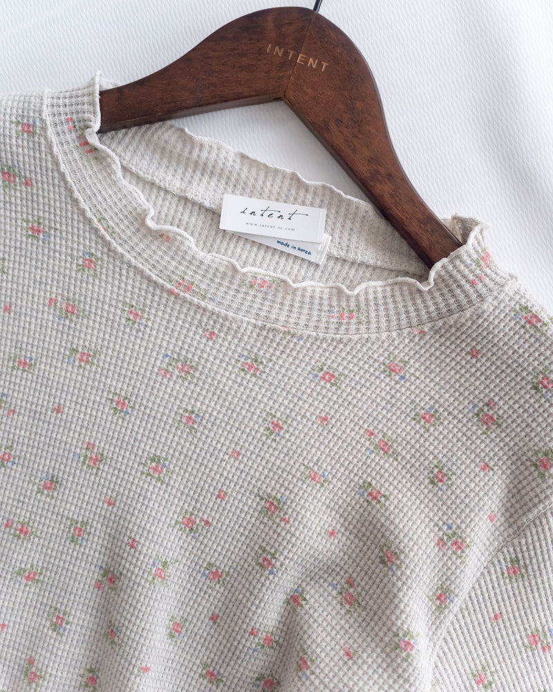 Korea Waffle Floral Top 碎花暗格木耳邊上衣 / TP9204 (Navy Soldout)