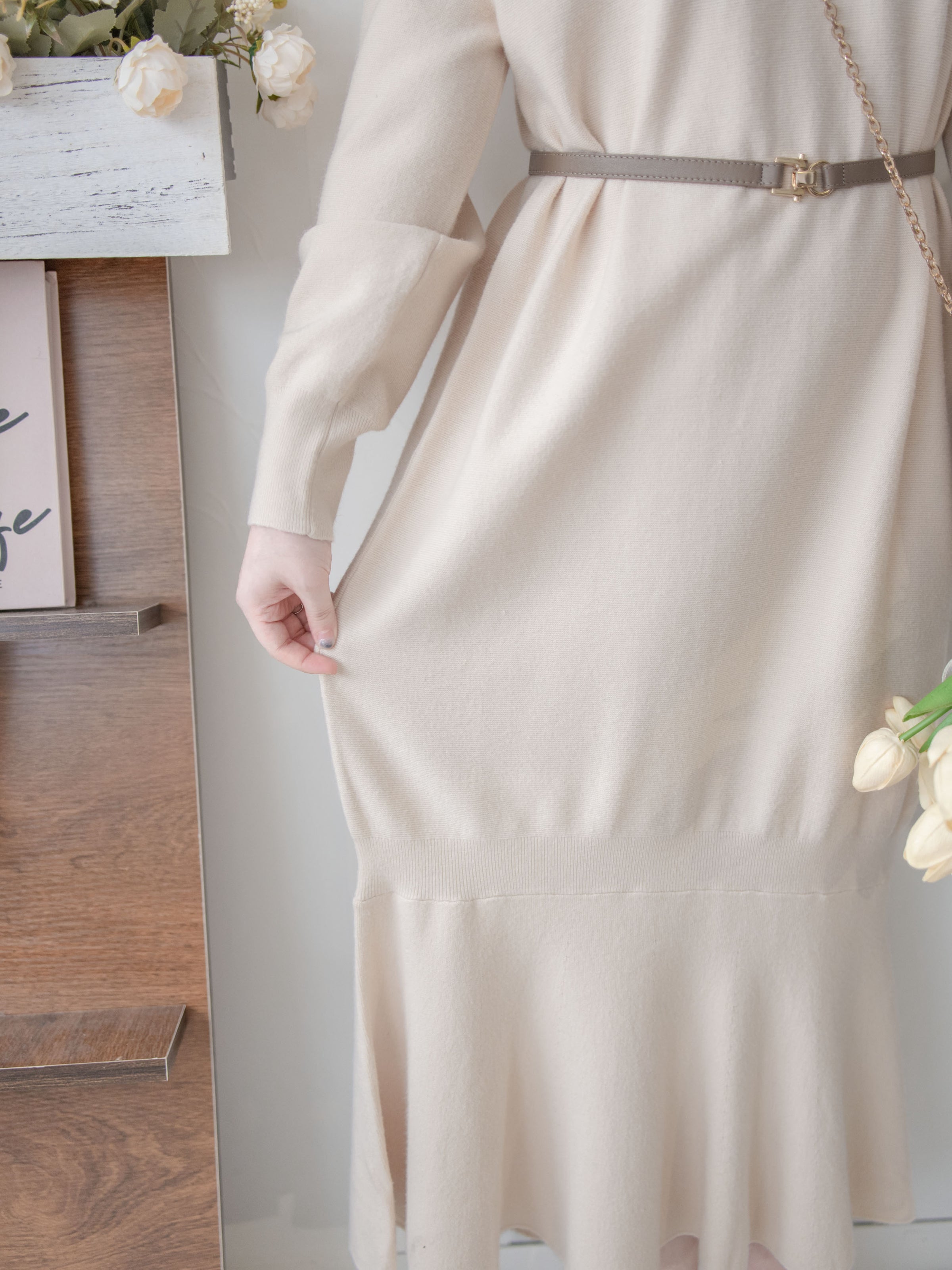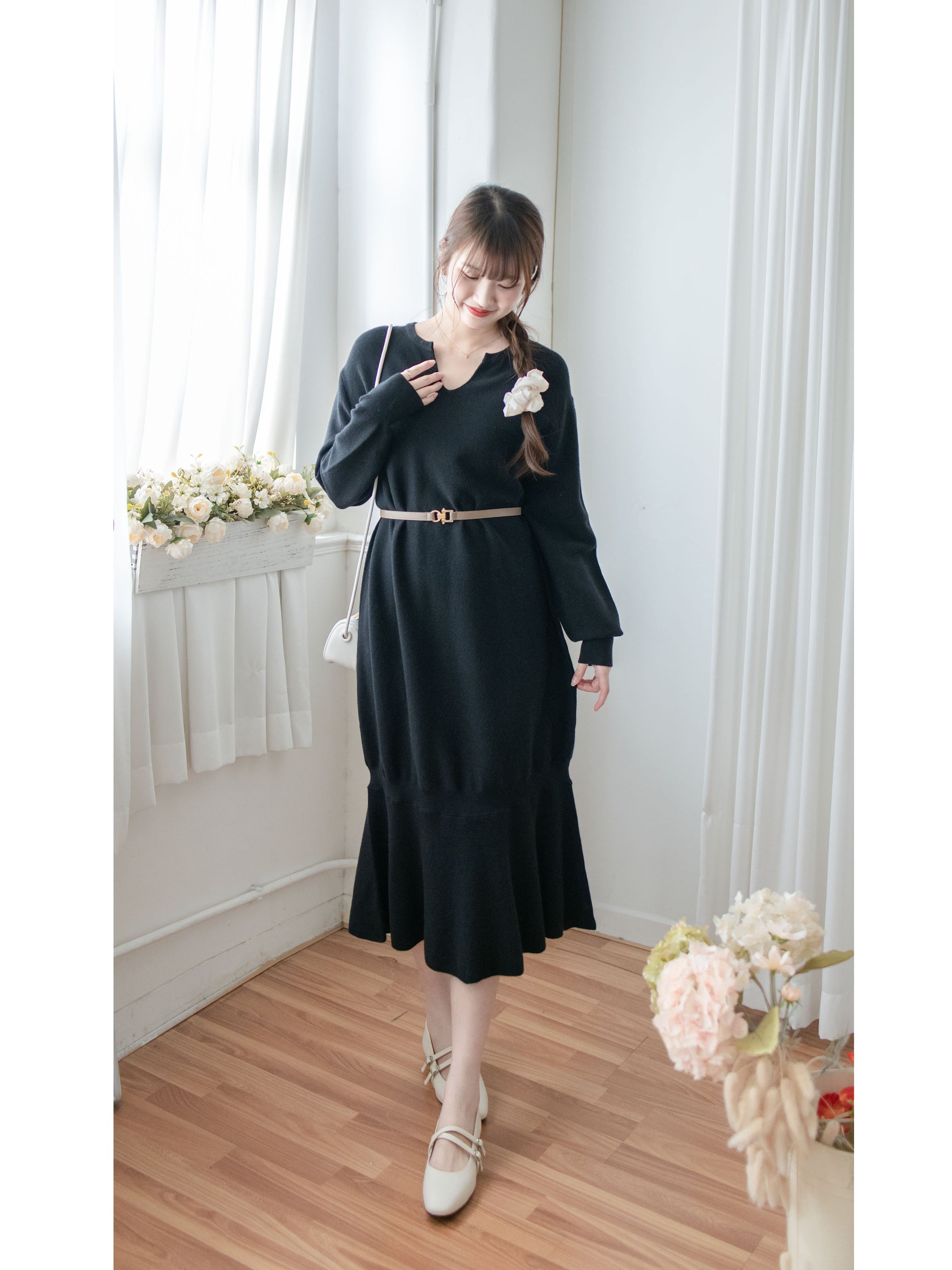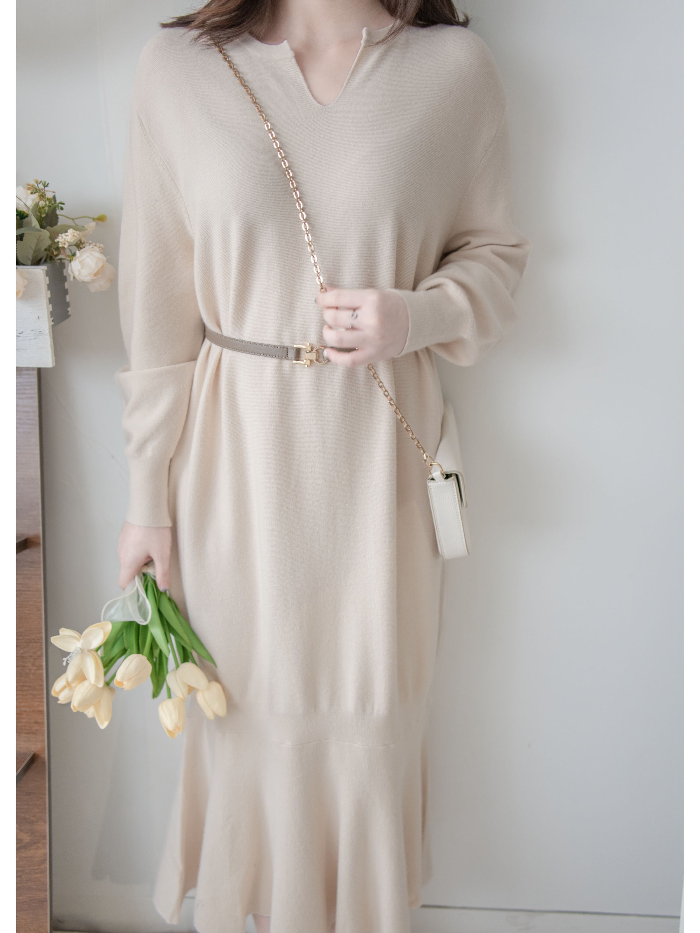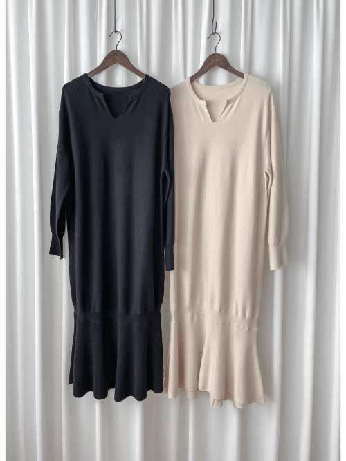 Knit Fishtail Dress 圓V領寬鬆裙身顯瘦魚尾針織連身裙/ DS1005