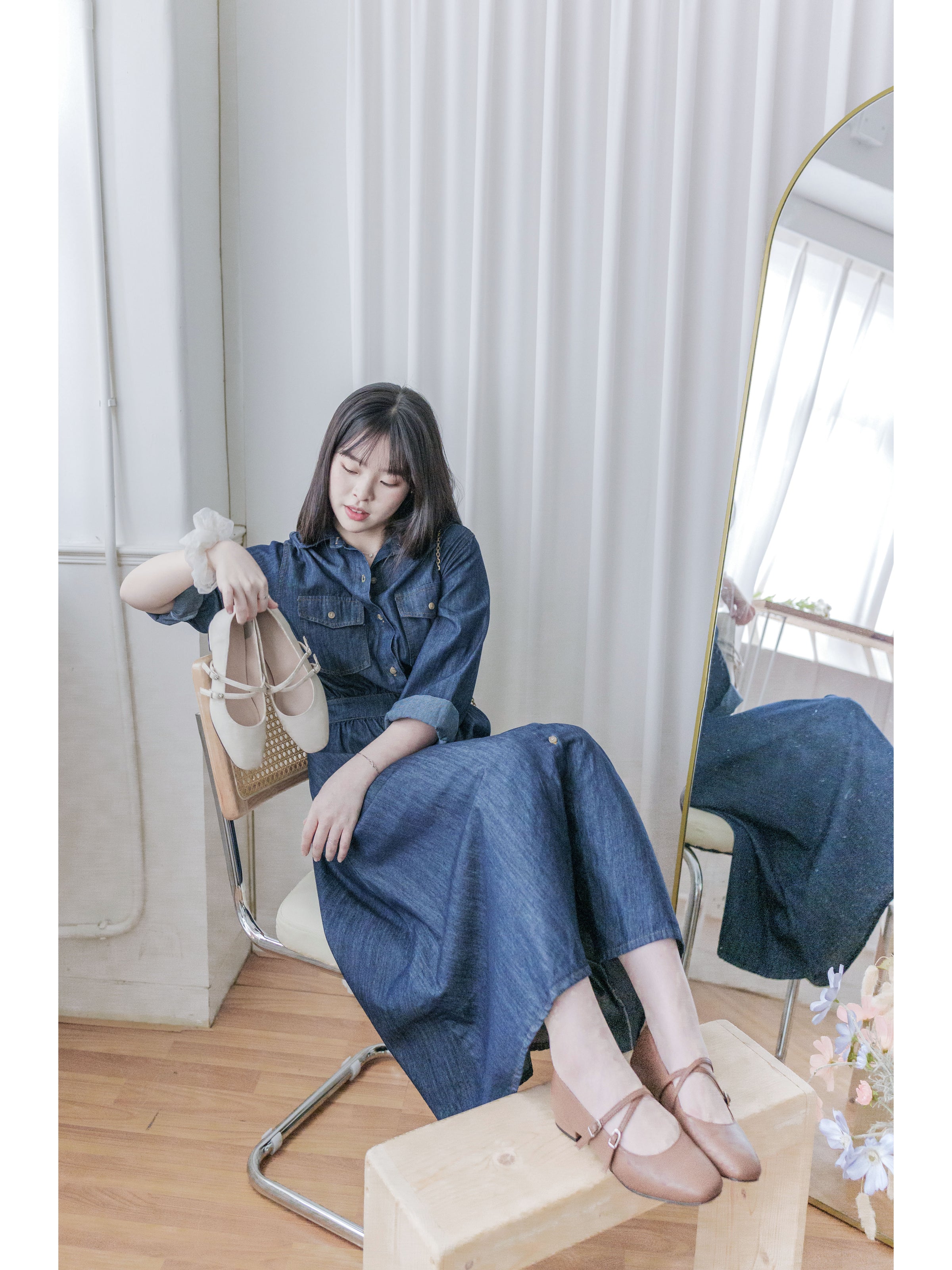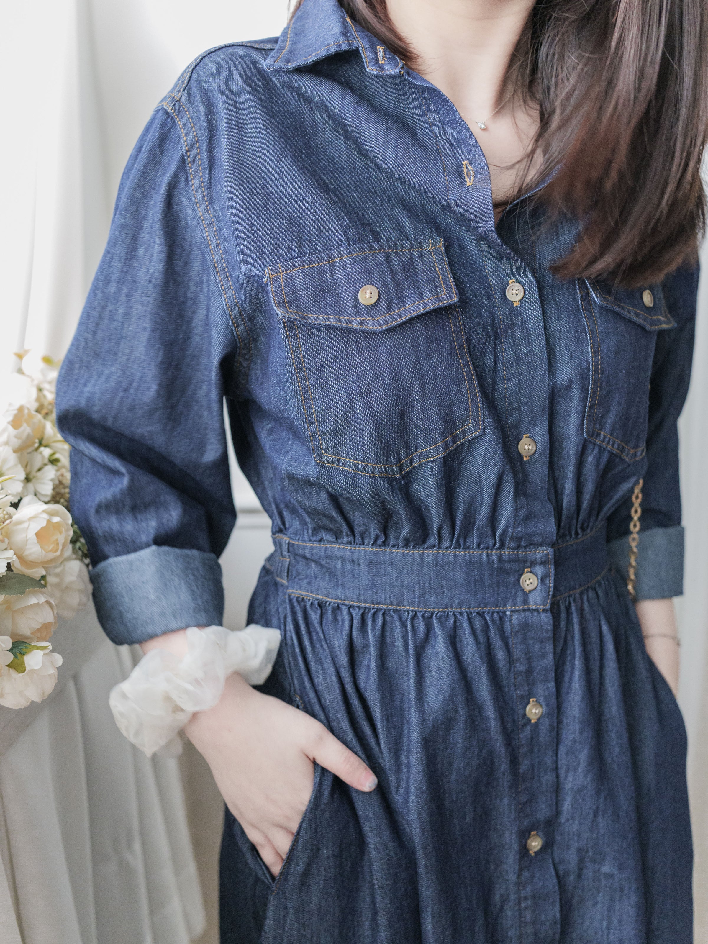 Casual Elegant Denim Dress 隨性與知性恤衫領修腰牛仔連身裙/ DS1011