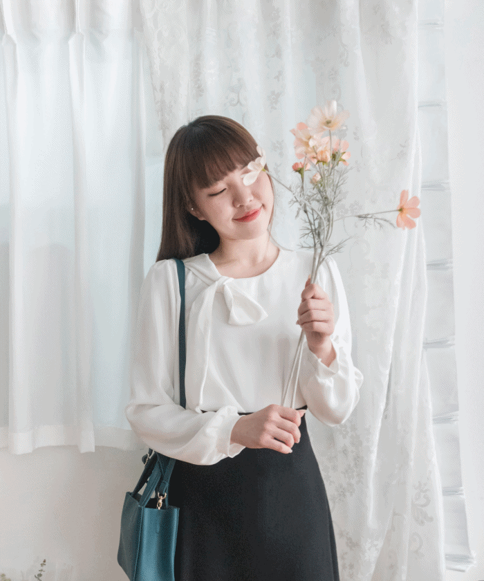 Side Scarf 簡約側蝴蝶領帶, Blouse/ BU8870 (white sold out)