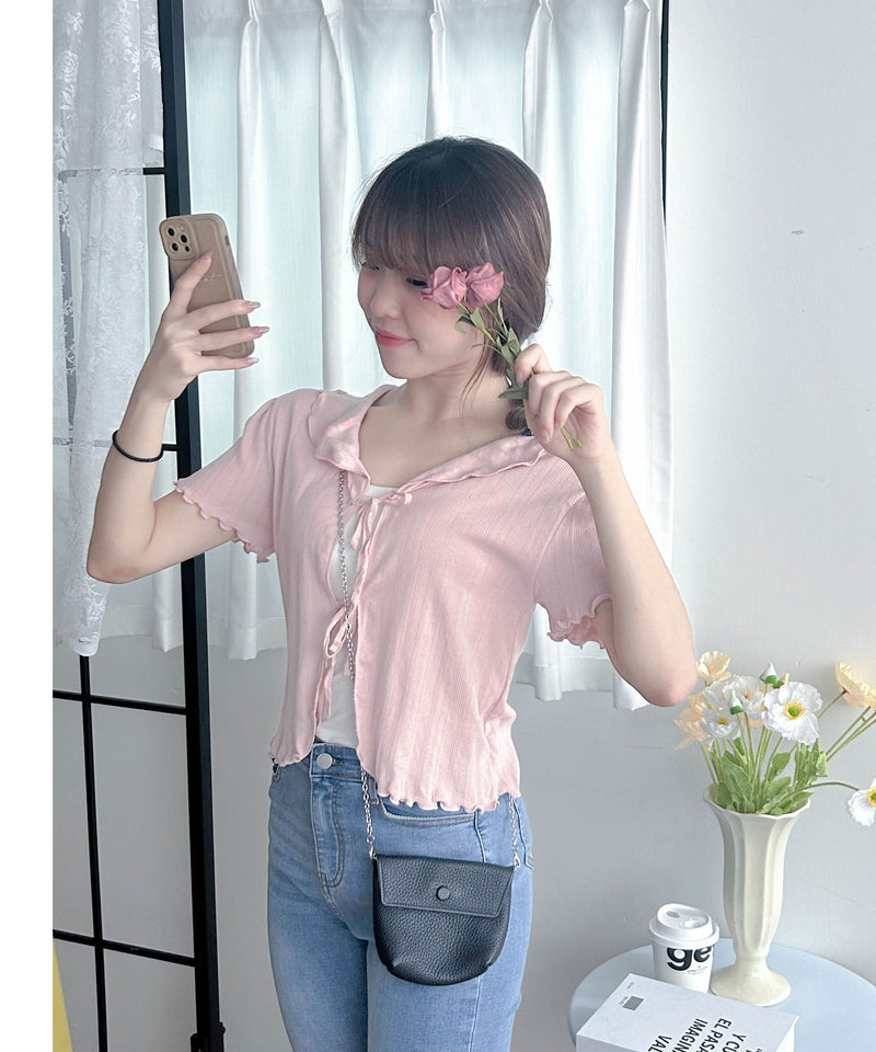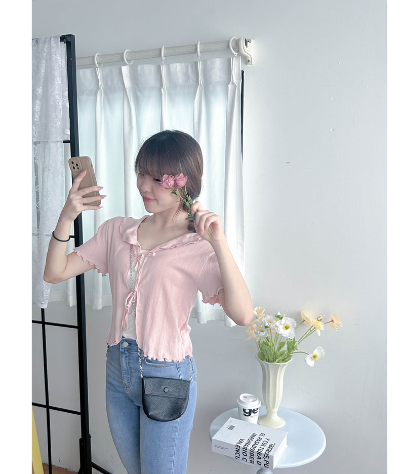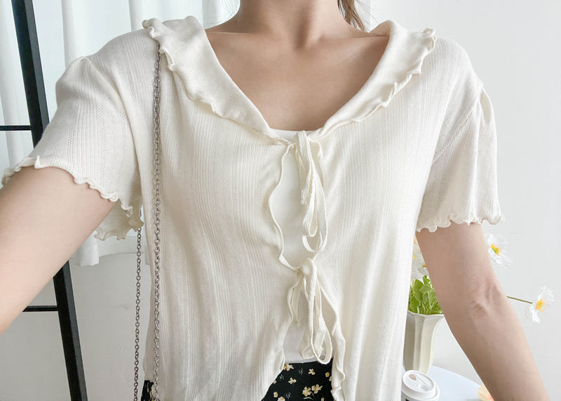 Onni, Blouse 韓系設計感翻領荷葉邊上衣/ BU9054 (cream soldout)