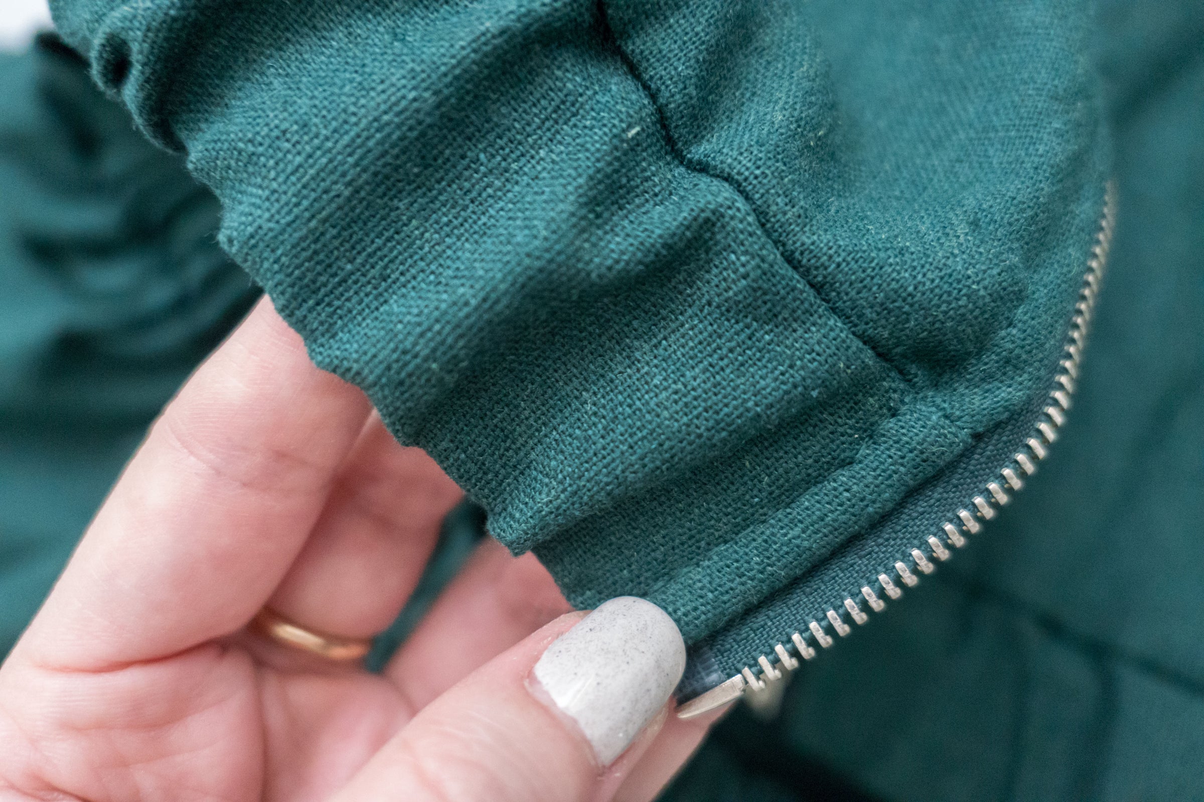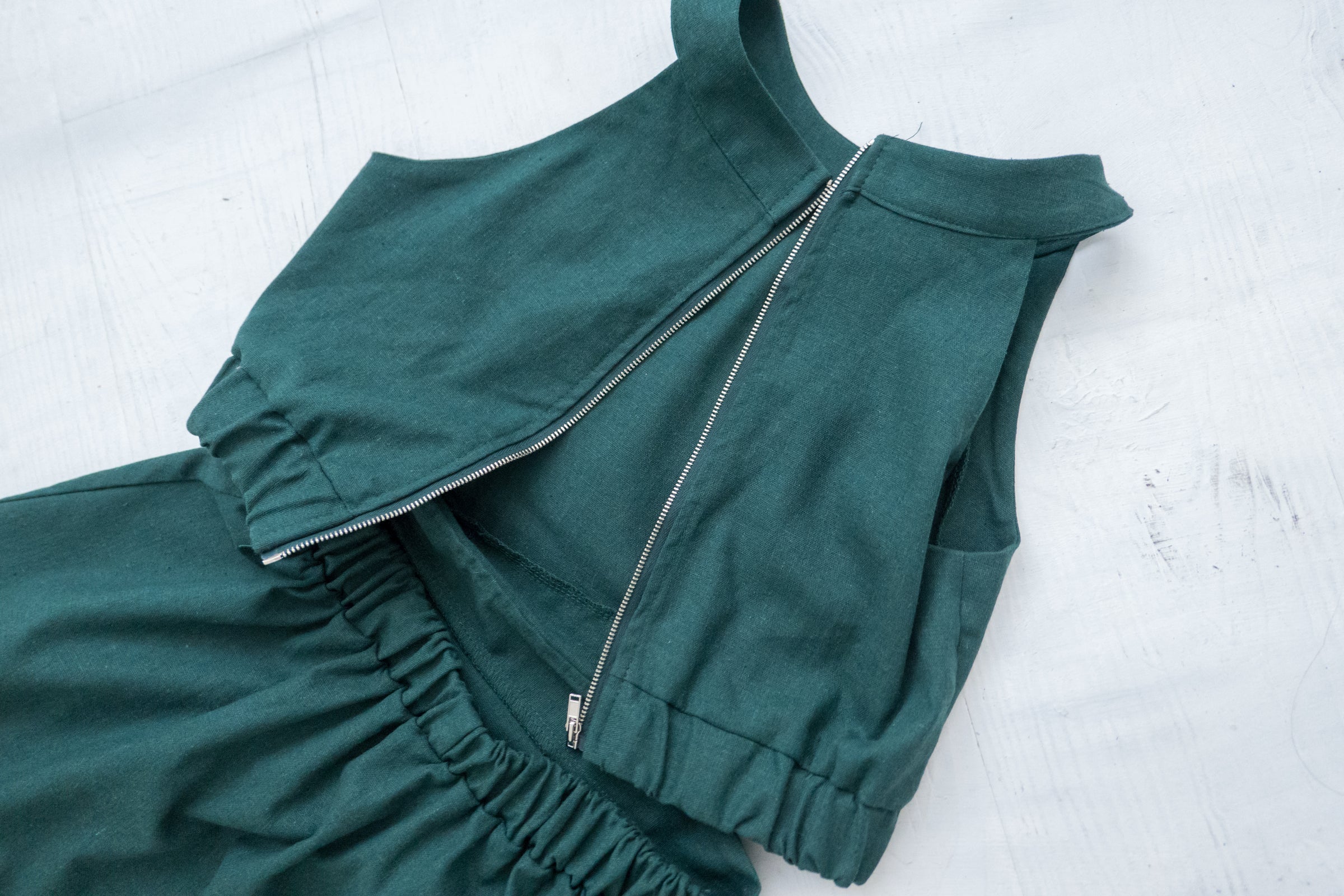 上身後背拉鍊可完全拆開 下背彈性拉鍊 穿上後再拉上