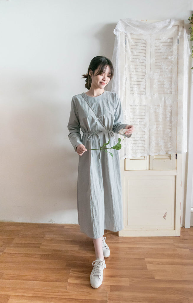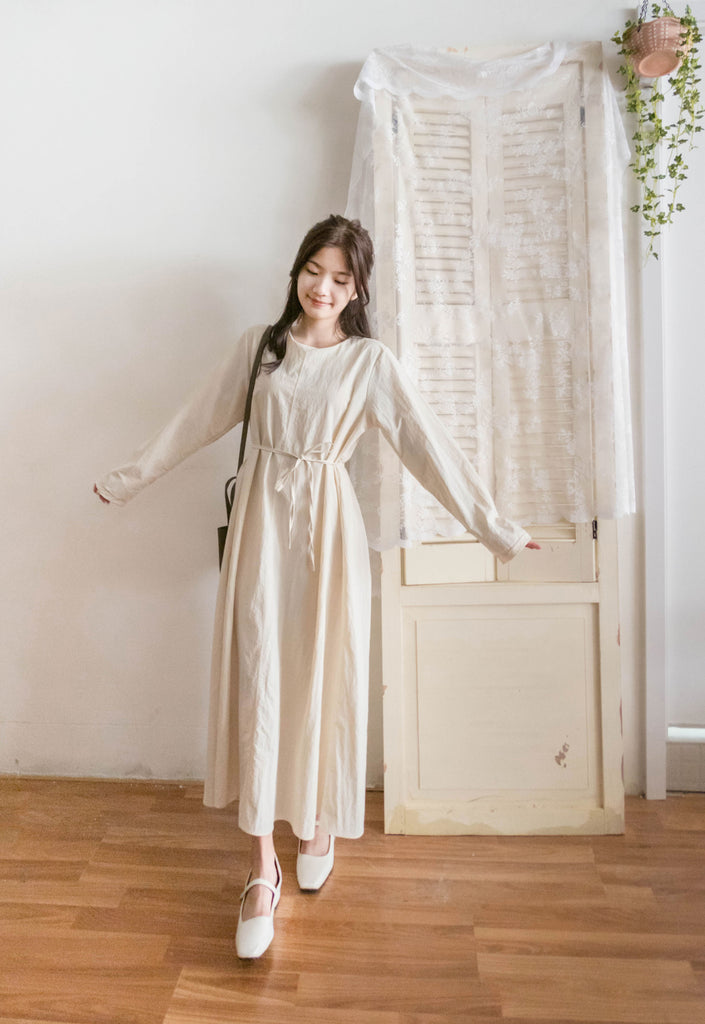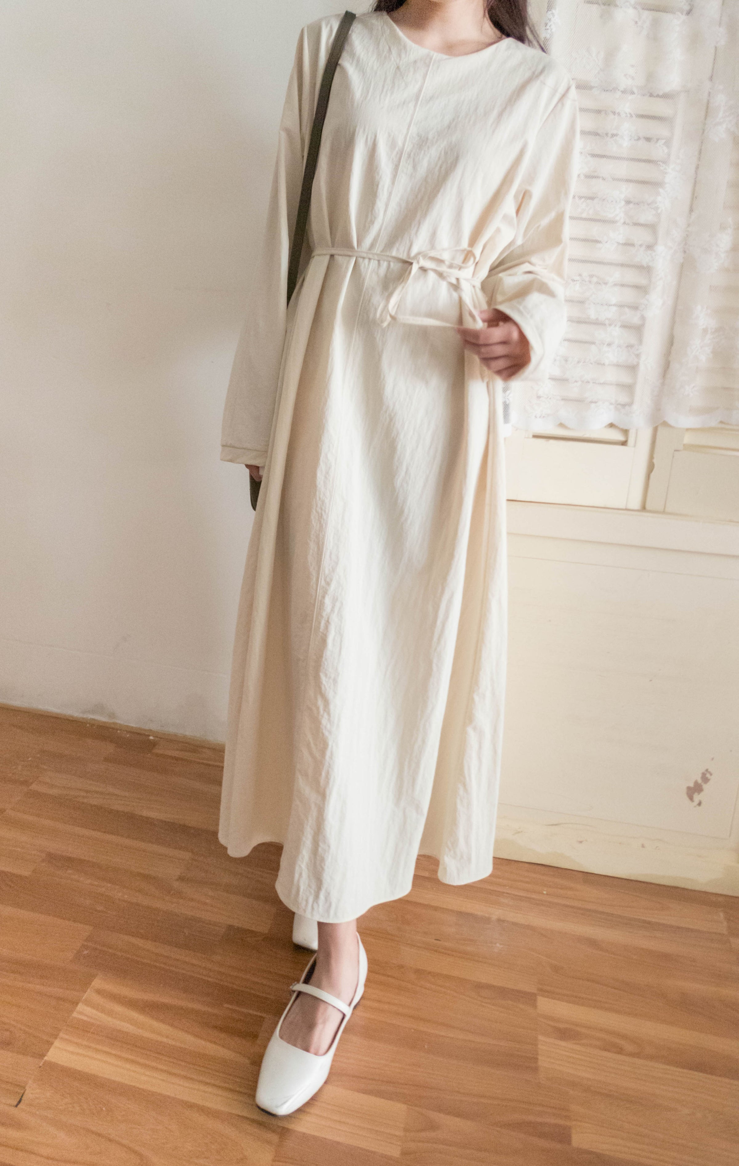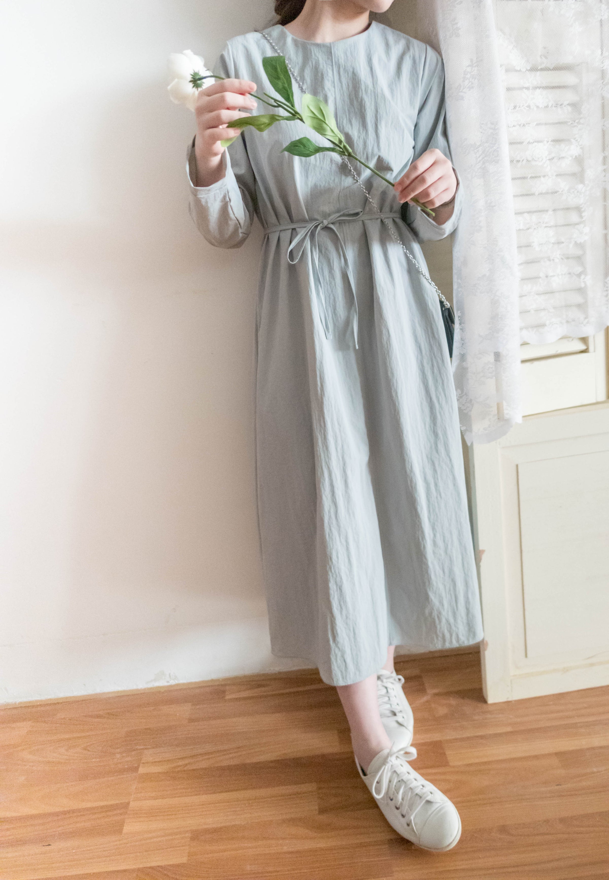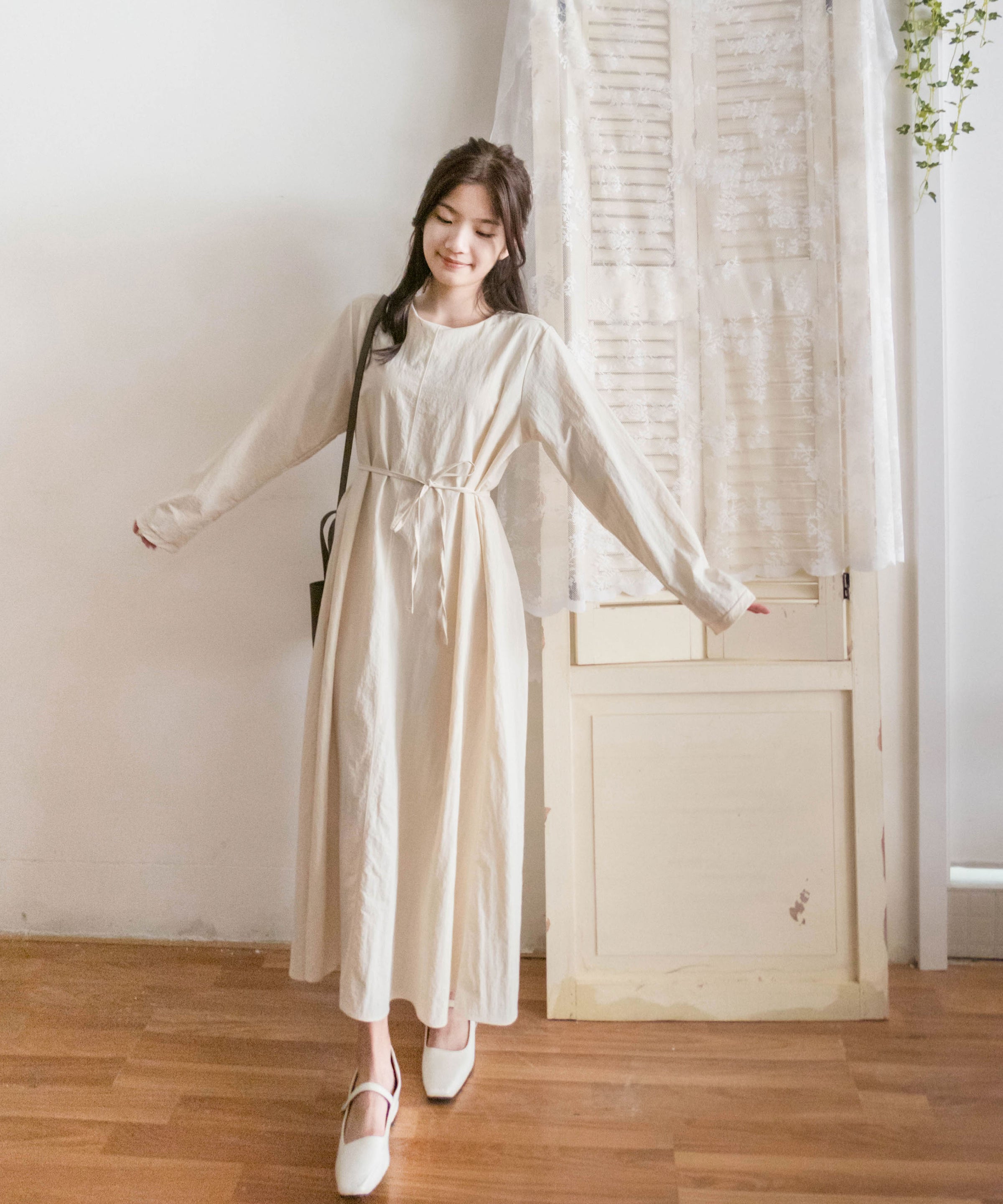 SoftTone 溫柔隨性簡約中車線綁帶連身裙, Dress/ DS9354