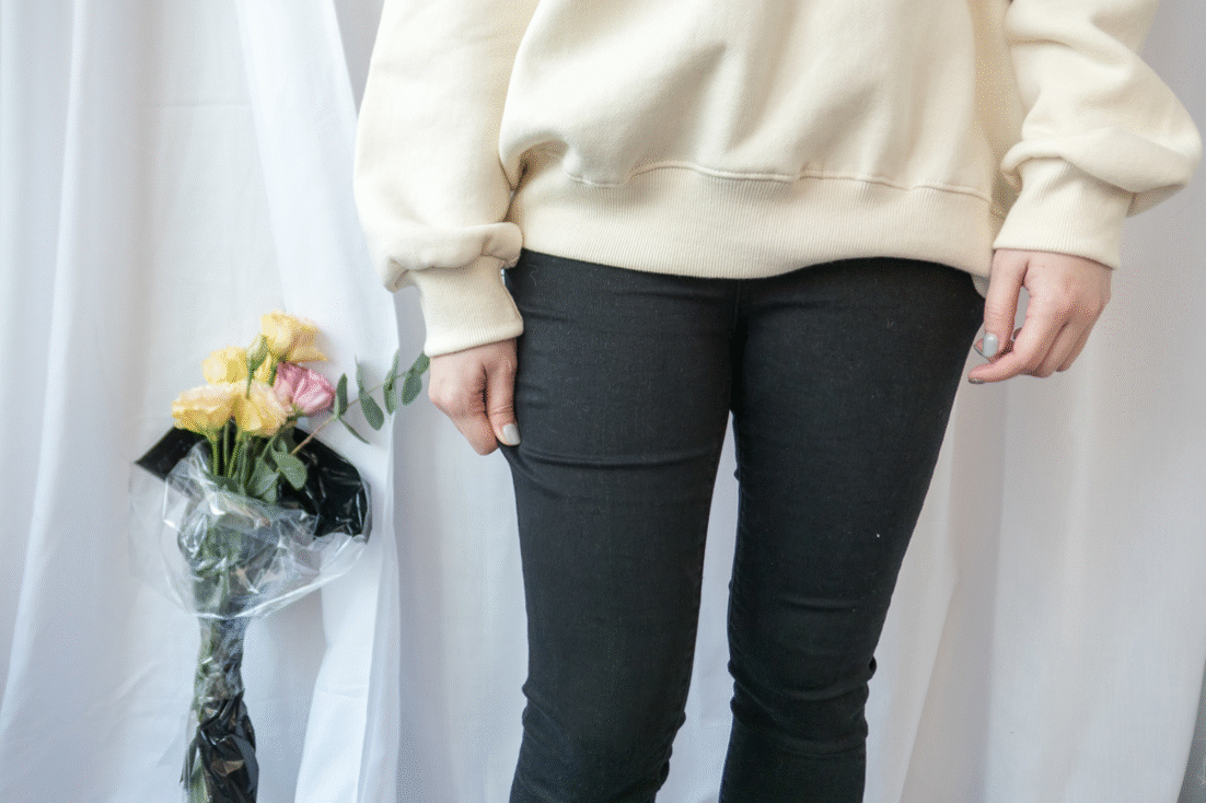 *穿上後 拉鍊是分開的 拉緊褲頭後拉上拉鍊 收起肚腩