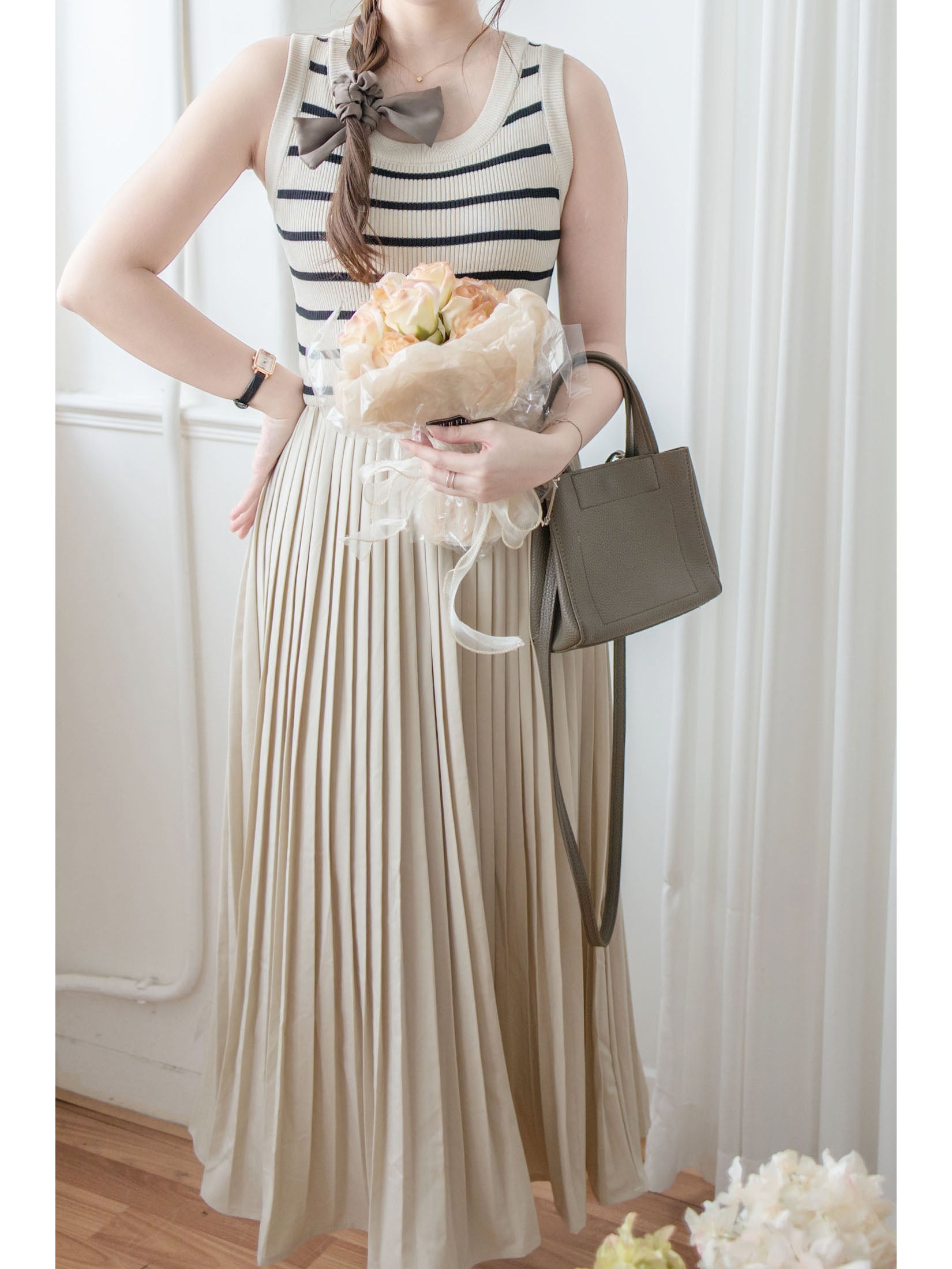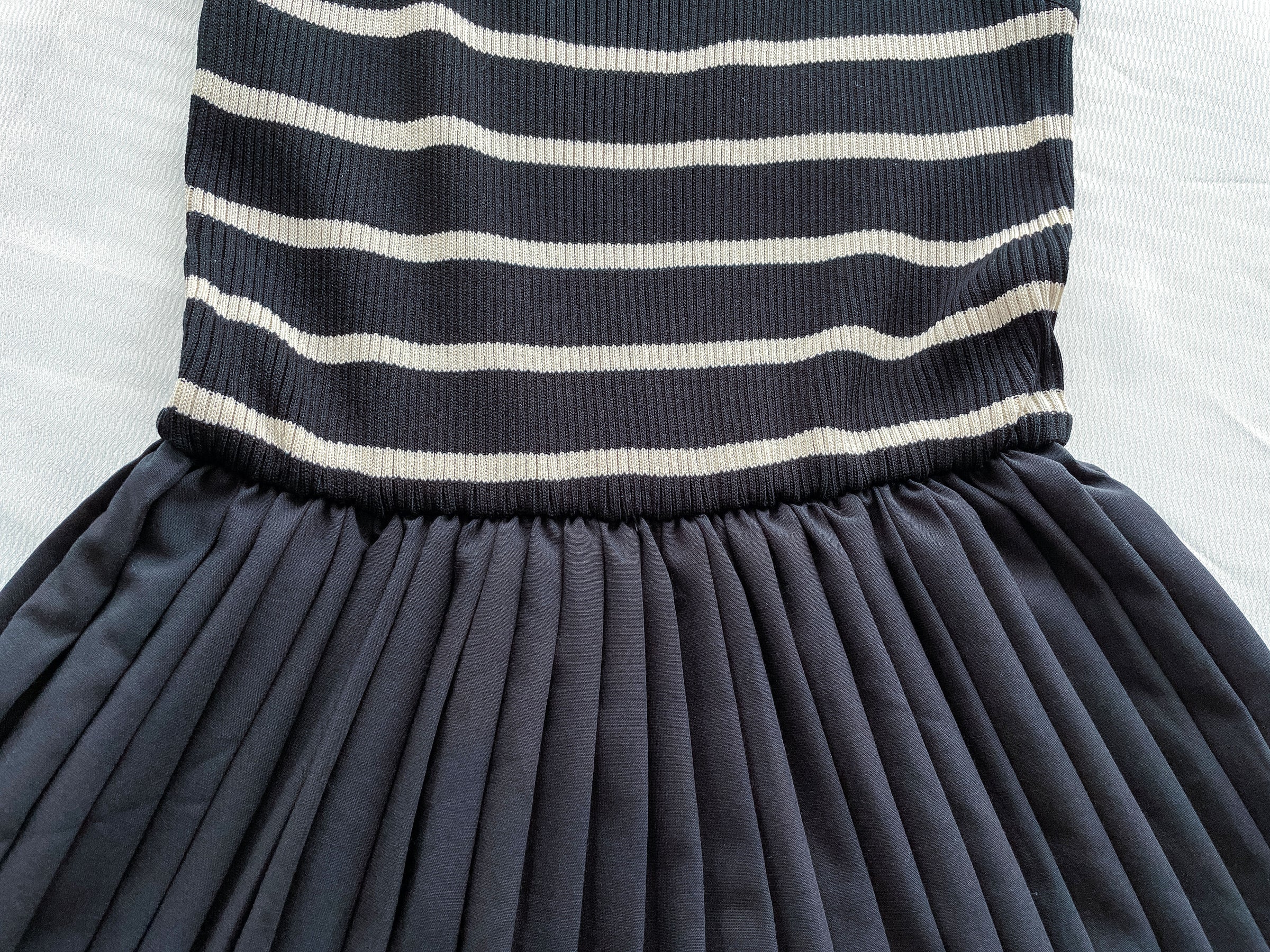 *1Set包括外套及百褶連身裙/ 法式條紋/舒適彈性修腰裙身/ 裙尾波浪弧度/
